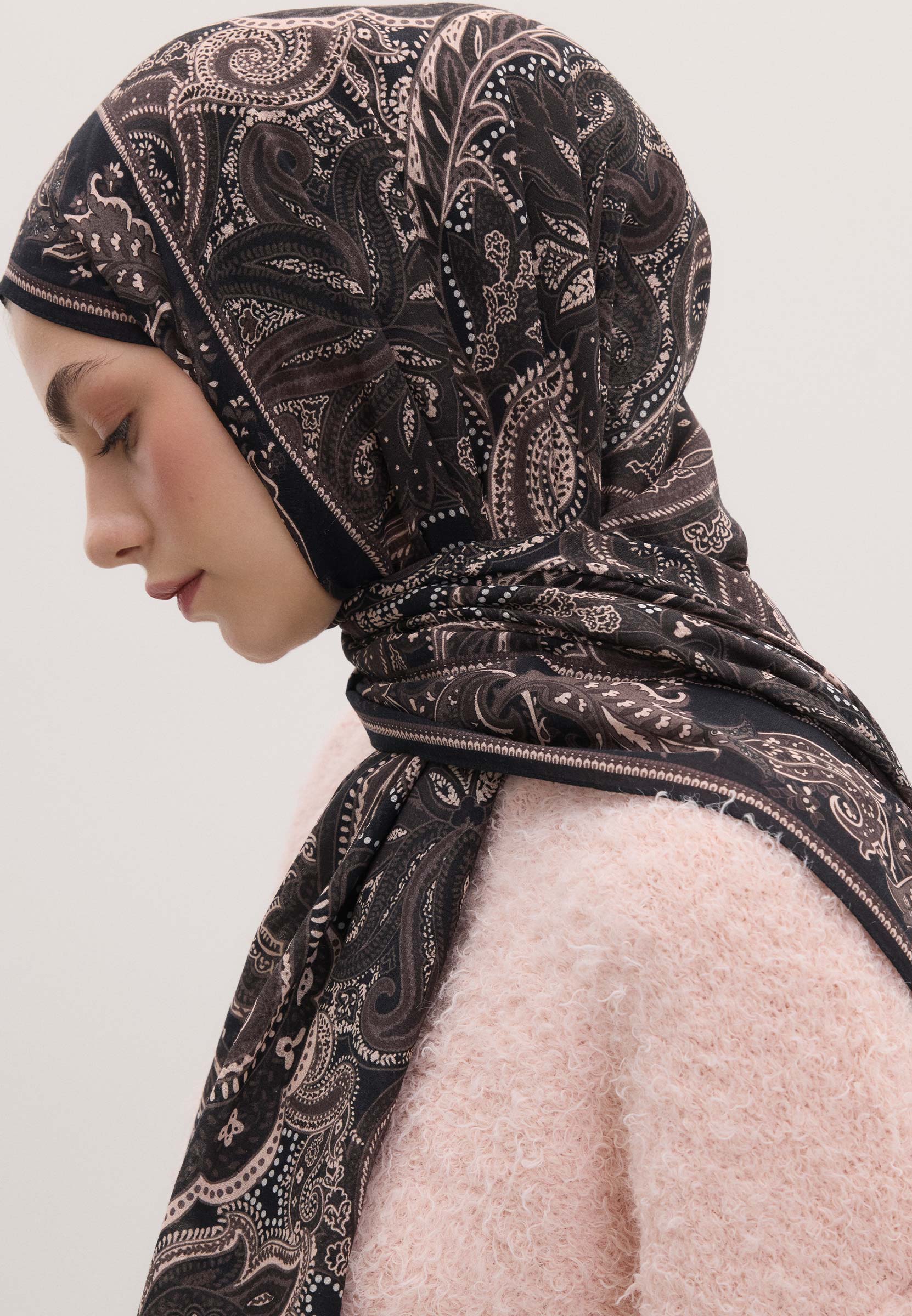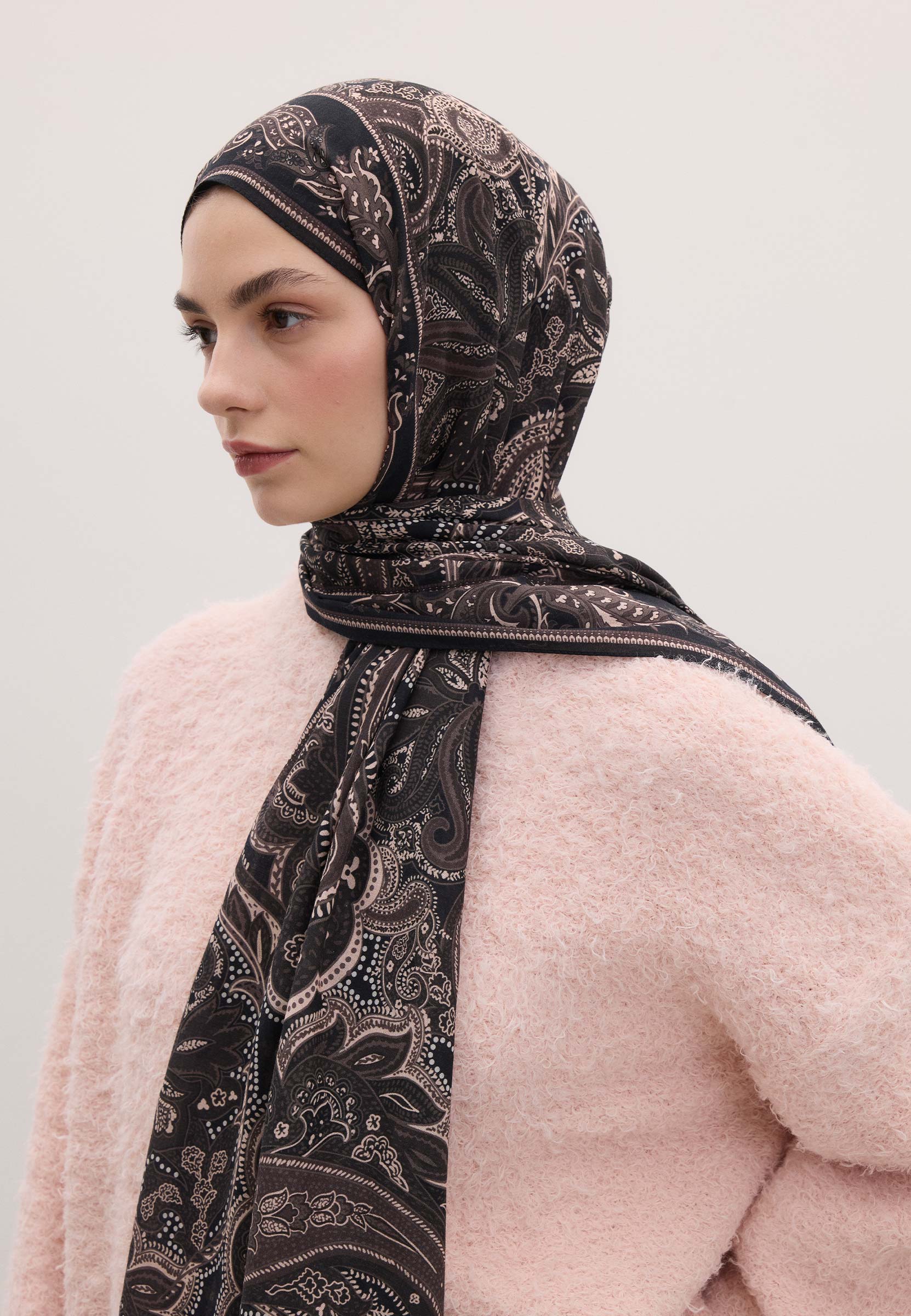 Dark Vintage Patterned Hijab Cocoa