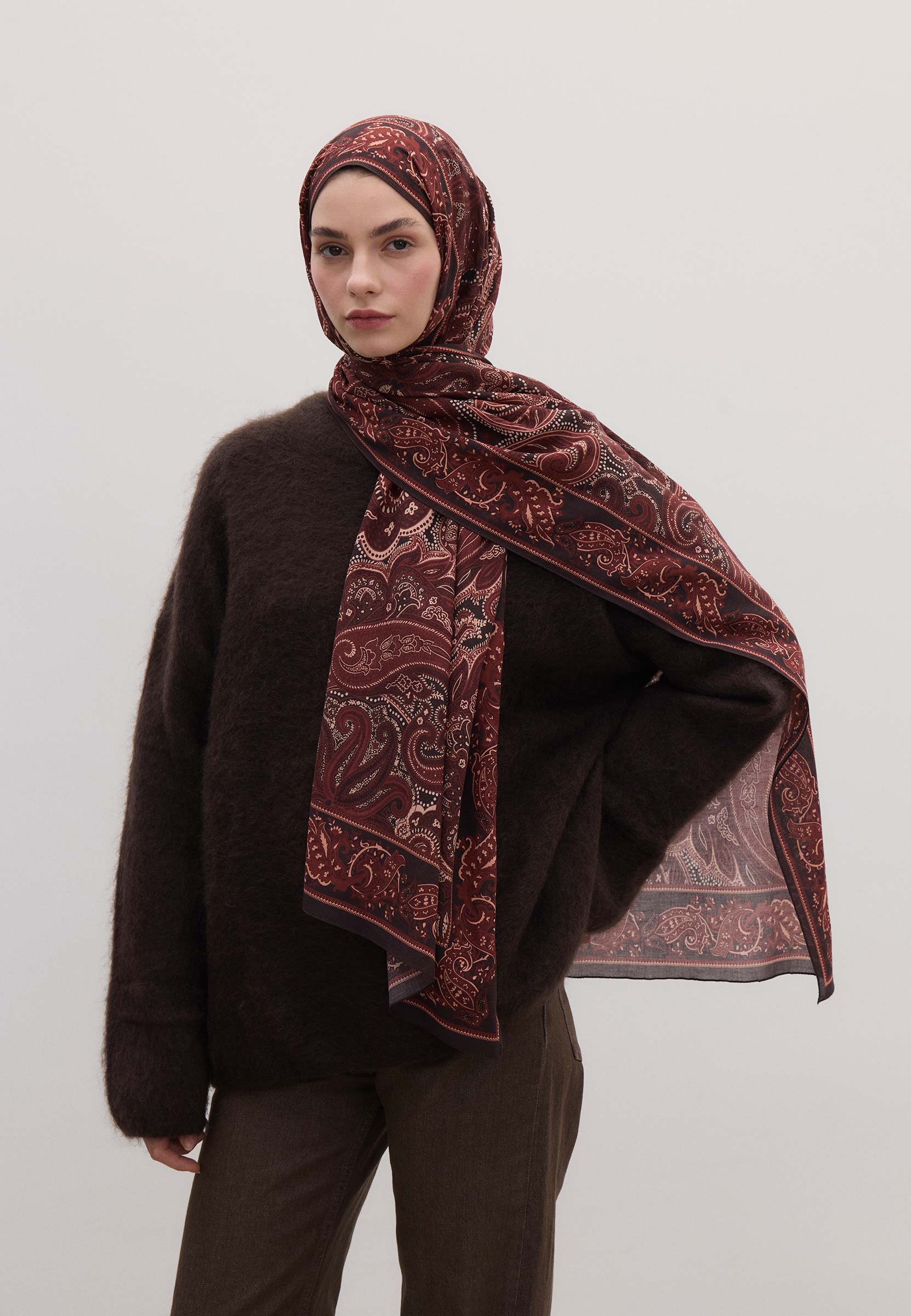 Dark Vintage Patterned Hijab Burgundy