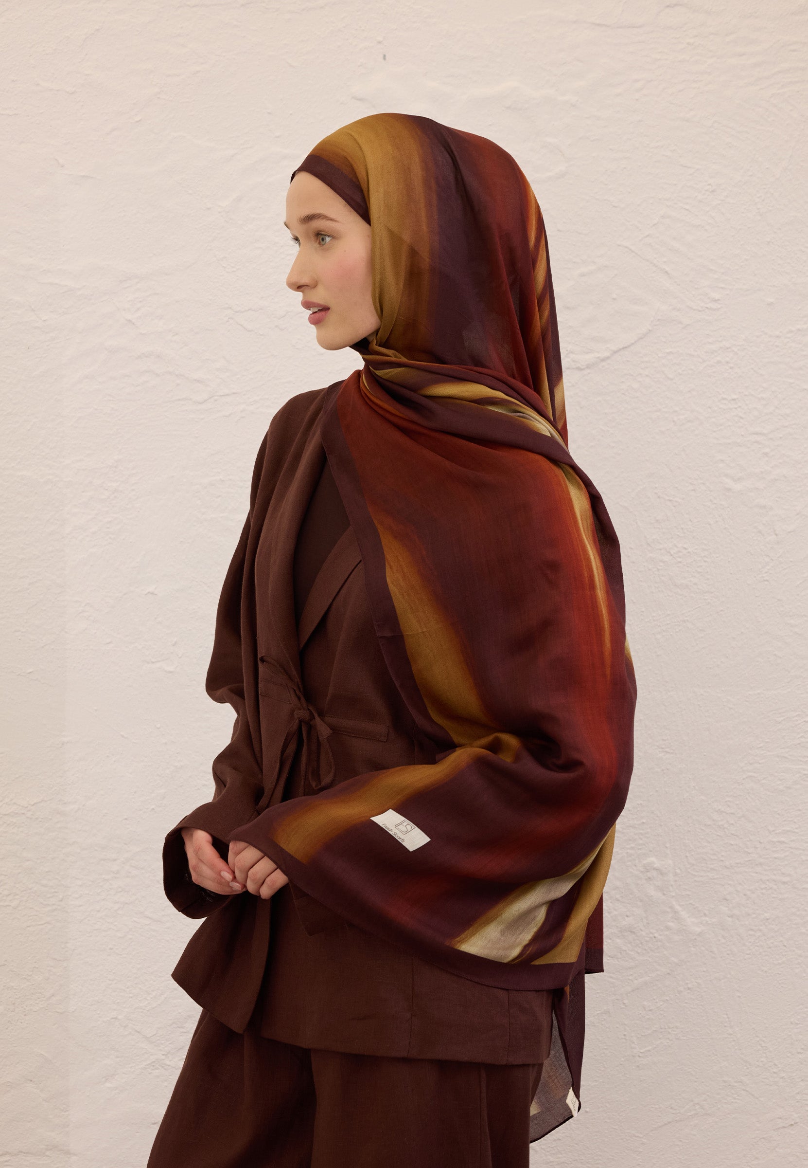 From the Rami Scarf Collection — crafted with a special blend of viscose and rami yarns, offering an ultra-light feel that moves gently with the breeze.