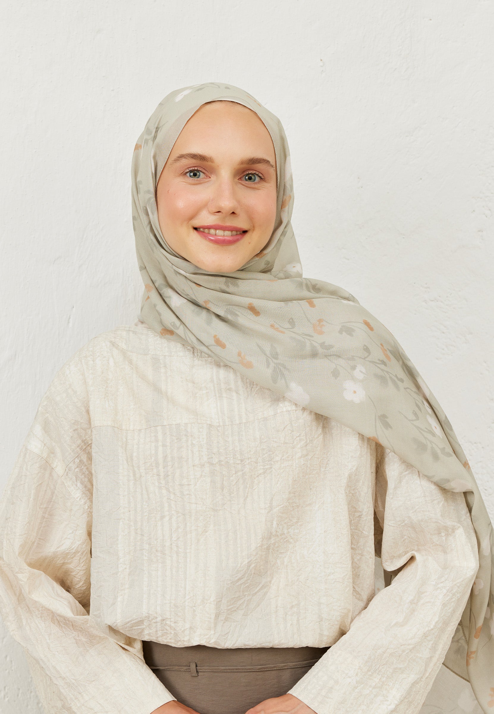 Soft Flowers Patterned Rami Hijab Stone