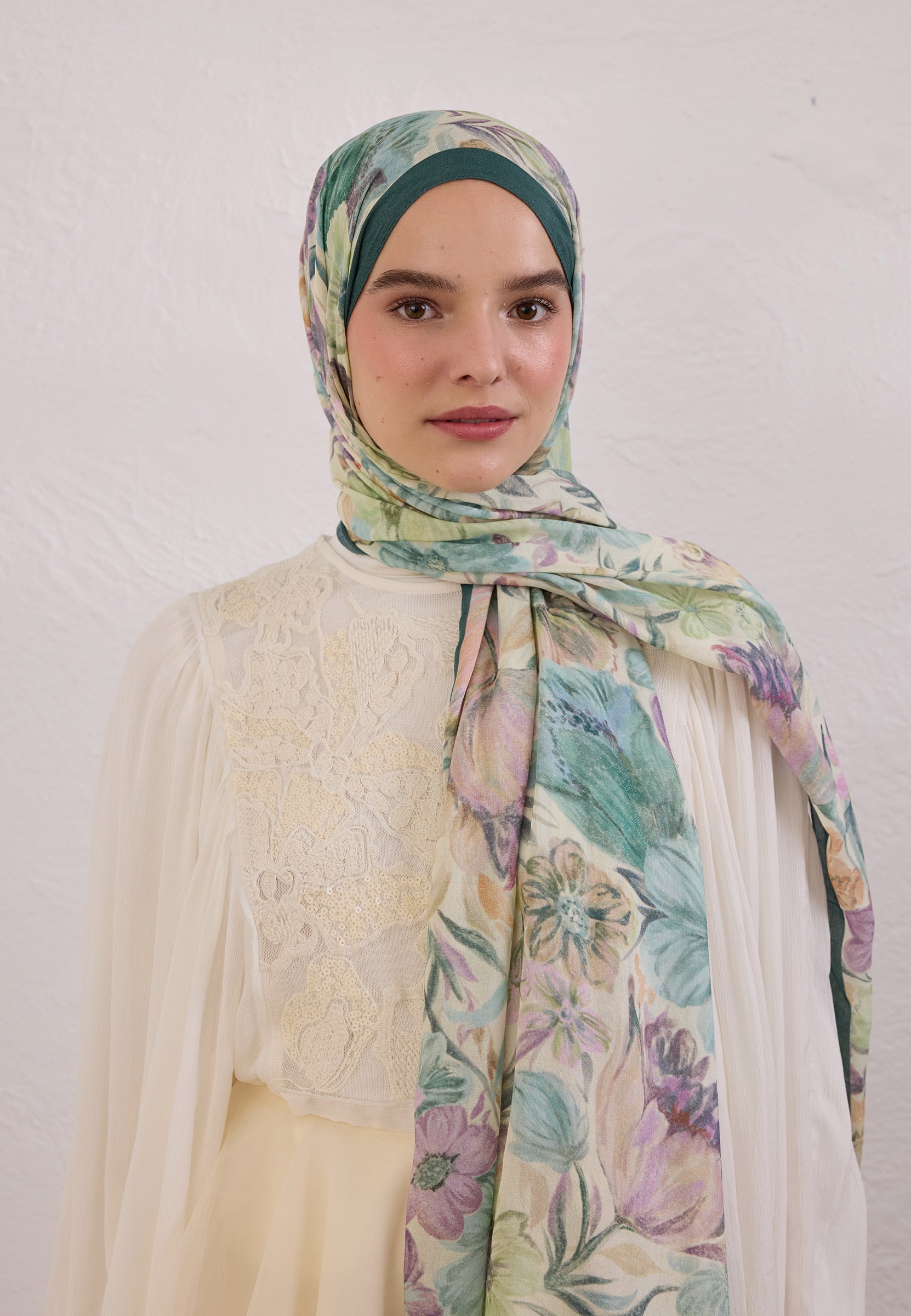 Vintage Garden Patterned Rami Hijab Green