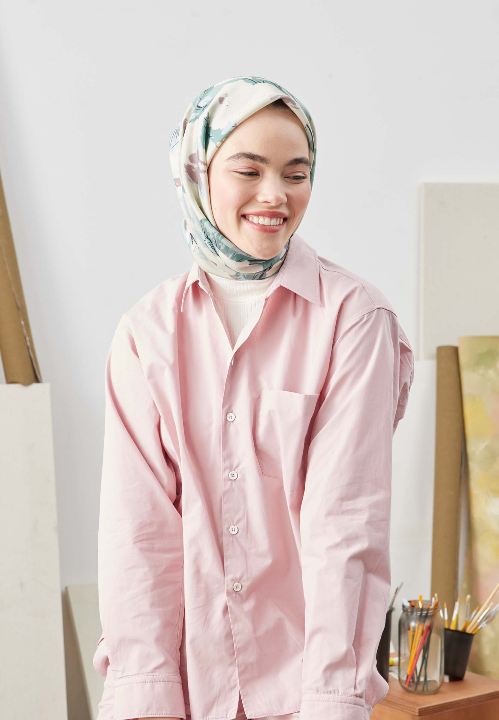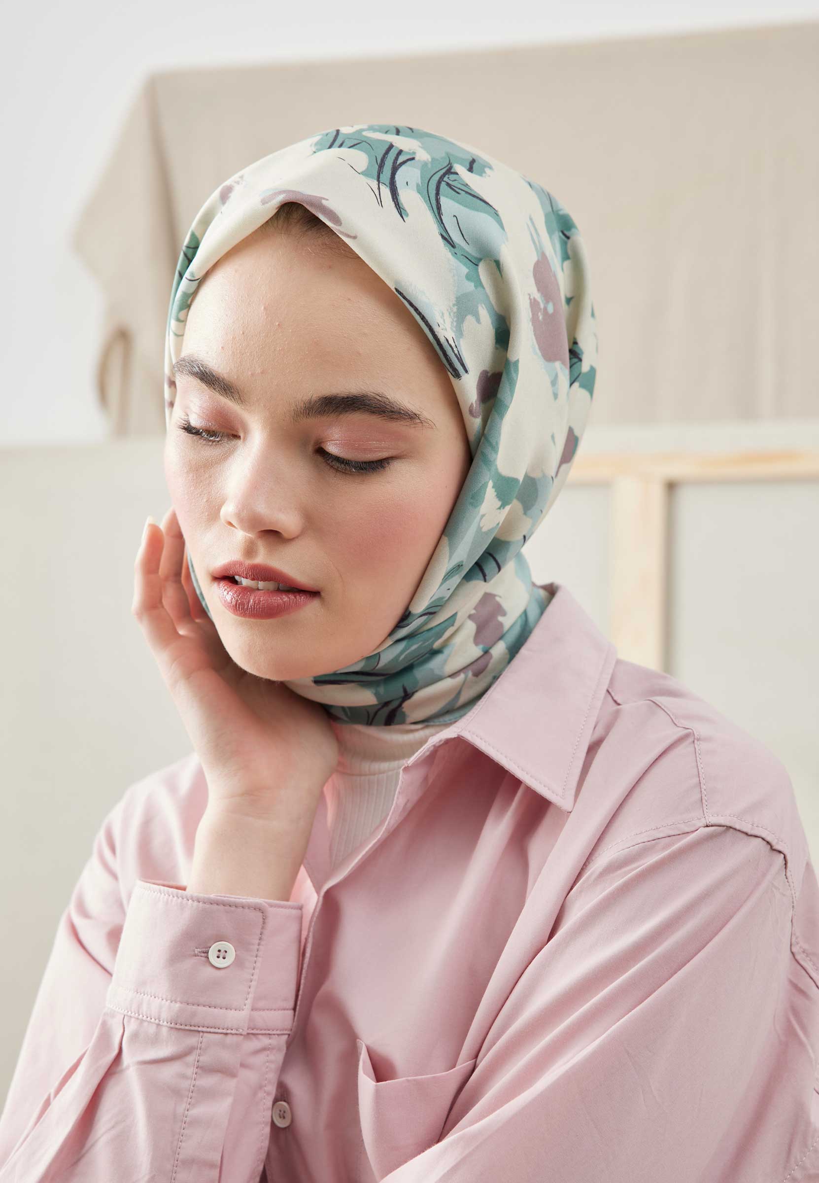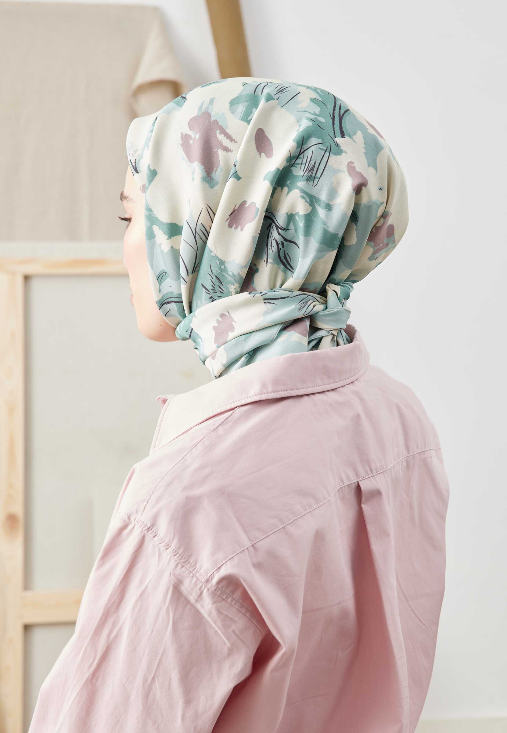 Multi Flower Patterned Cotton Silk Scarf Mint