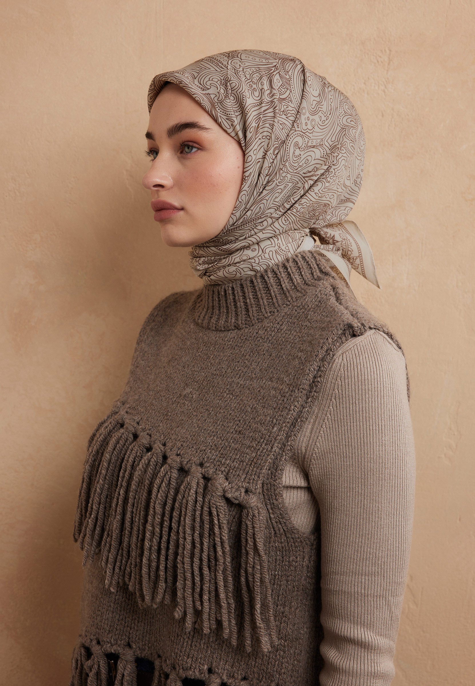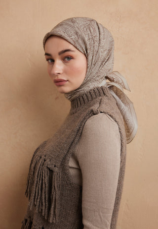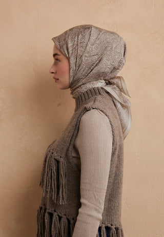 Reina Patterned Cotton-Silk Scarf Beige