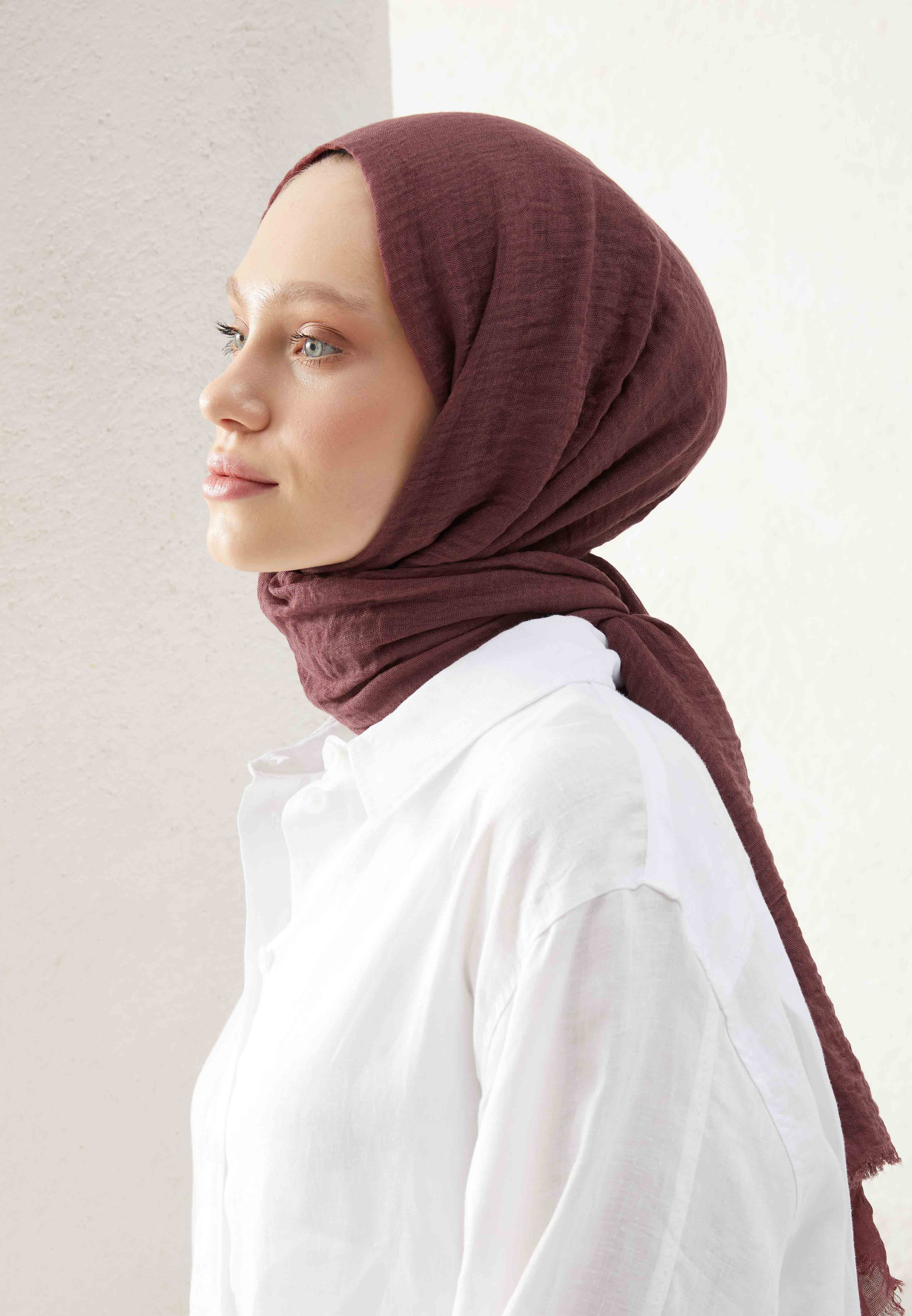 Made from soft cotton-viscose fabric, this hijab is designed for seasonal wear with a naturally wrinkle-resistant texture.