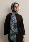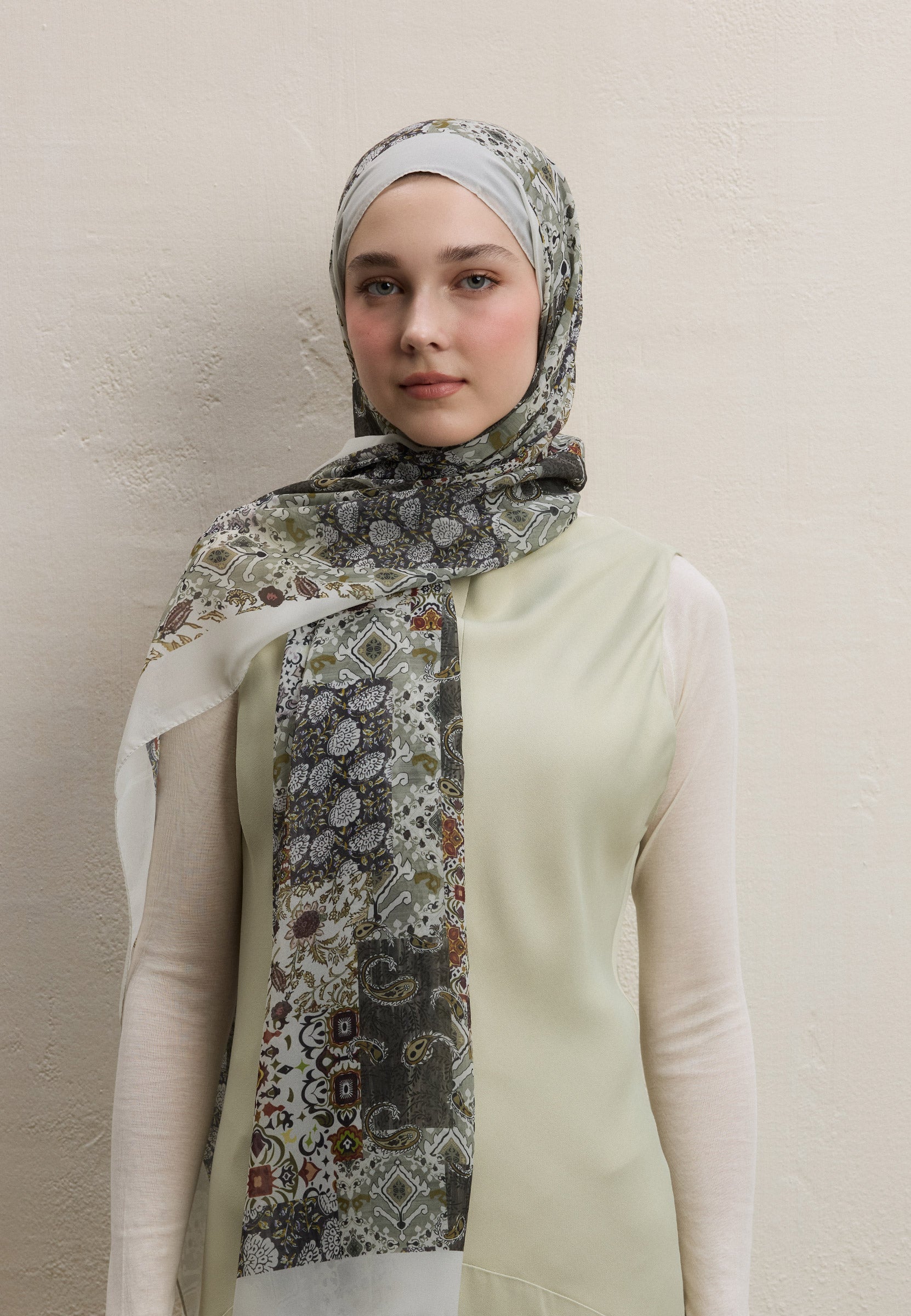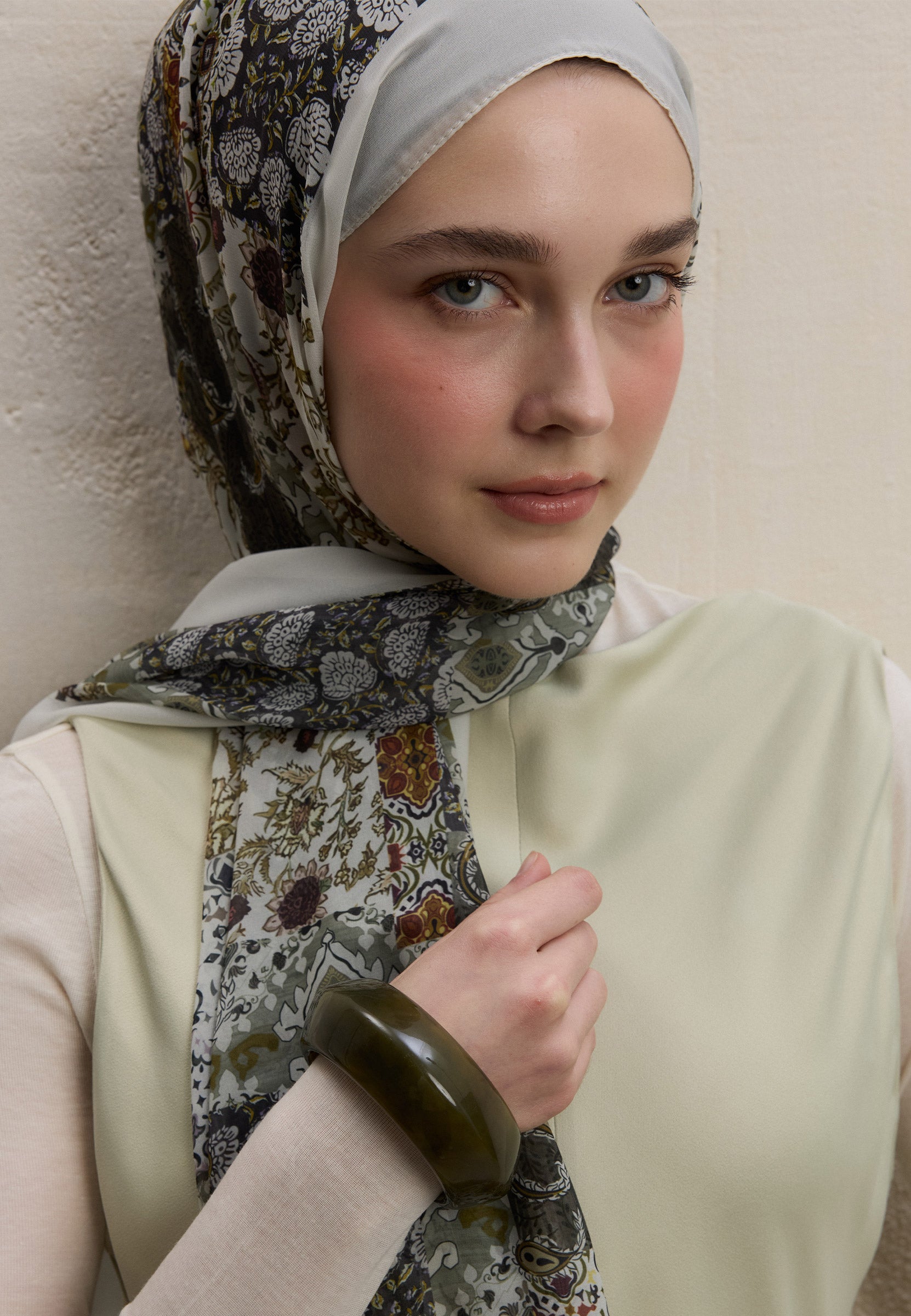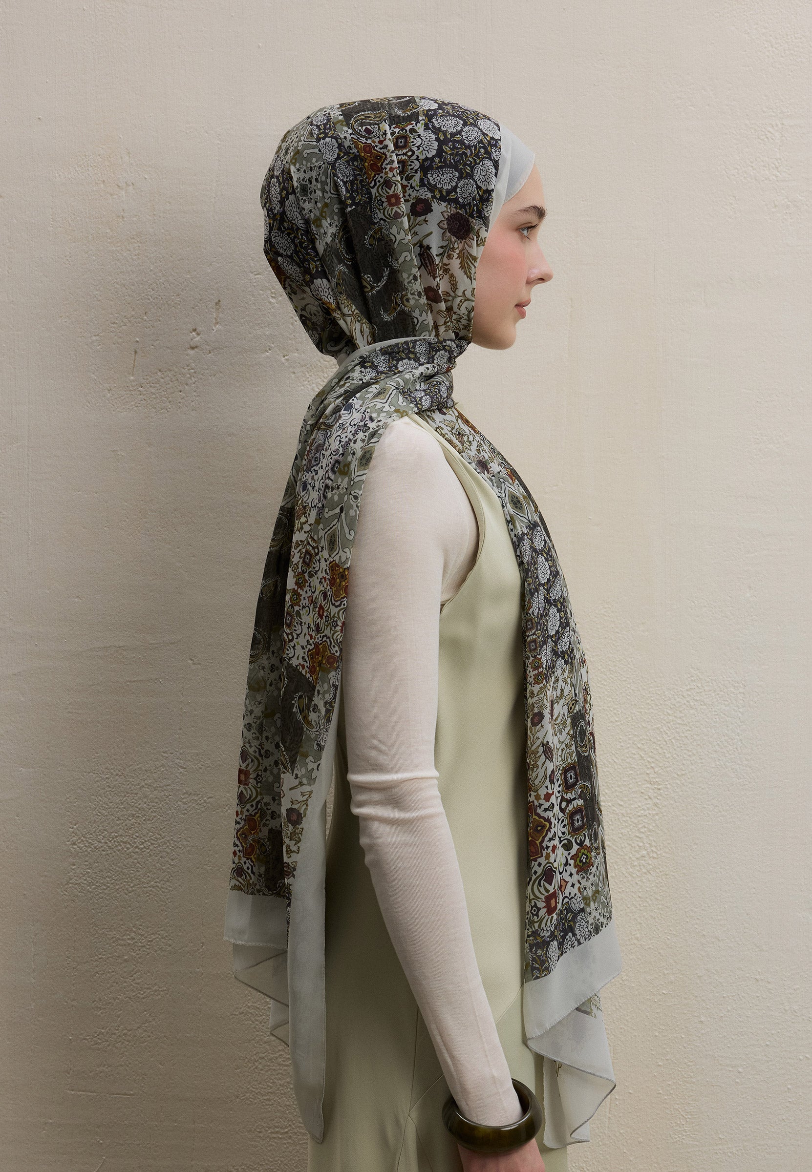 Ethnic Figure Printed Silk Crepe Hijab Khaki