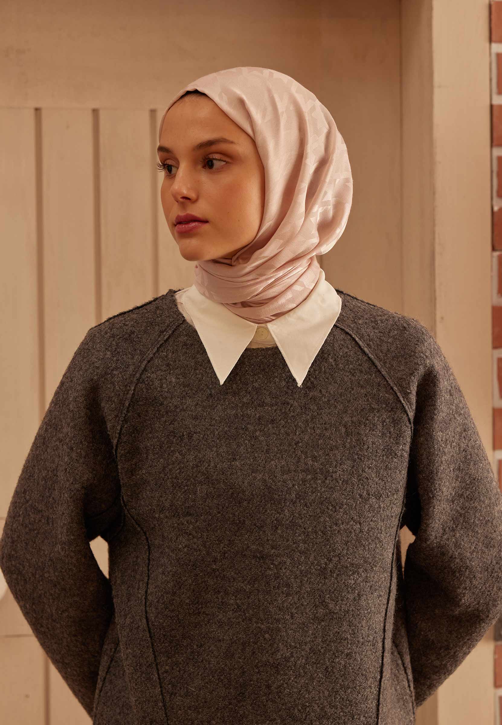 Houndstooth Jacquard Hijab Powder Pink