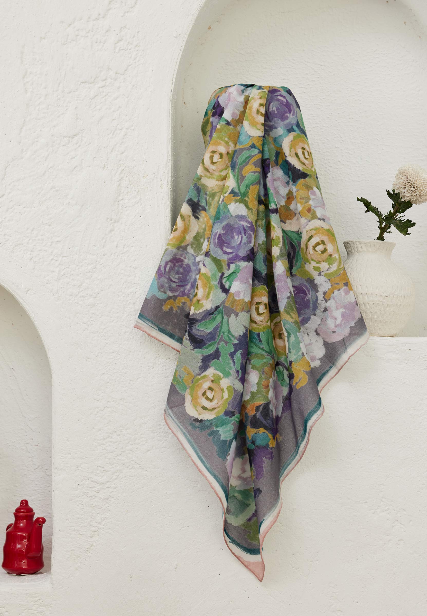 Designed for year-round wear, it measures 97 x 97 cm - the perfect size for versatile styling.