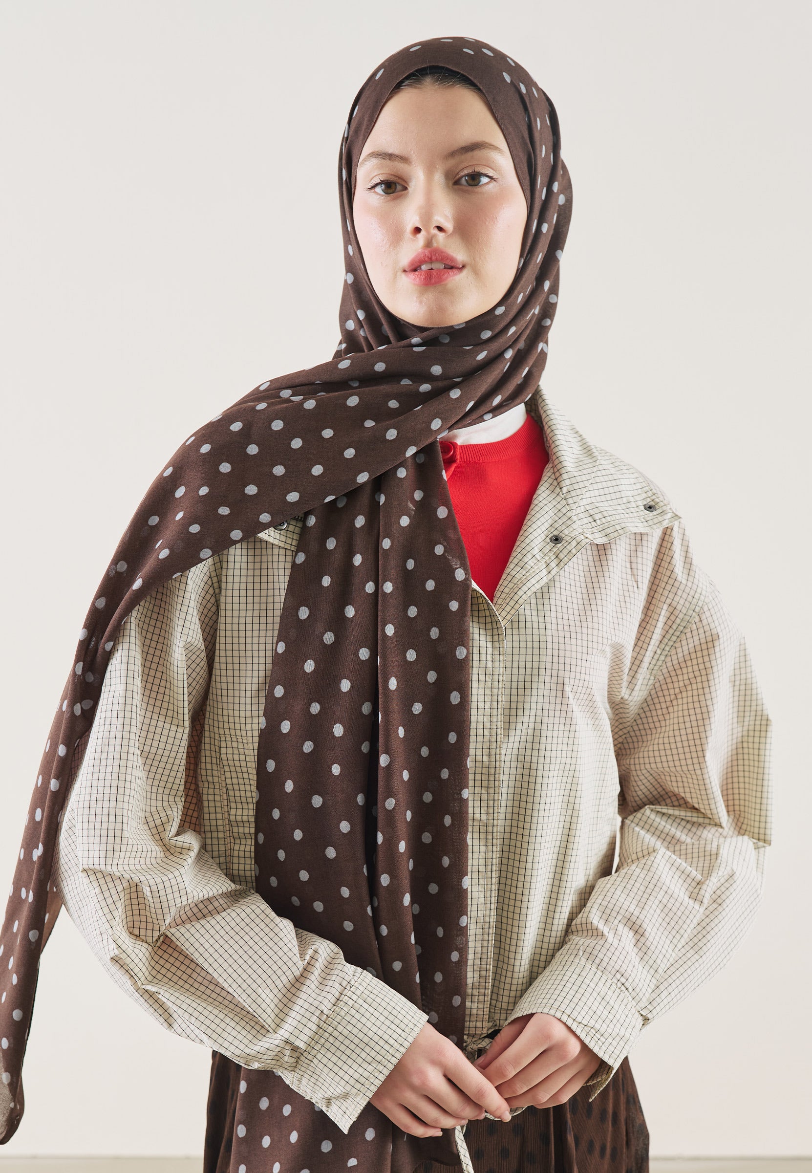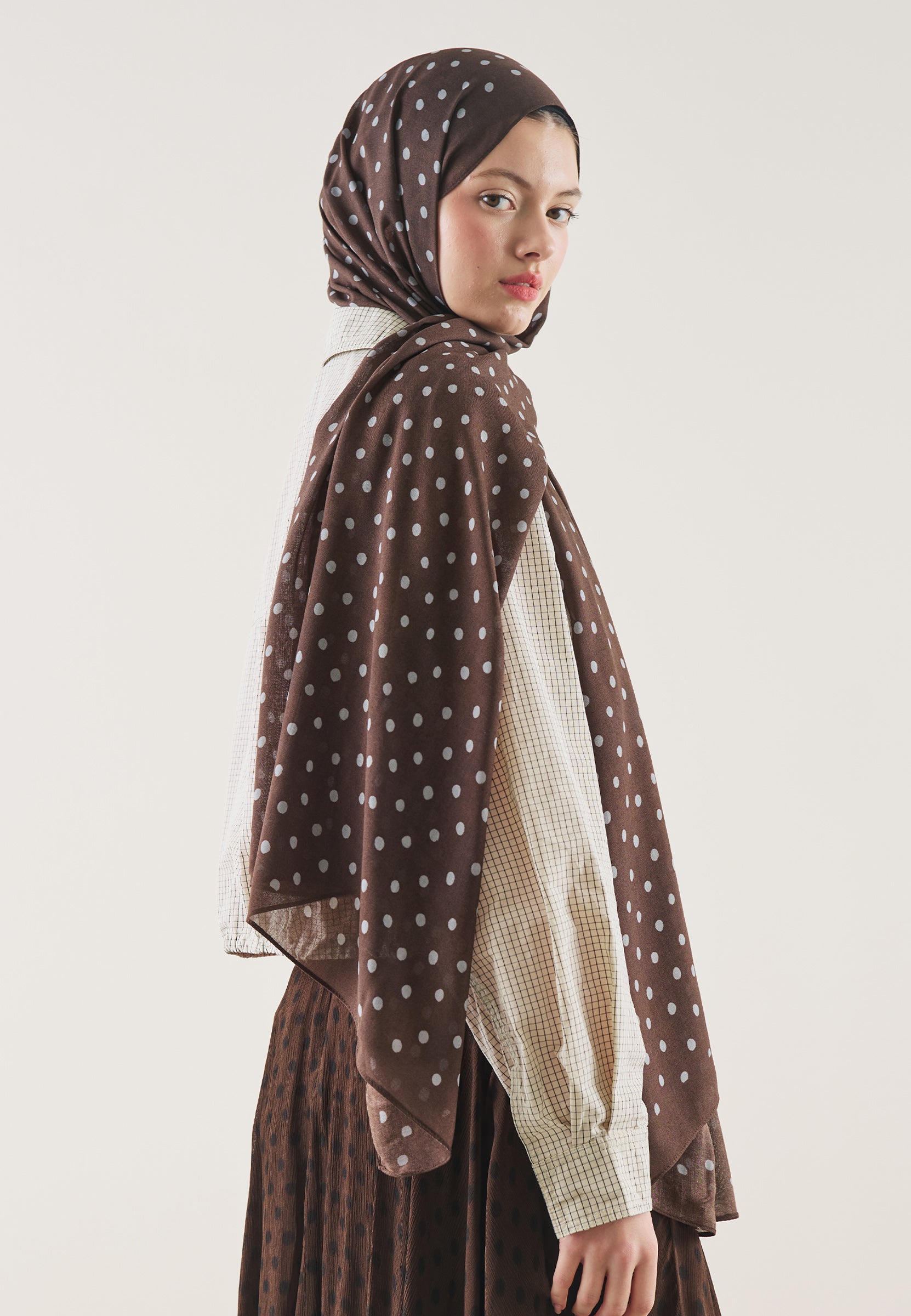 Small Polka Dot Pattern Rami Hijab Deep Brown