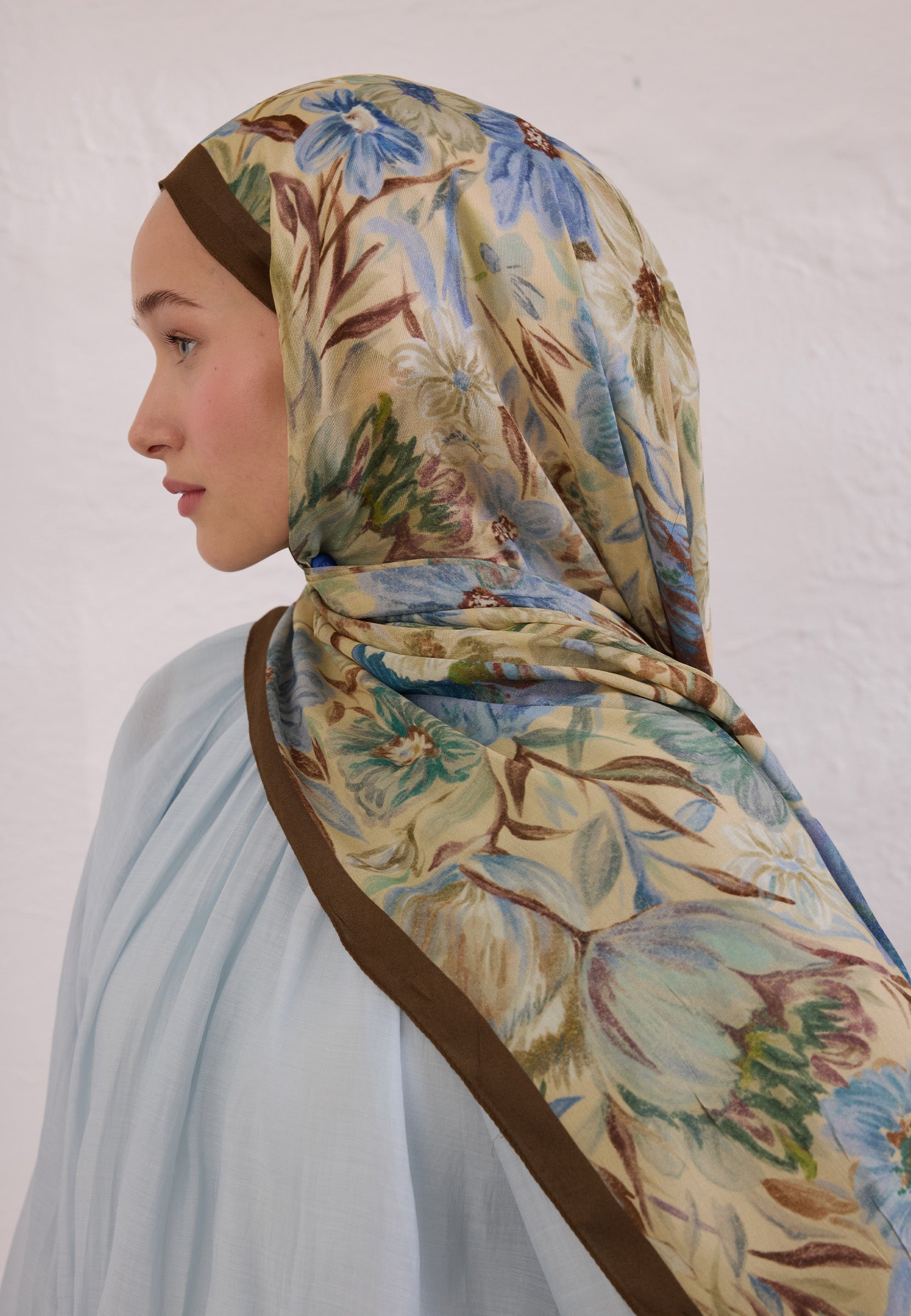 Vintage Garden Patterned Rami Hijab Hazelnut Shell