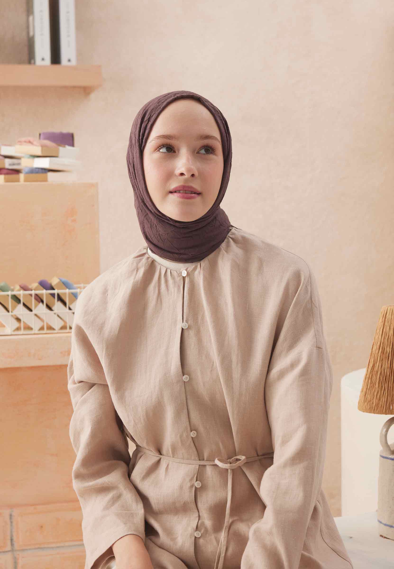 Dyed with organic dyes, this hijab features a naturally crinkled texture that requires no ironing - perfect for effortless, everyday elegance.
