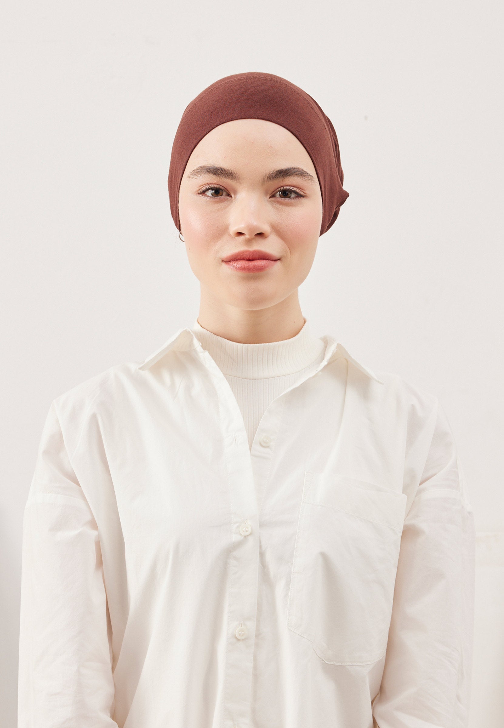 Ense ve çenenin altından geçmelidir. Çift yönlü kullanıma uygundur. Önü dikişsizdir. Topuz kısmı hacimlidir. Çenenin altına koyduğunuzda başınızdan kaymaz. Gün içerisinde hava alabilen yapısı sayesinde başınızda ağrıya sebep olmaz ve saç dökülmesine neden olmaz.