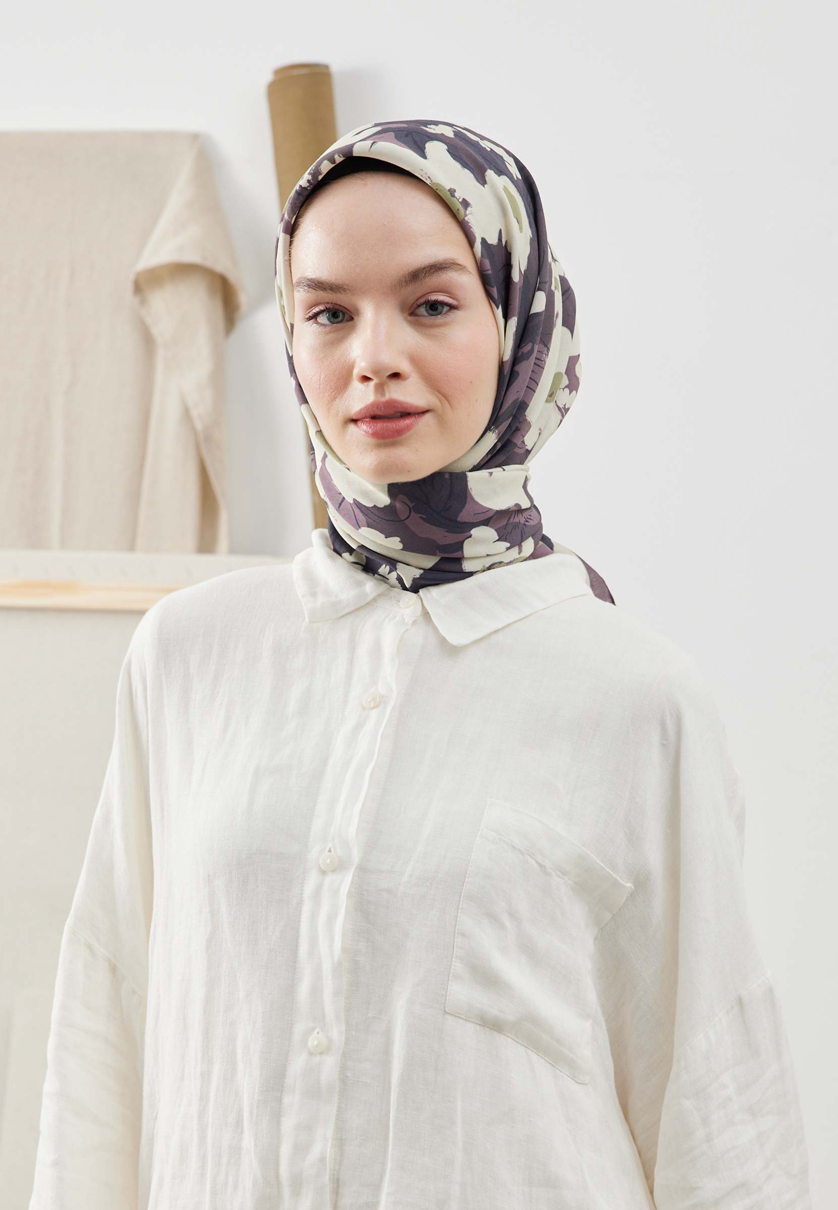 MULTI FLOWER DESEN PAMUK İPEK EŞARP MÜRDÜM