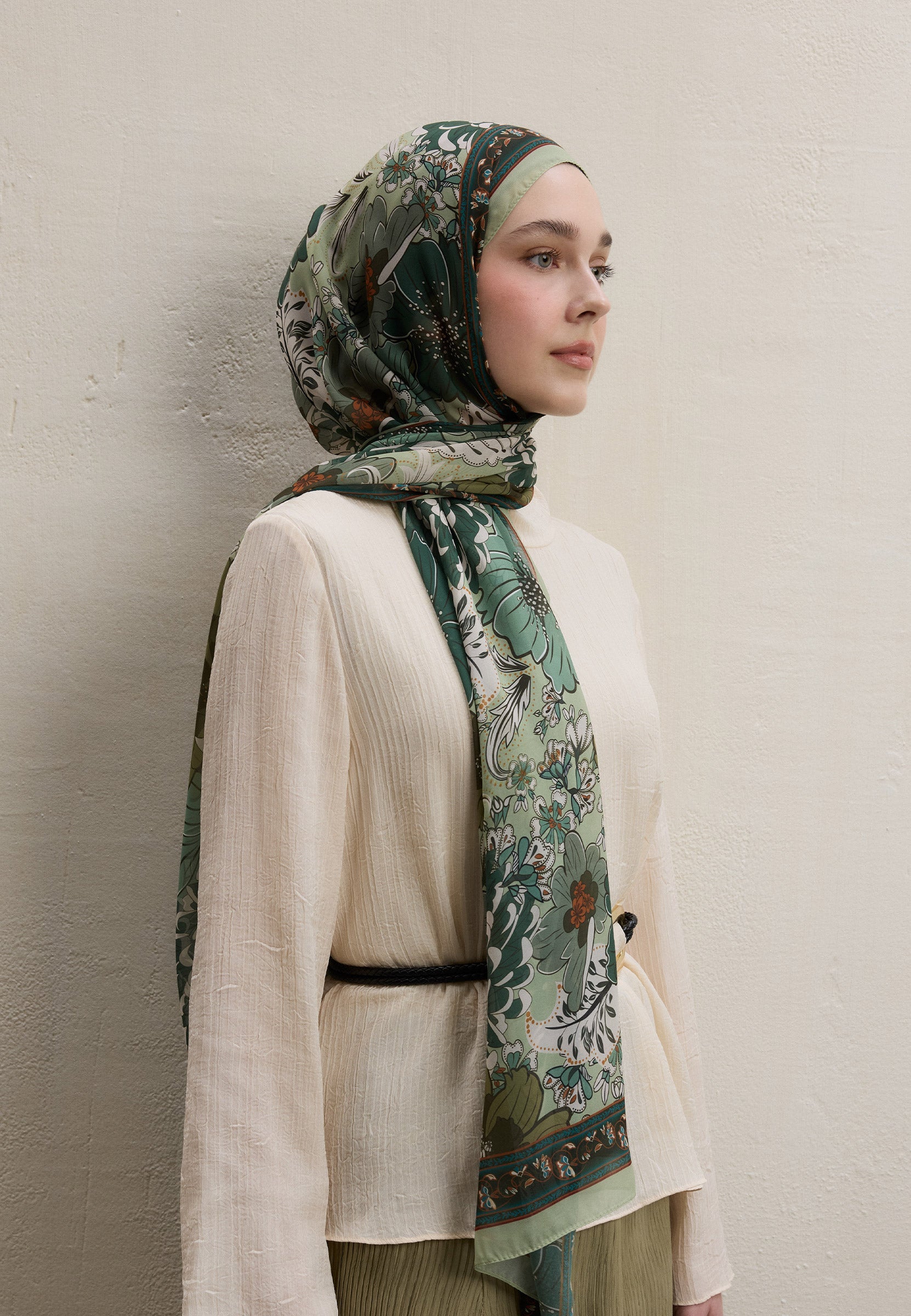 DAHLIA DESEN İPEK KREP ŞAL HAKİ