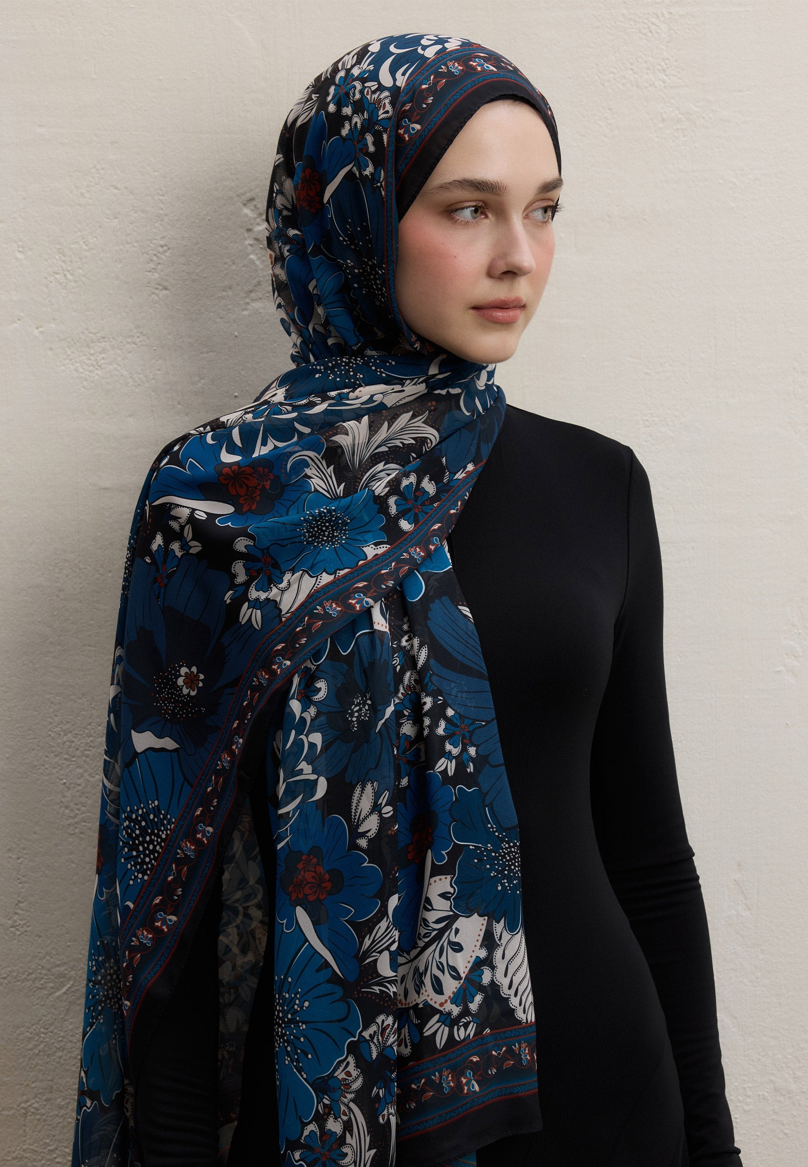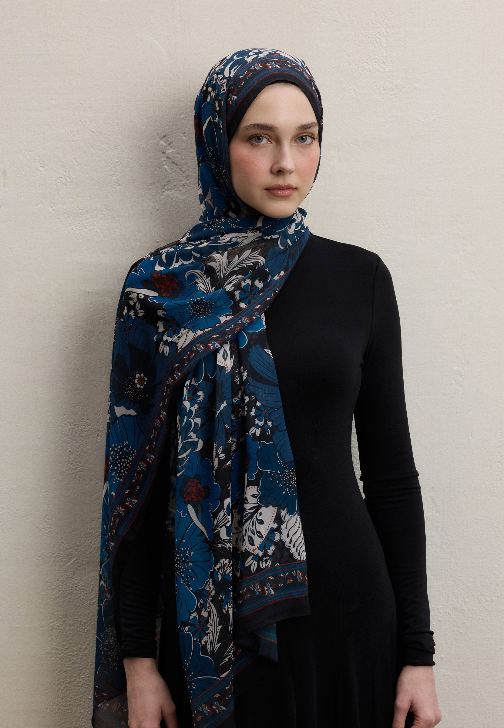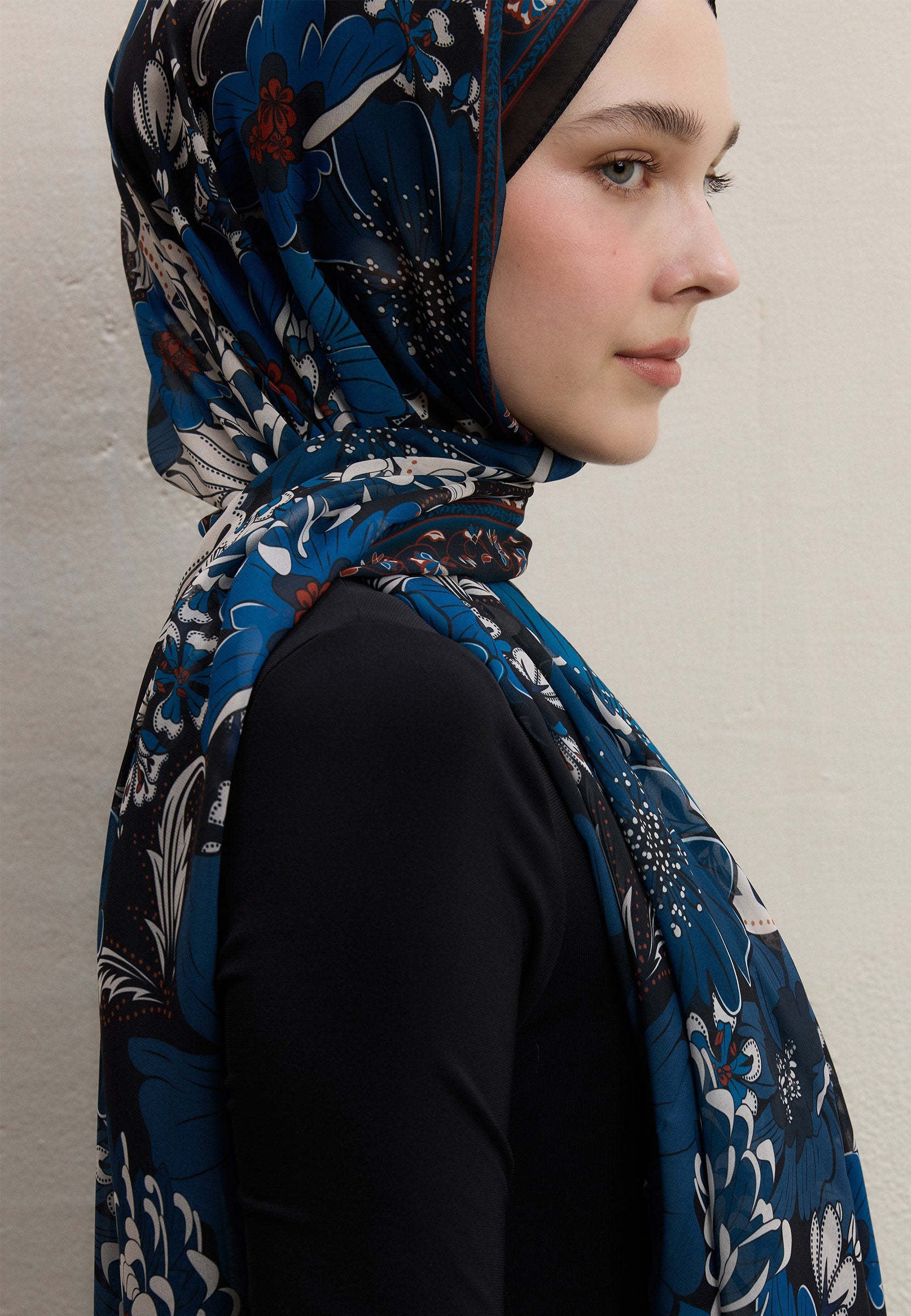 DAHLIA DESEN İPEK KREP ŞAL GECE MAVİSİ
