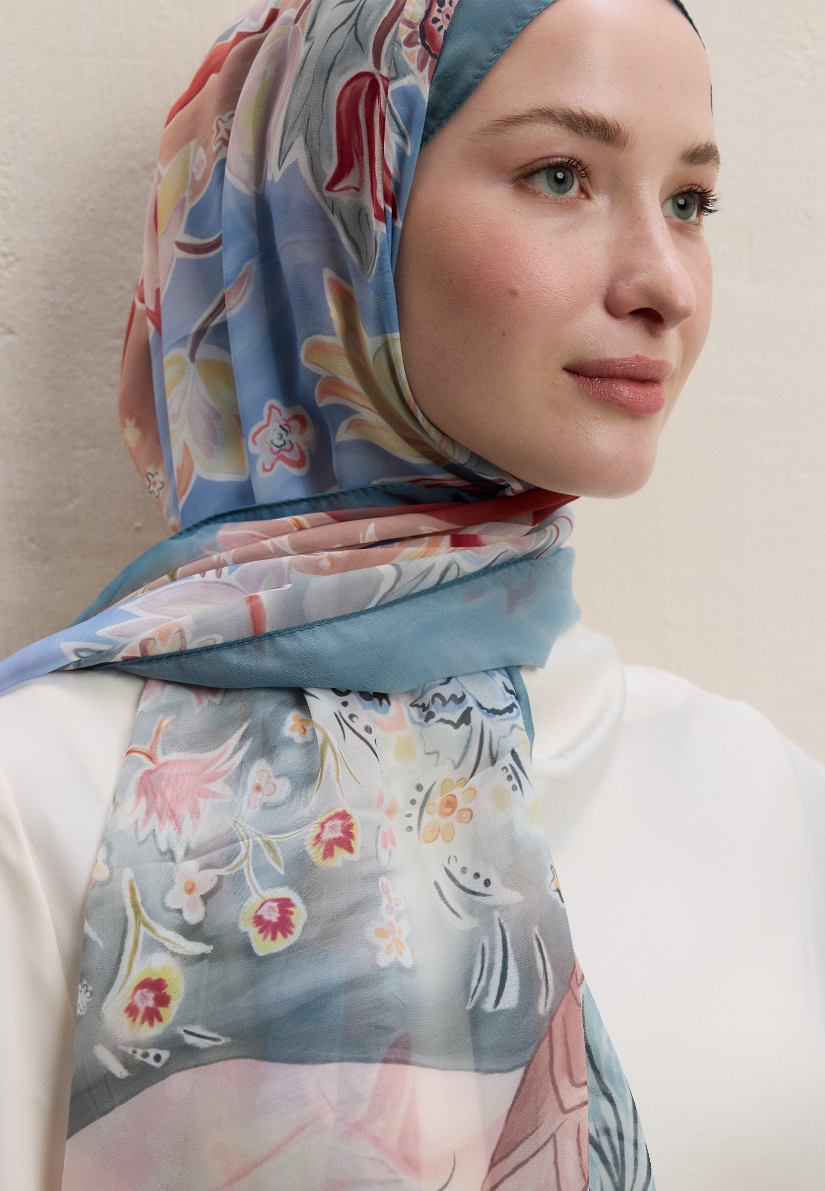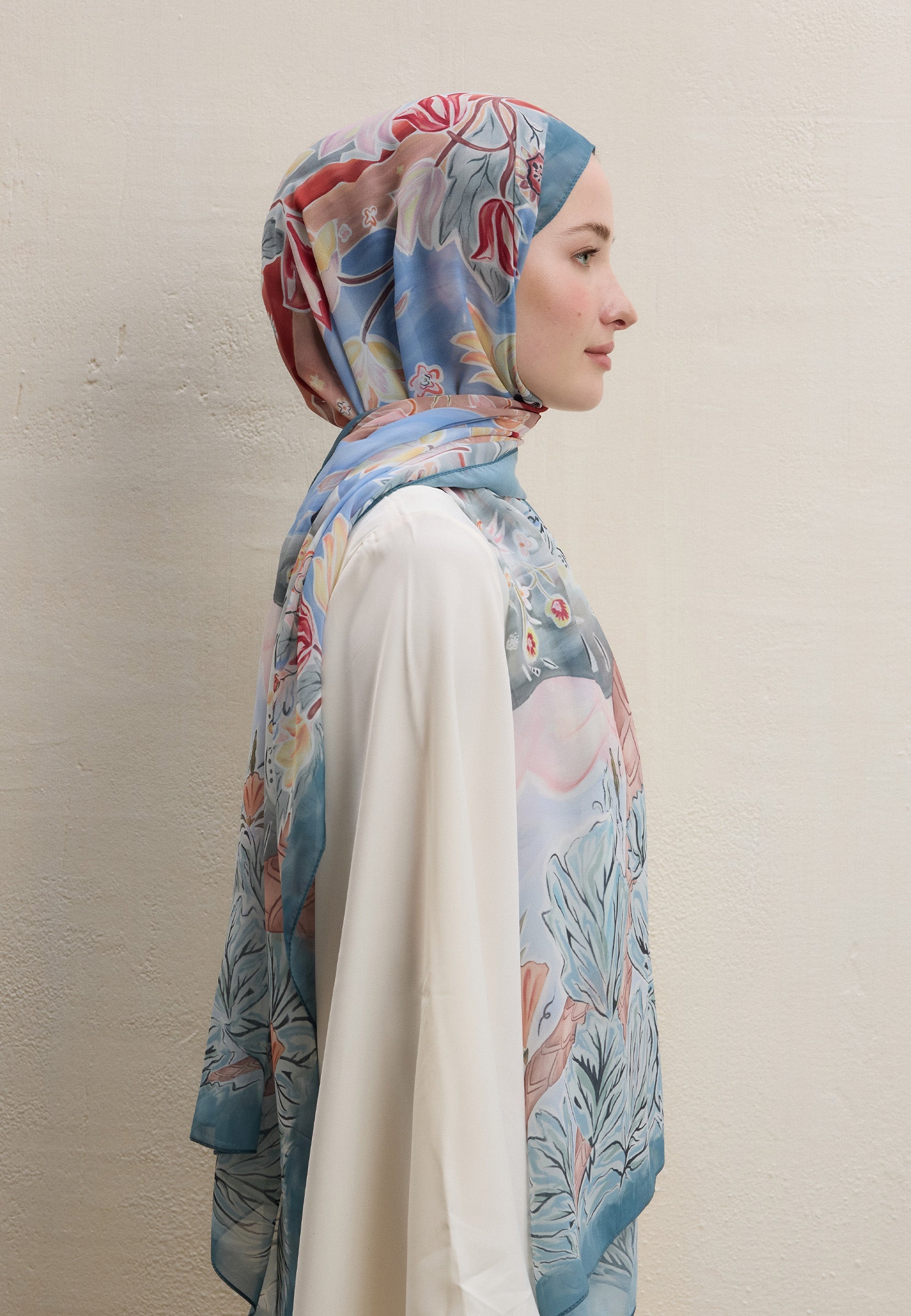 FLOWER DREAMS DESEN İPEK KREP ŞAL OKYANUS