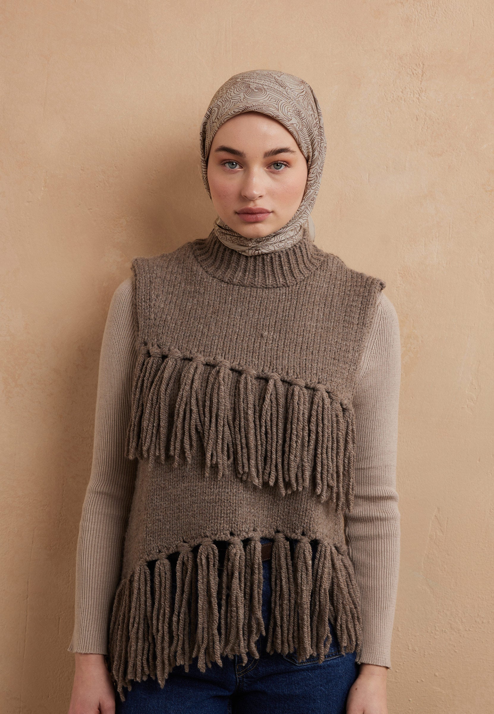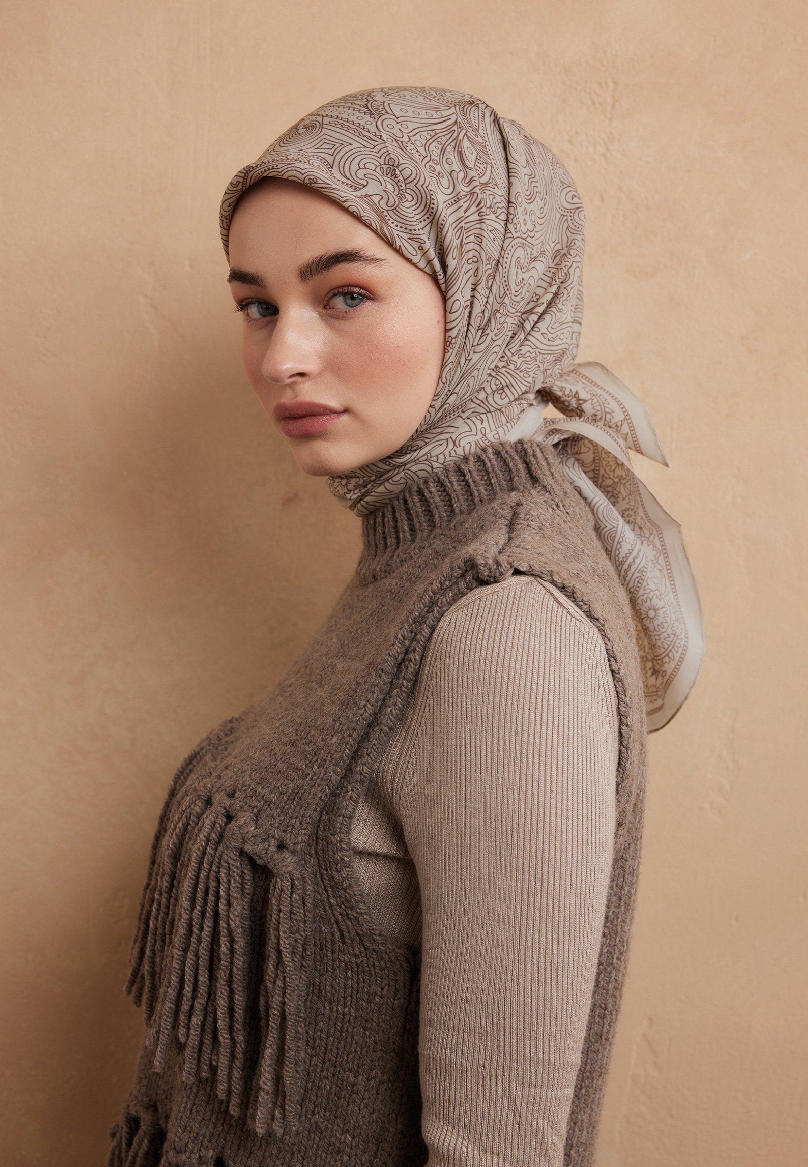 REINA DESEN PAMUK İPEK EŞARP BEJ