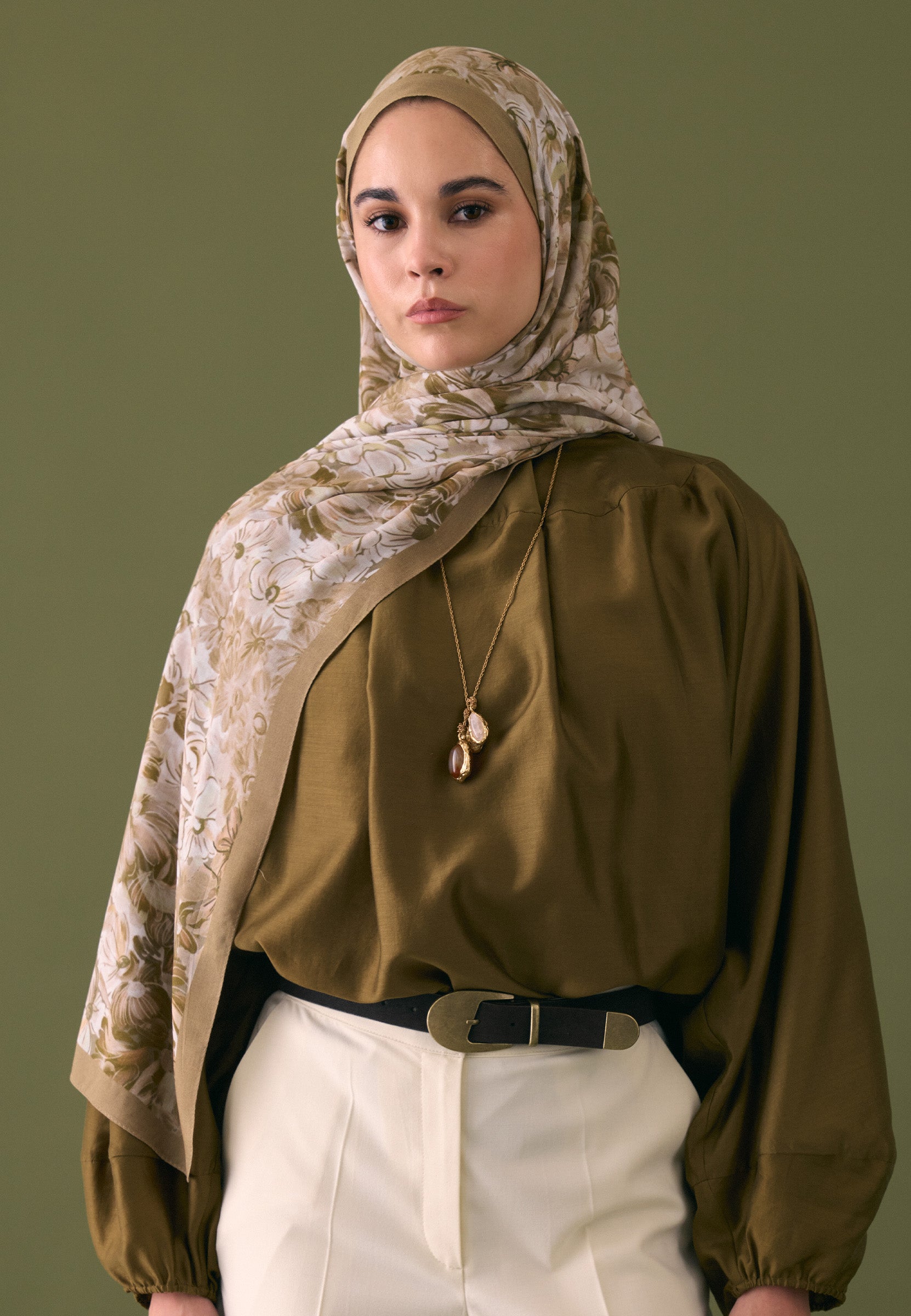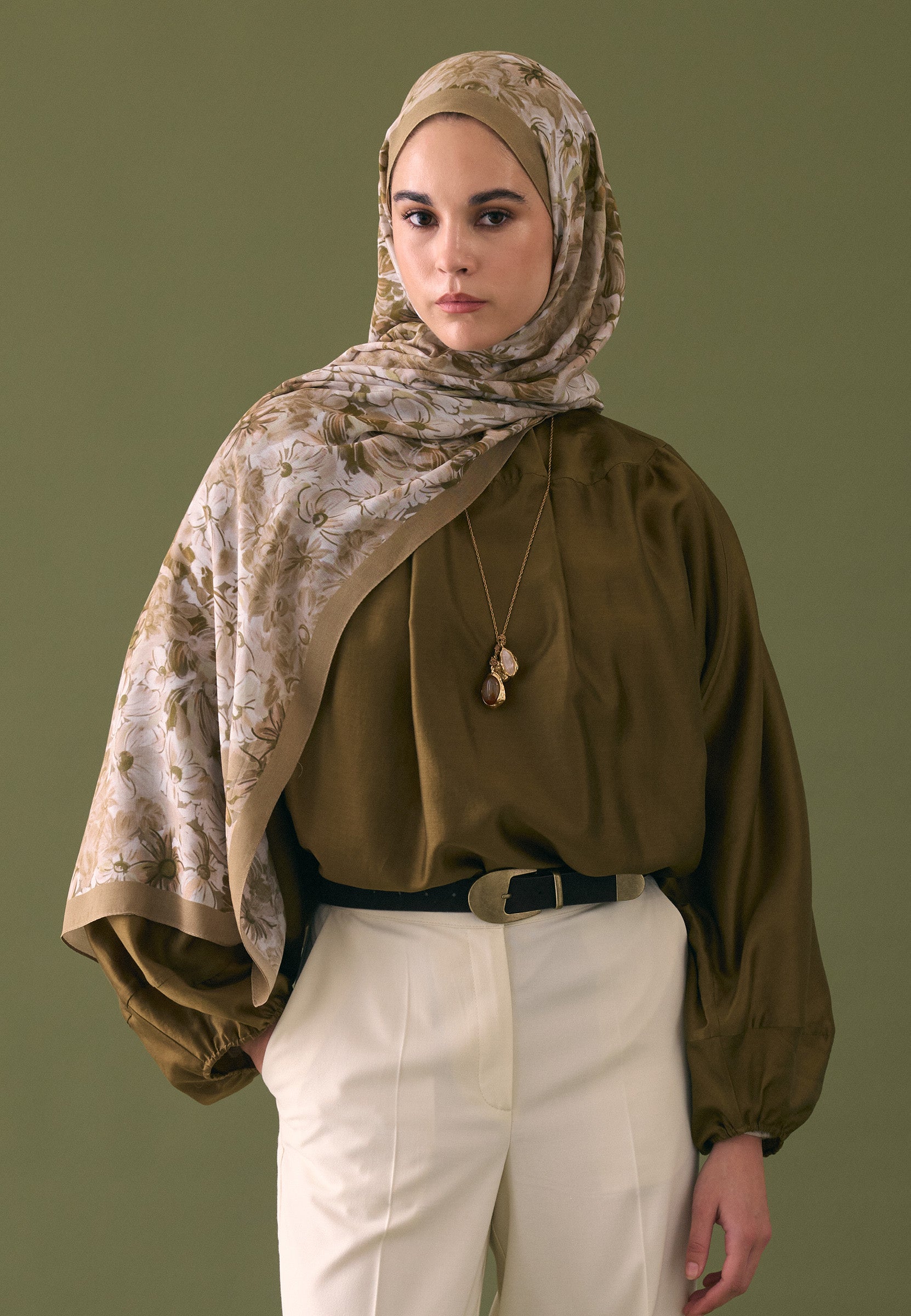 SUMMER BLOOM DESEN RAMİ ŞAL VİZON