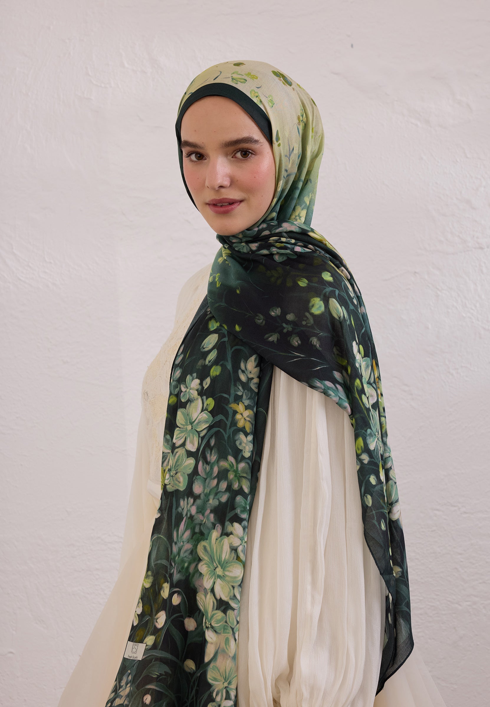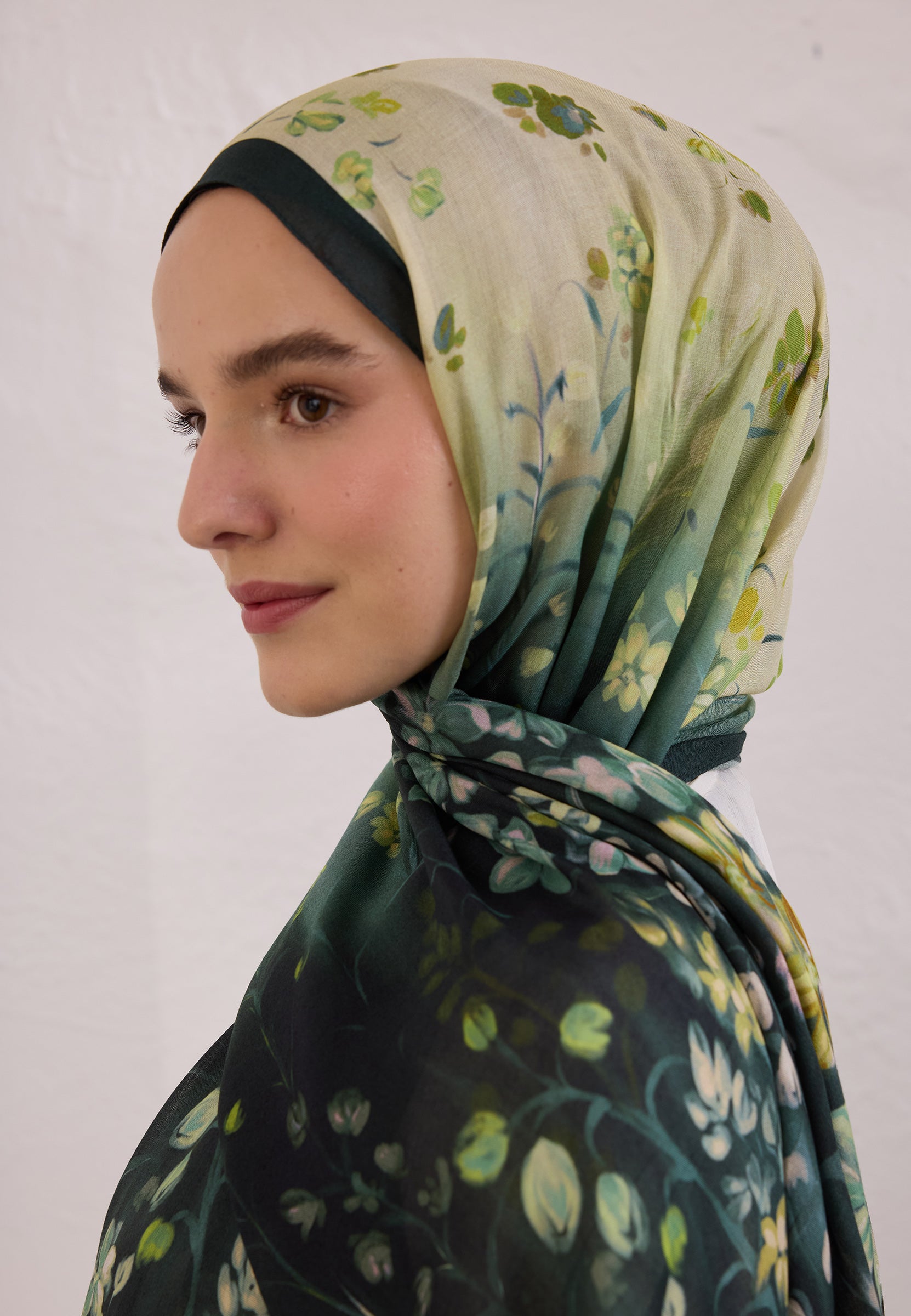WISTERIA DESEN RAMİ ŞAL KOYU YEŞİL