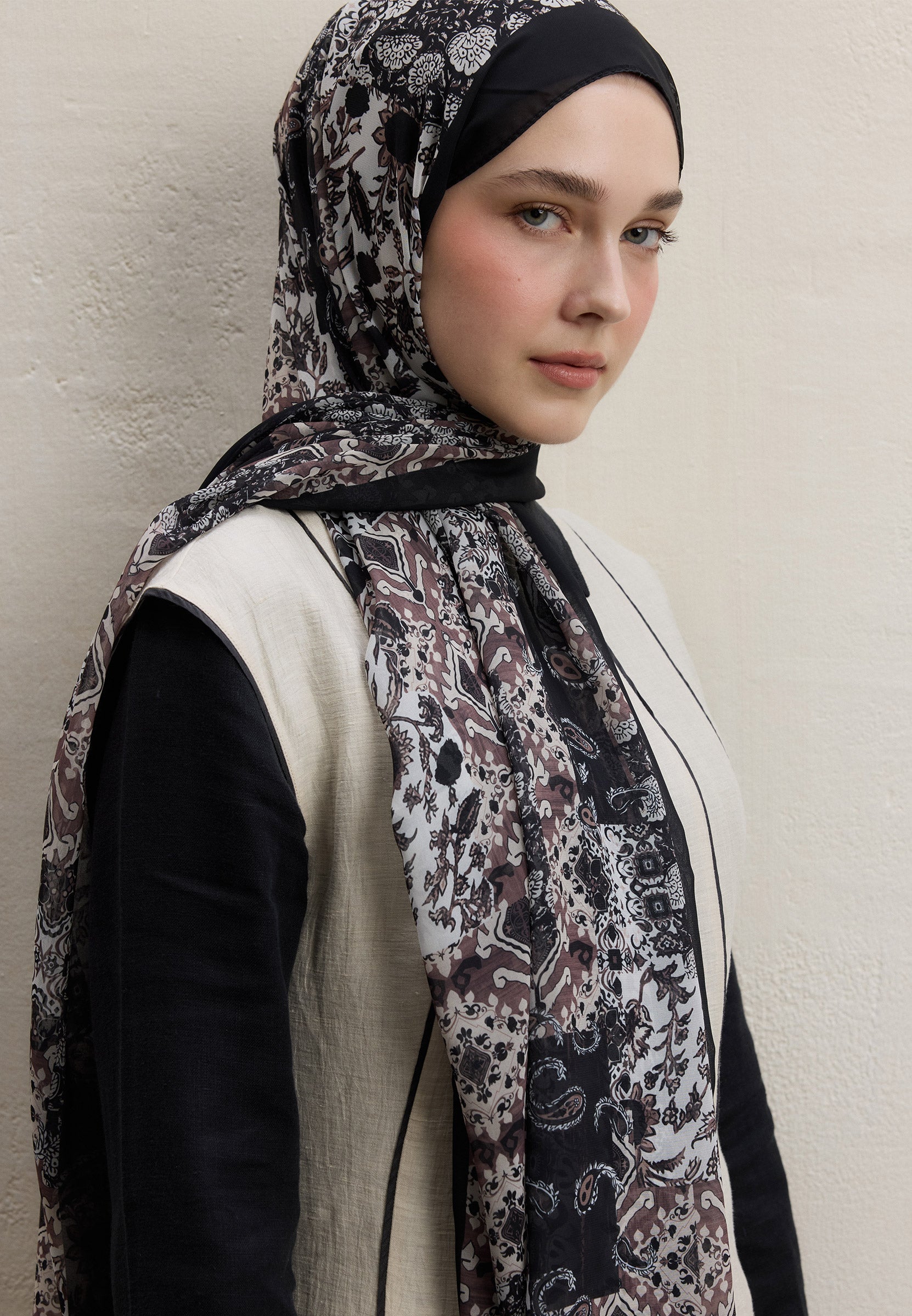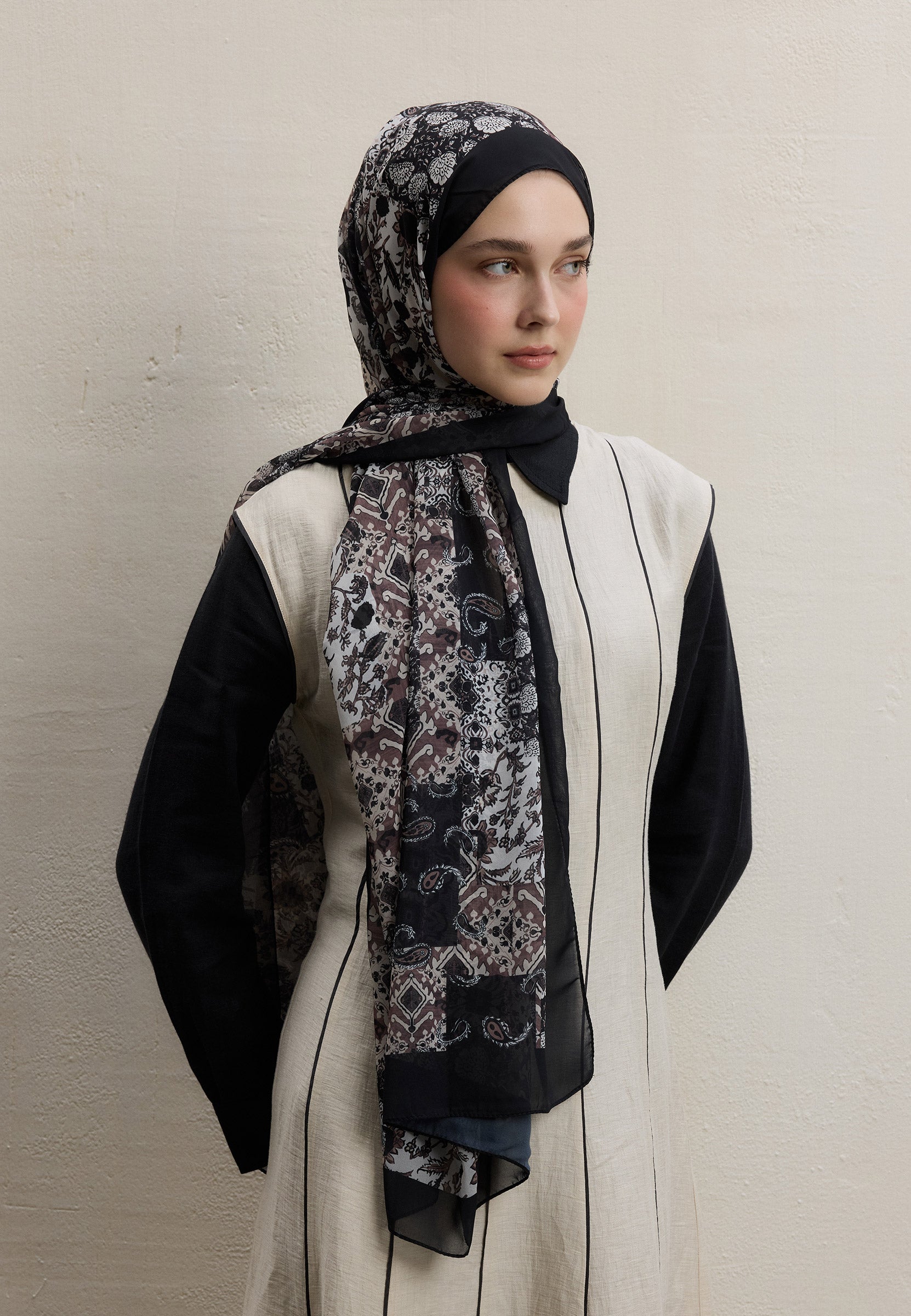 ETHNIC FIGURE DESEN İPEK KREP ŞAL SİYAH