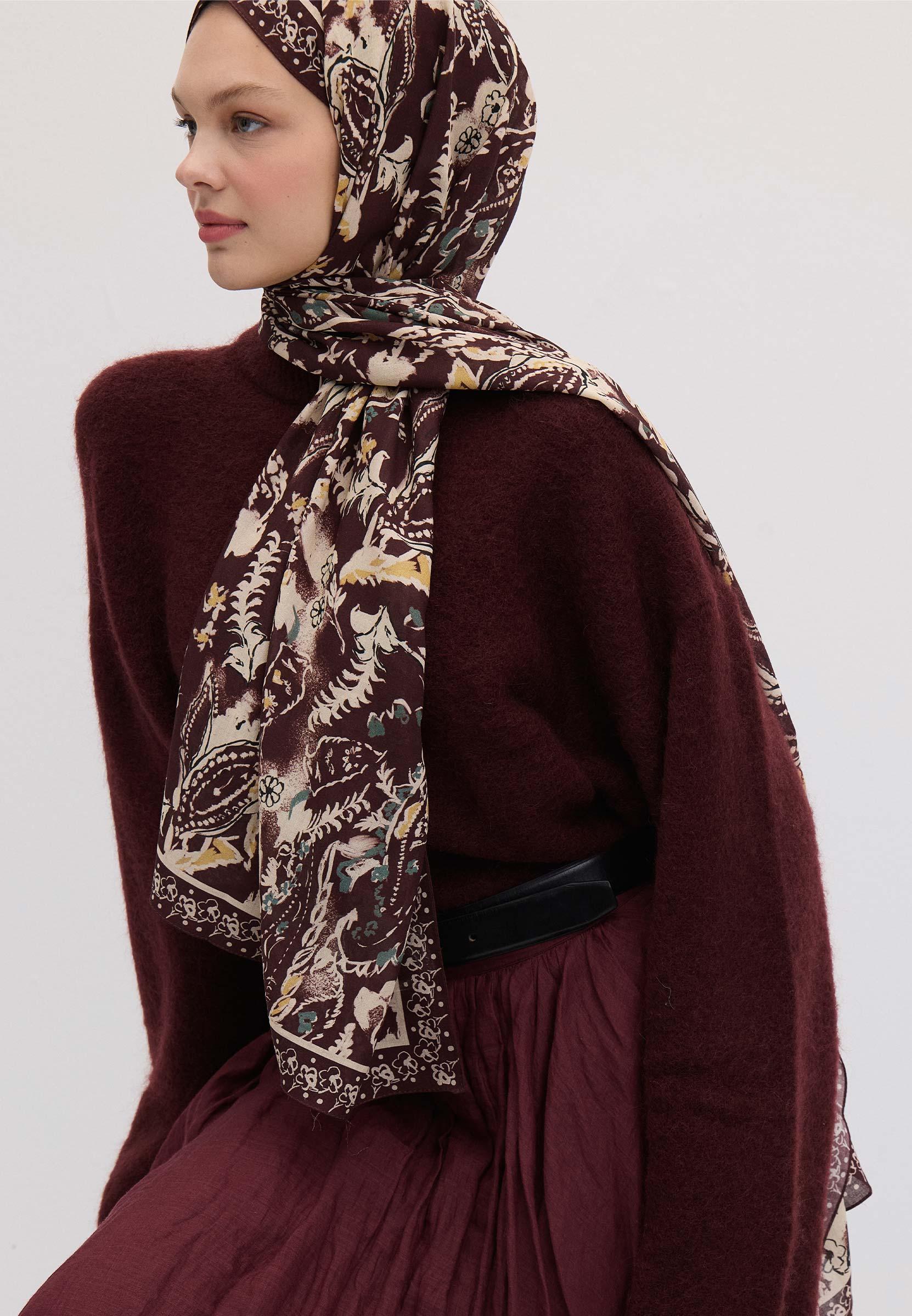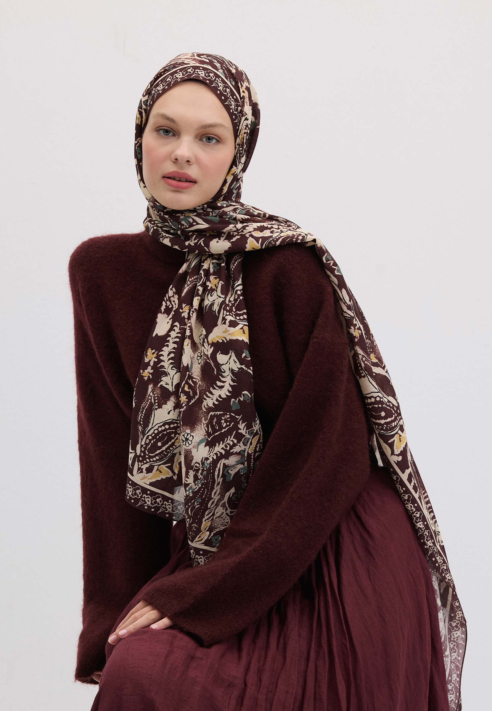 FLORAL PAISLEY DESEN ŞAL KOYU MÜRDÜM