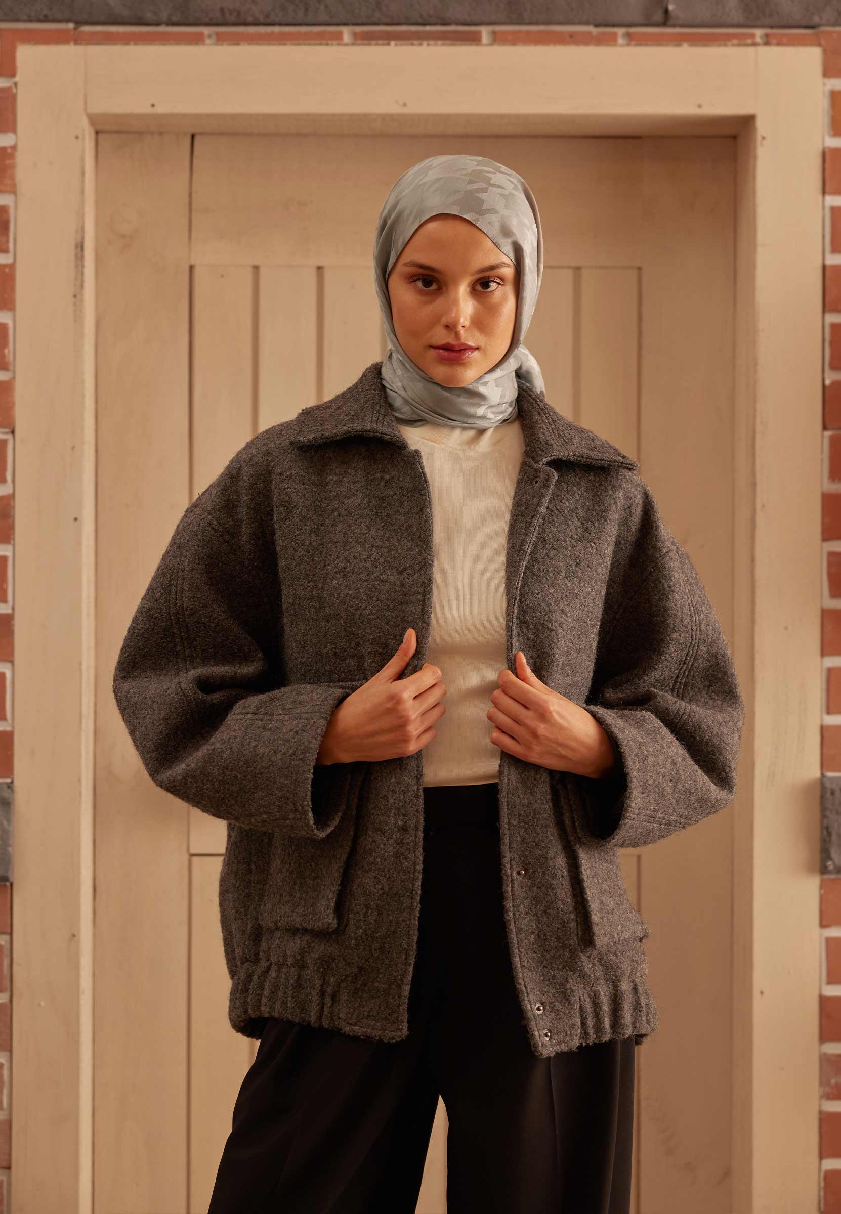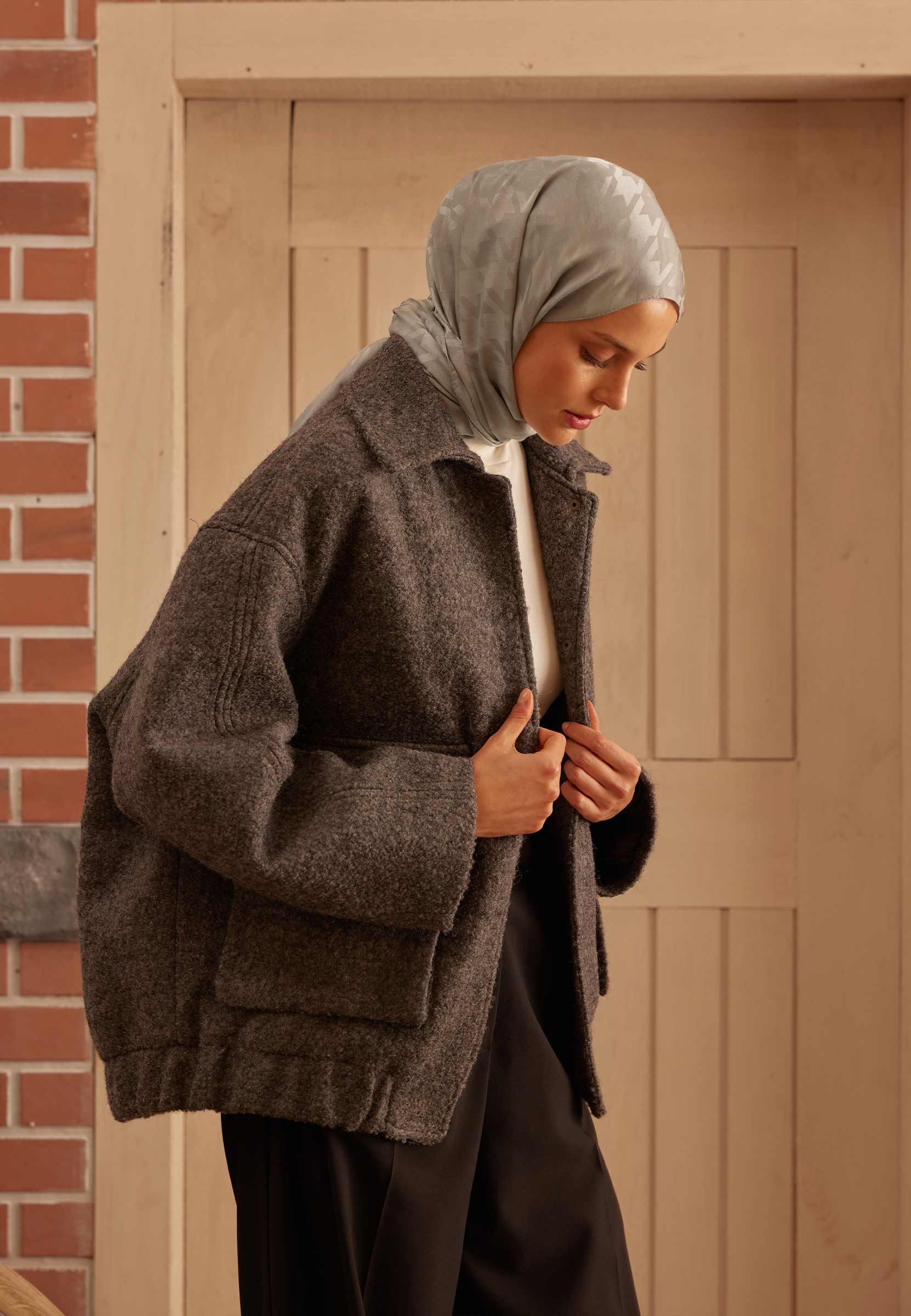 KAZAYAĞI JAKARLI ŞAL KOYU GRİ