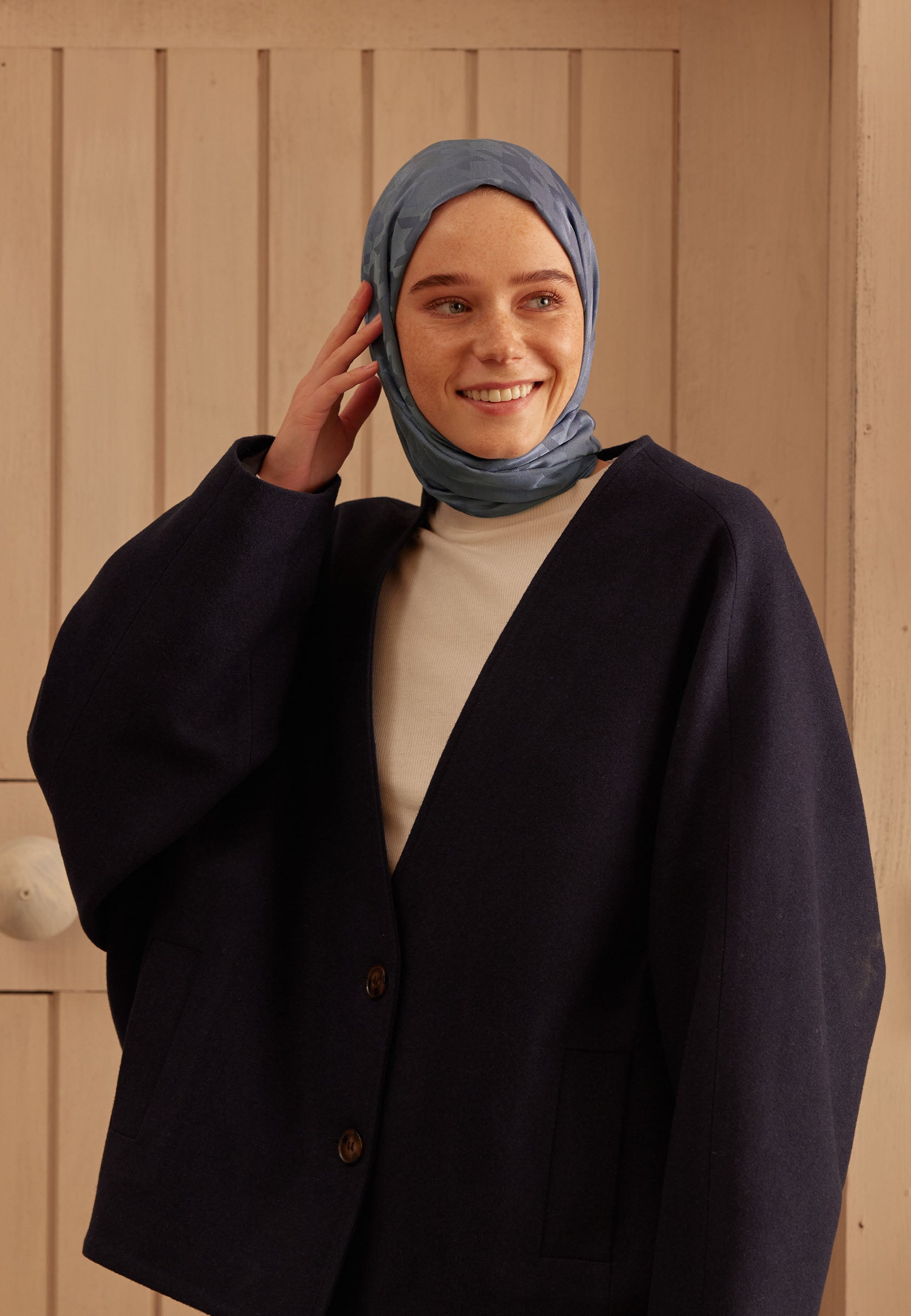 KAZAYAĞI JAKARLI ŞAL KOT MAVİ