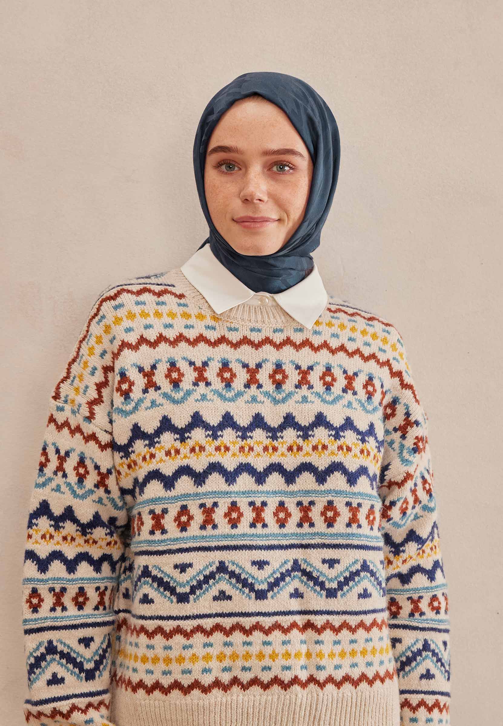 KAZAYAĞI JAKARLI ŞAL LACİVERT