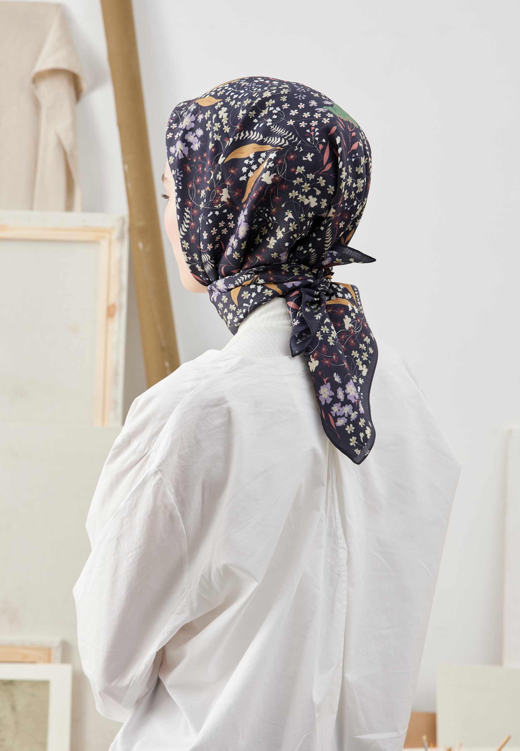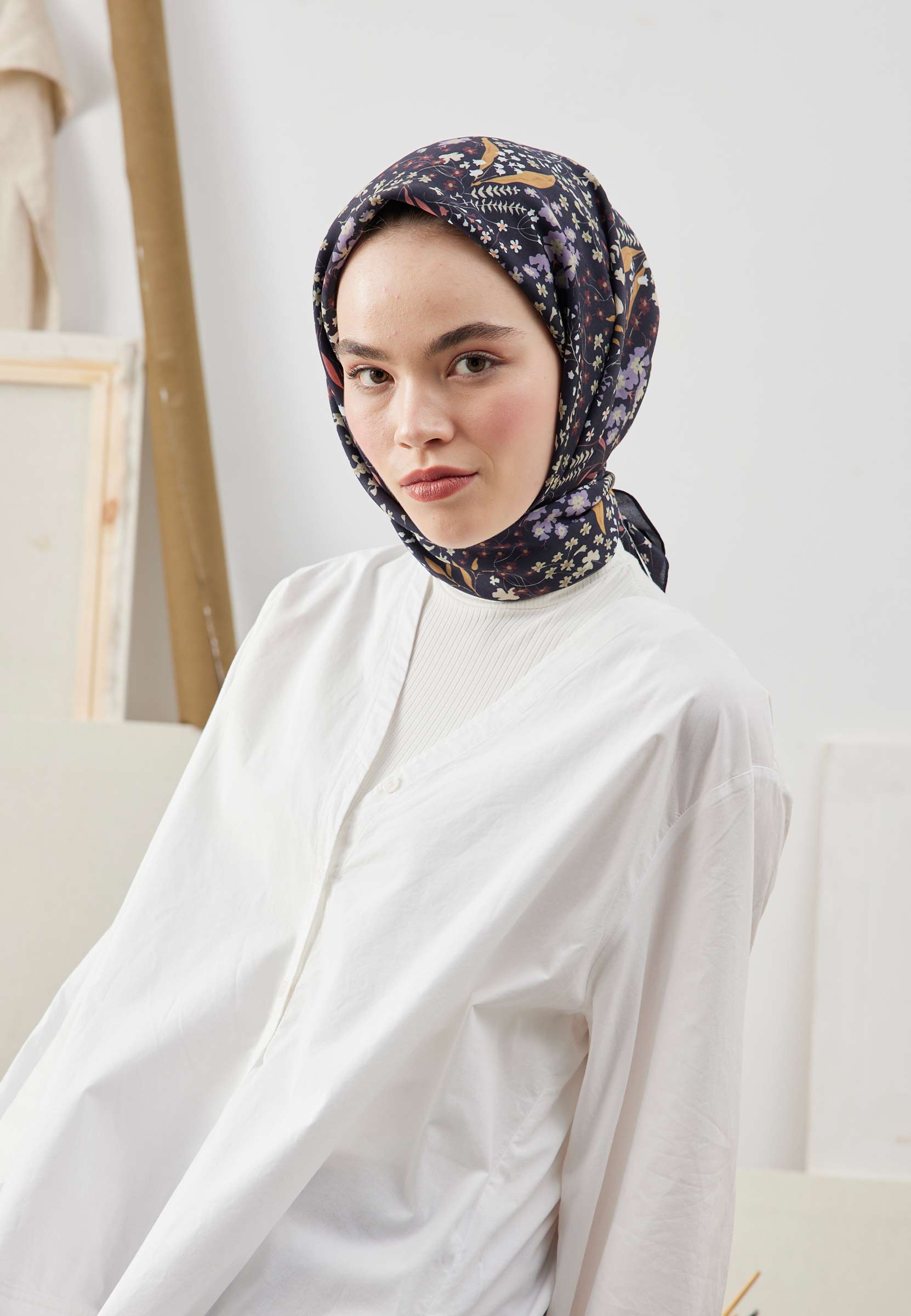TINY GARDEN DESEN PAMUK İPEK EŞARP SİYAH