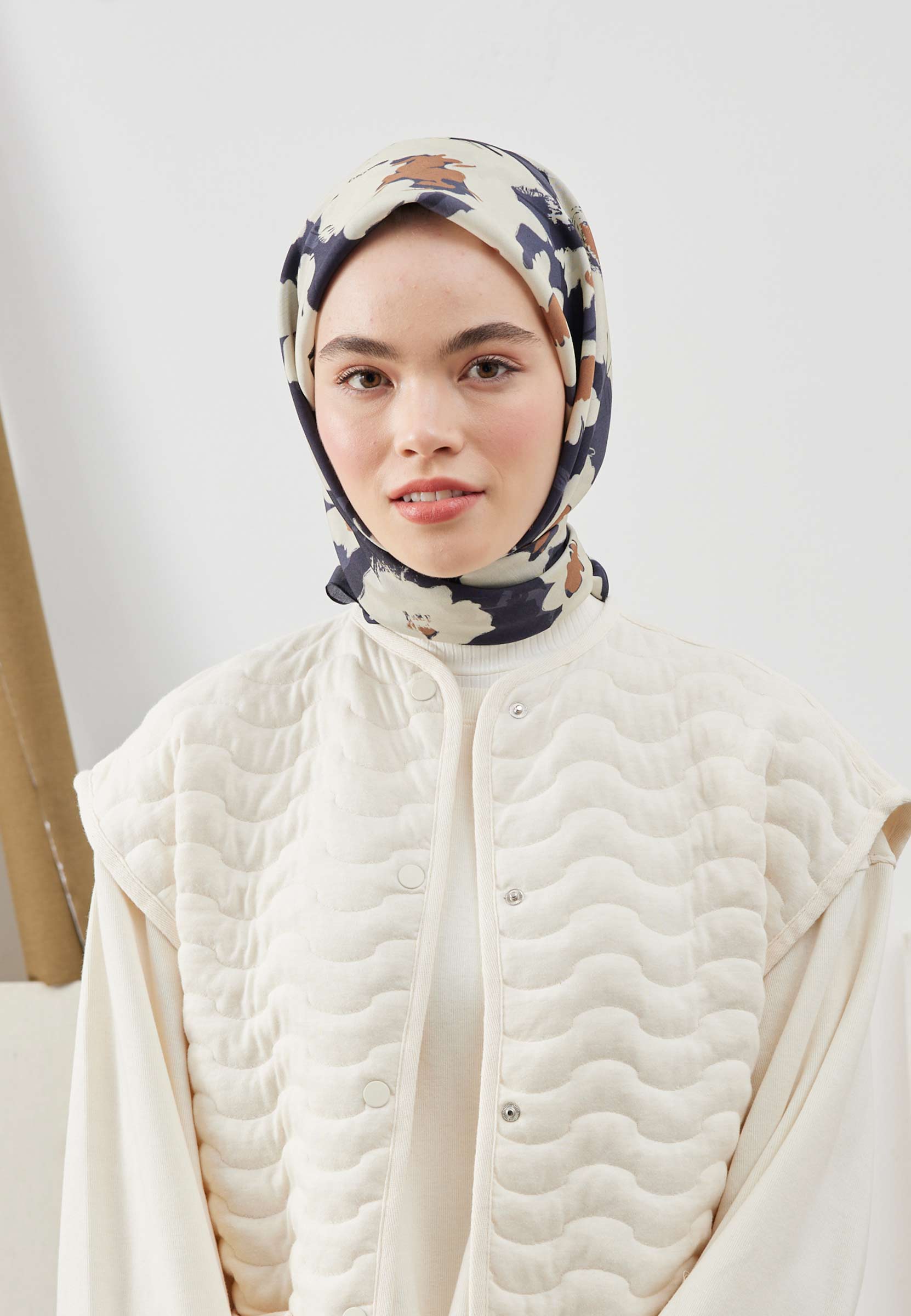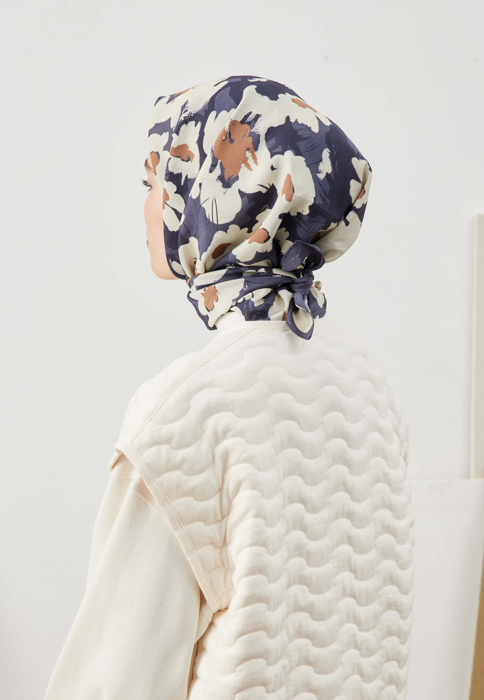 MULTI FLOWER DESEN PAMUK İPEK EŞARP LACİVERT