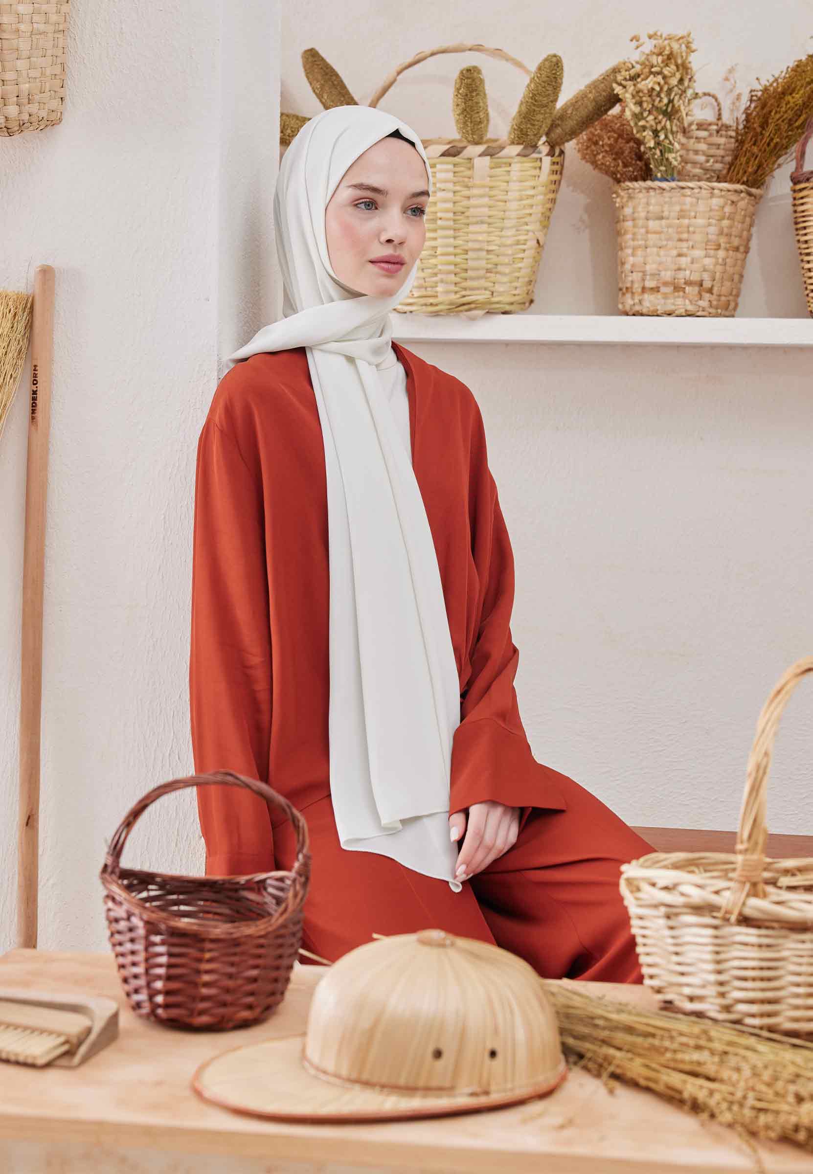 Kumaş türü Medine İpeğidir. Her mevsim kullanabileceğiniz Medine ipeği başörtümüz ütü gerektirmez. Hem özel günlerinizde hem de günlük hayatınızda kurtarıcınız olacaklar.