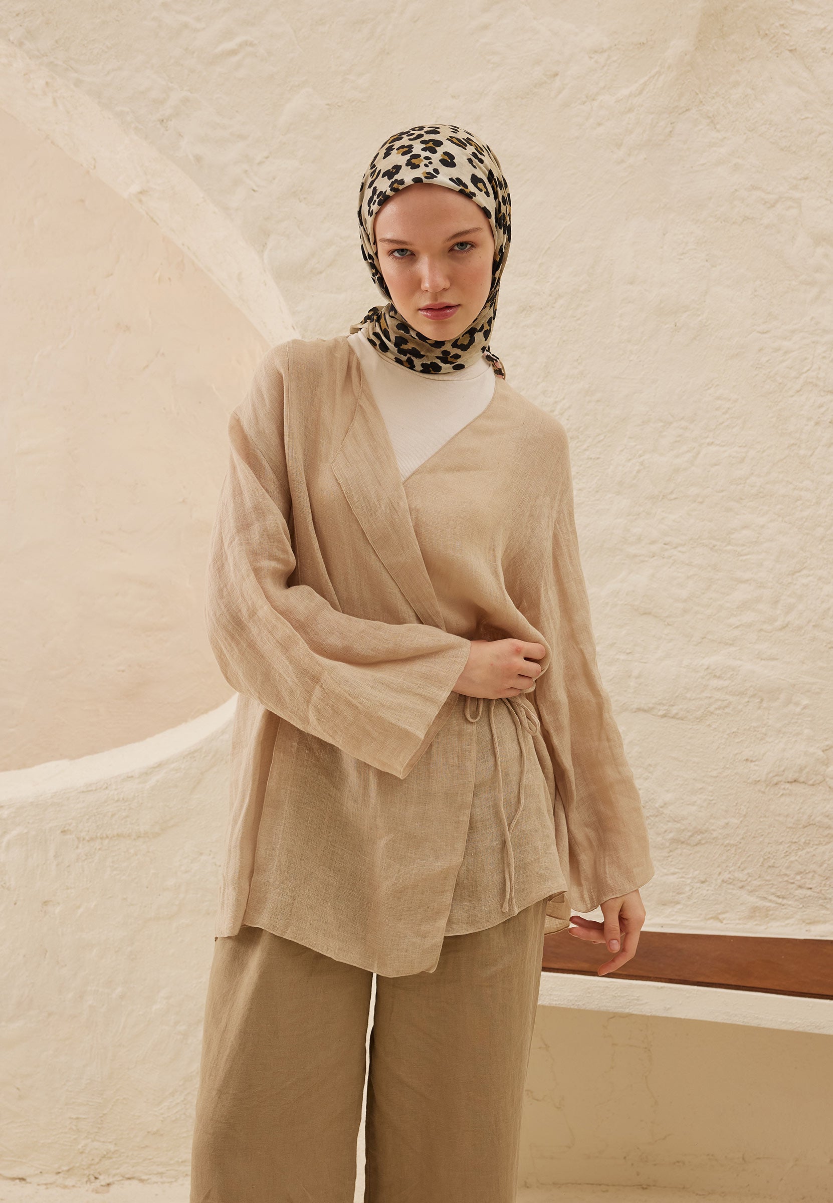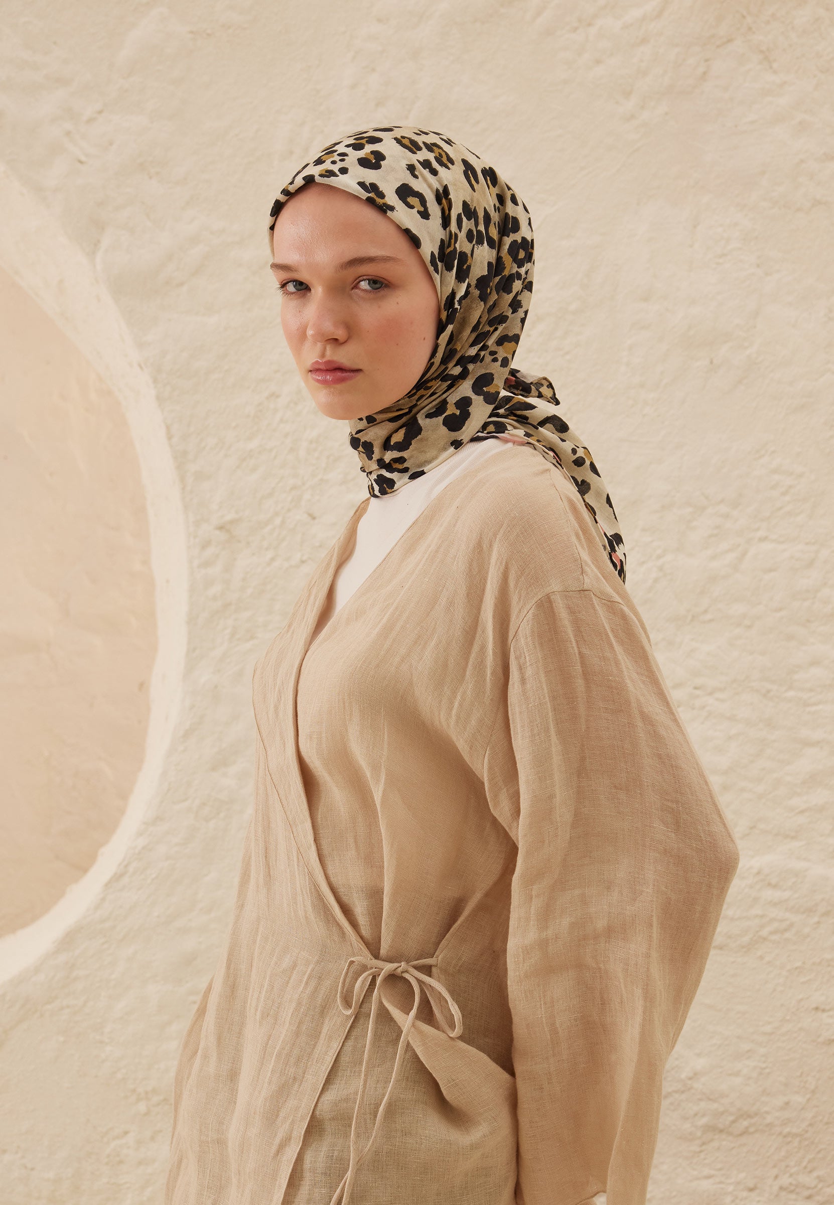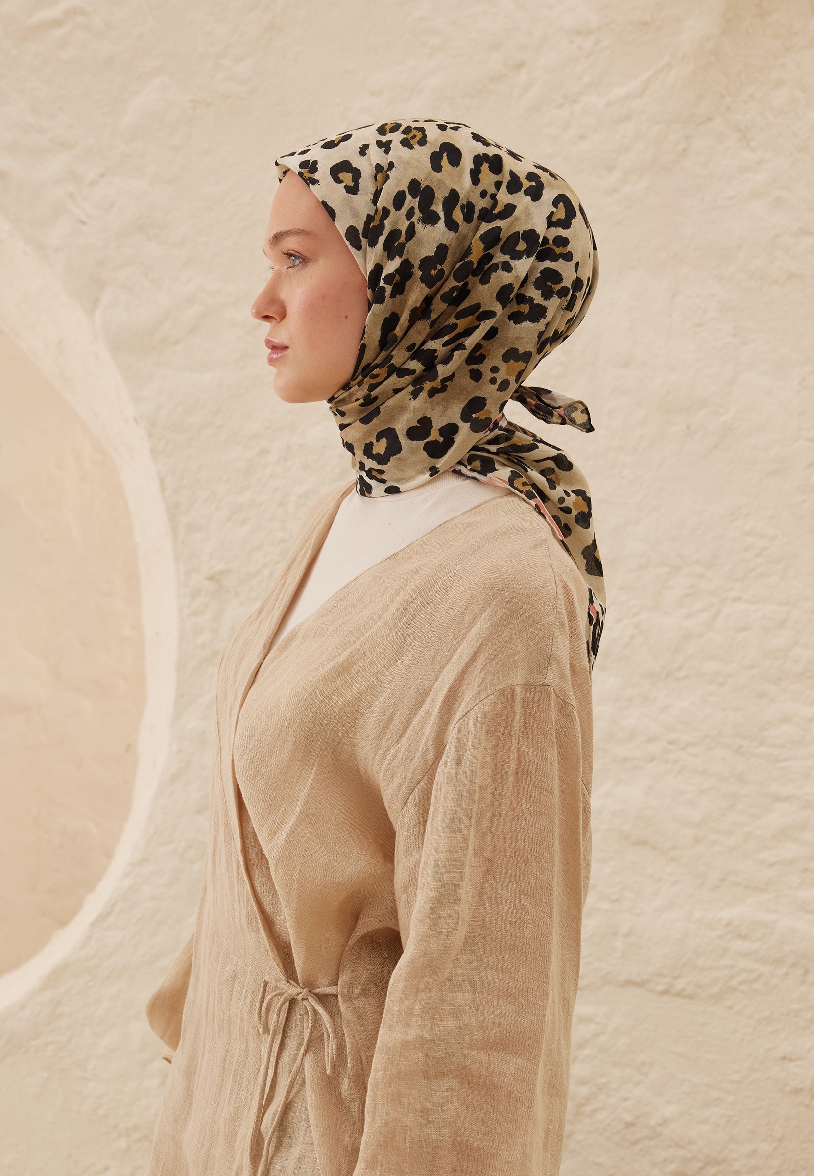 LEOPAR DESEN PAMUK VUAL EŞARP TOPRAK