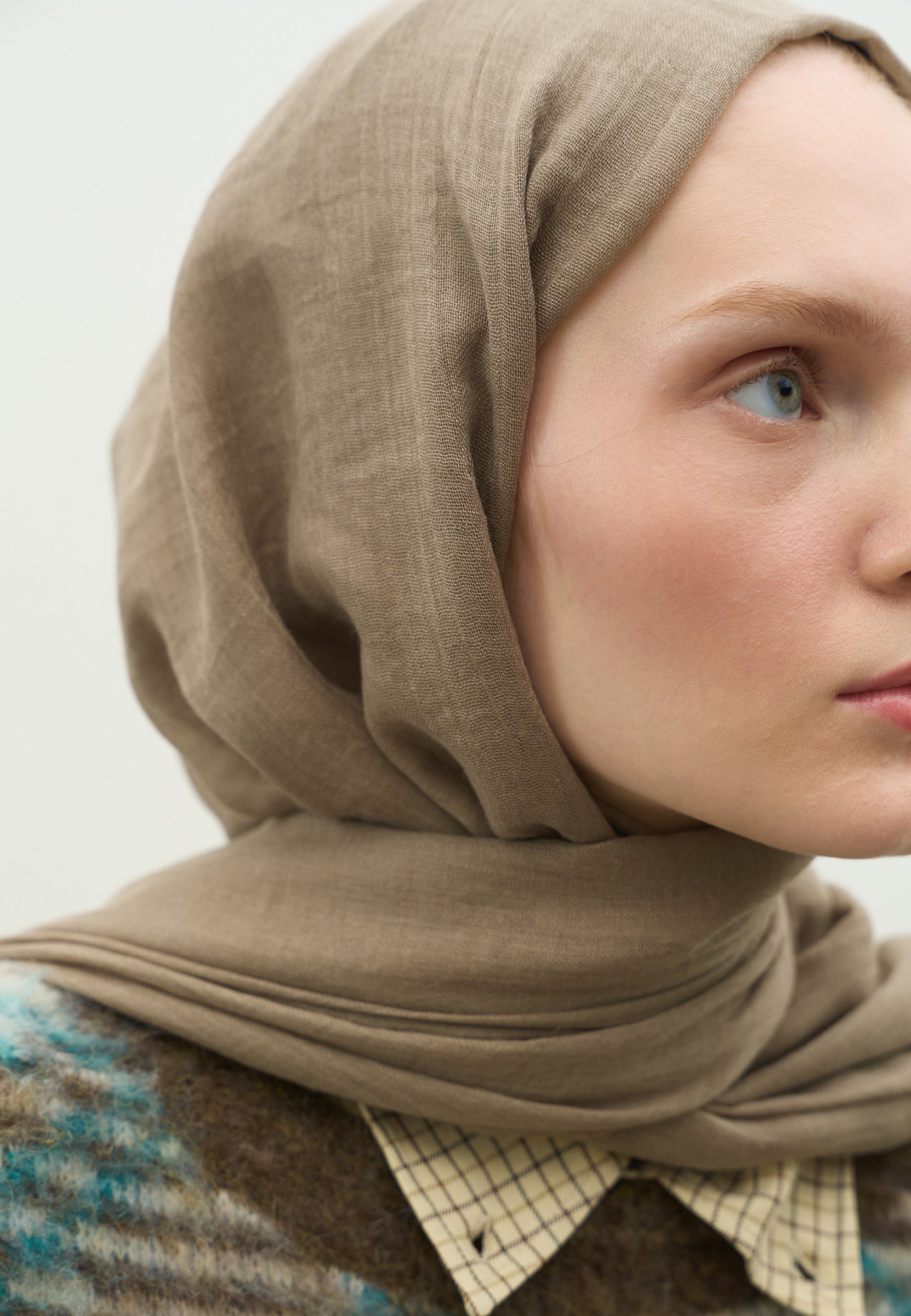 Soft and refined in texture, the Cashmere Touch Hijab offers a sophisticated look that effortlessly complements both modern and classic styles. Inspired by the elegance of pashmina, its gentle surface feels smooth against the skin, while its lightweight yet warming structure makes it suitable for year-round wear. Thanks to its viscose-blend yarns, the shawl maintains its shape throughout the day, providing comfort without flattening or losing volume.