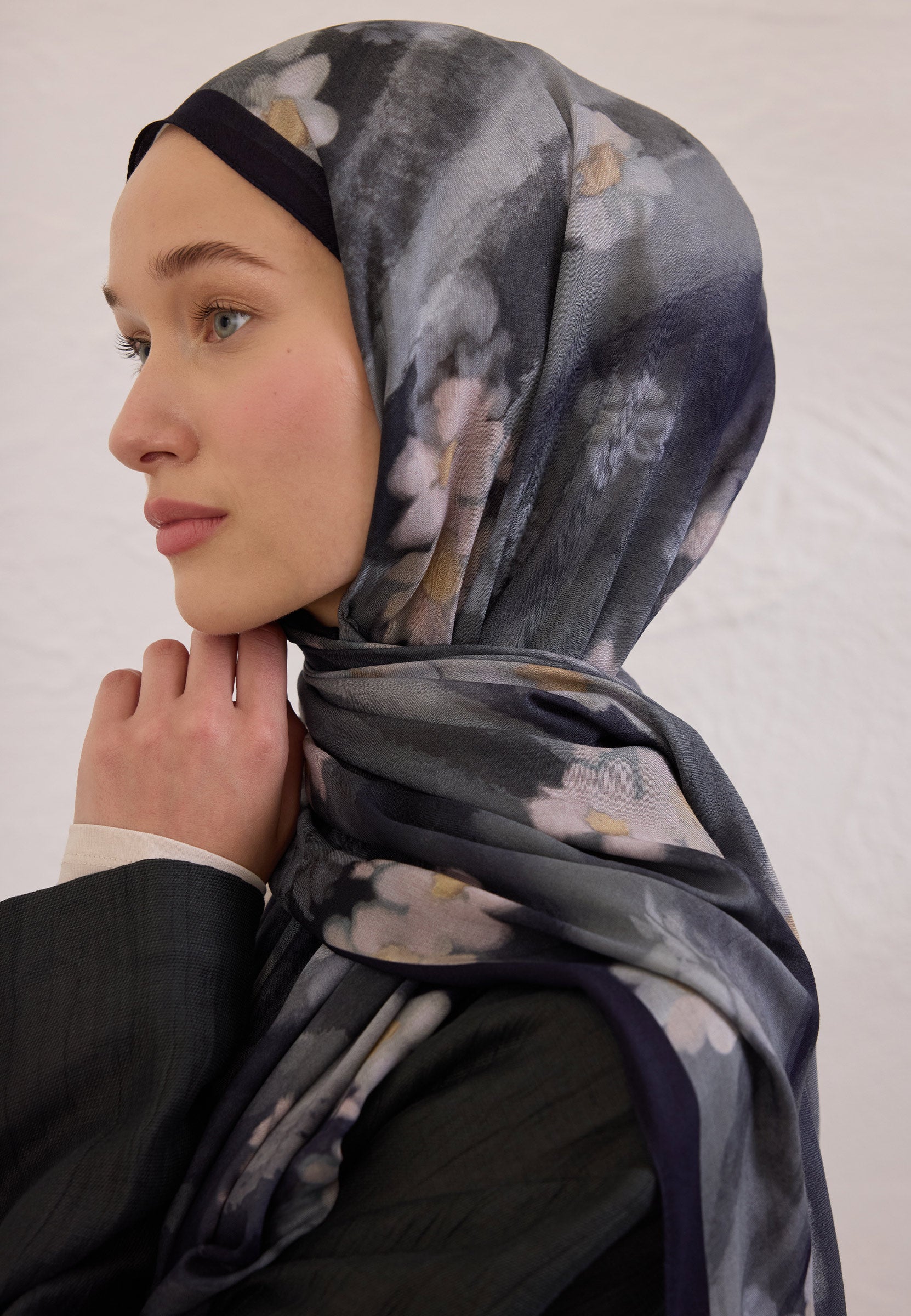 Soft Daisy Patterned Rami Hijab Navy Blue