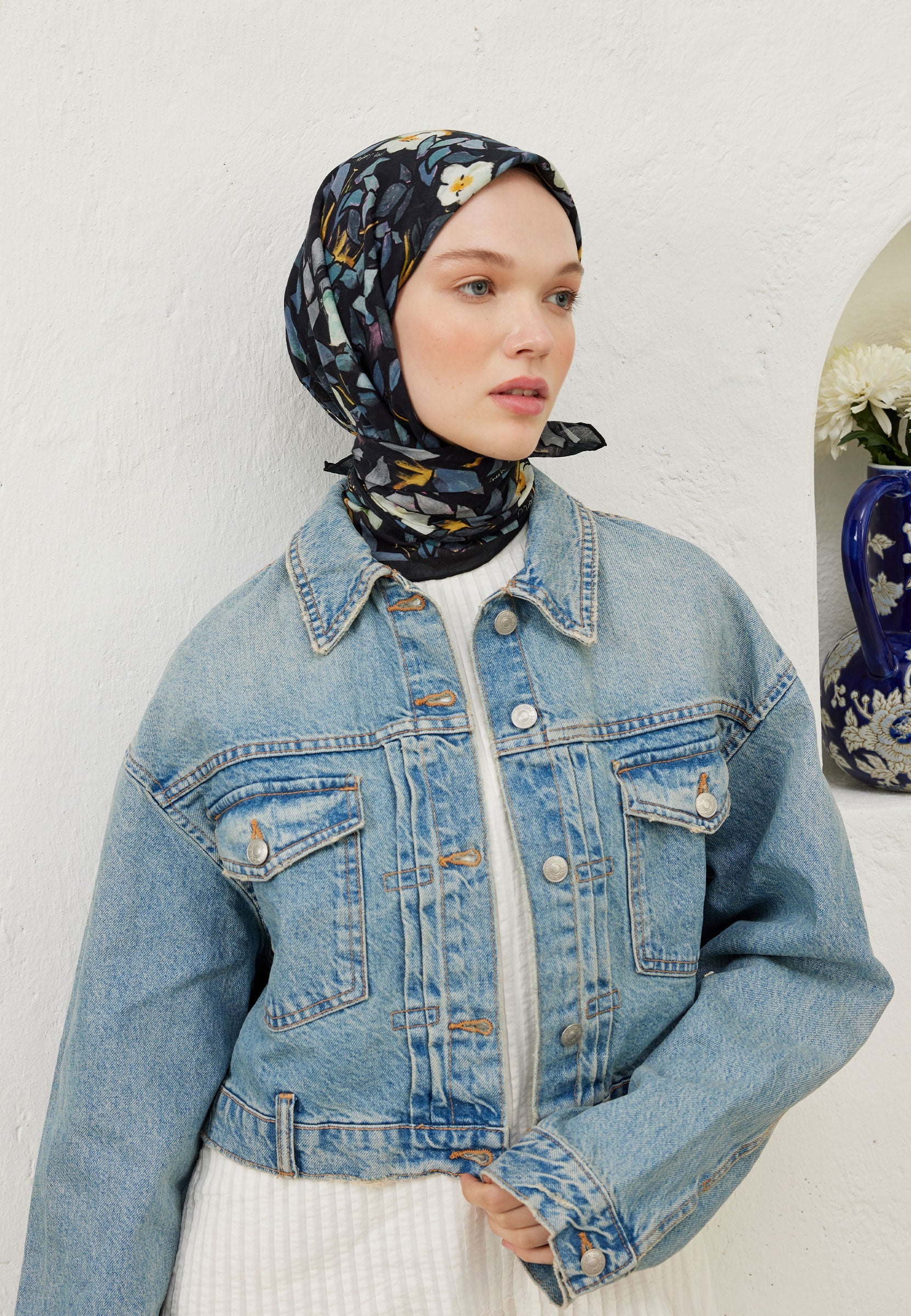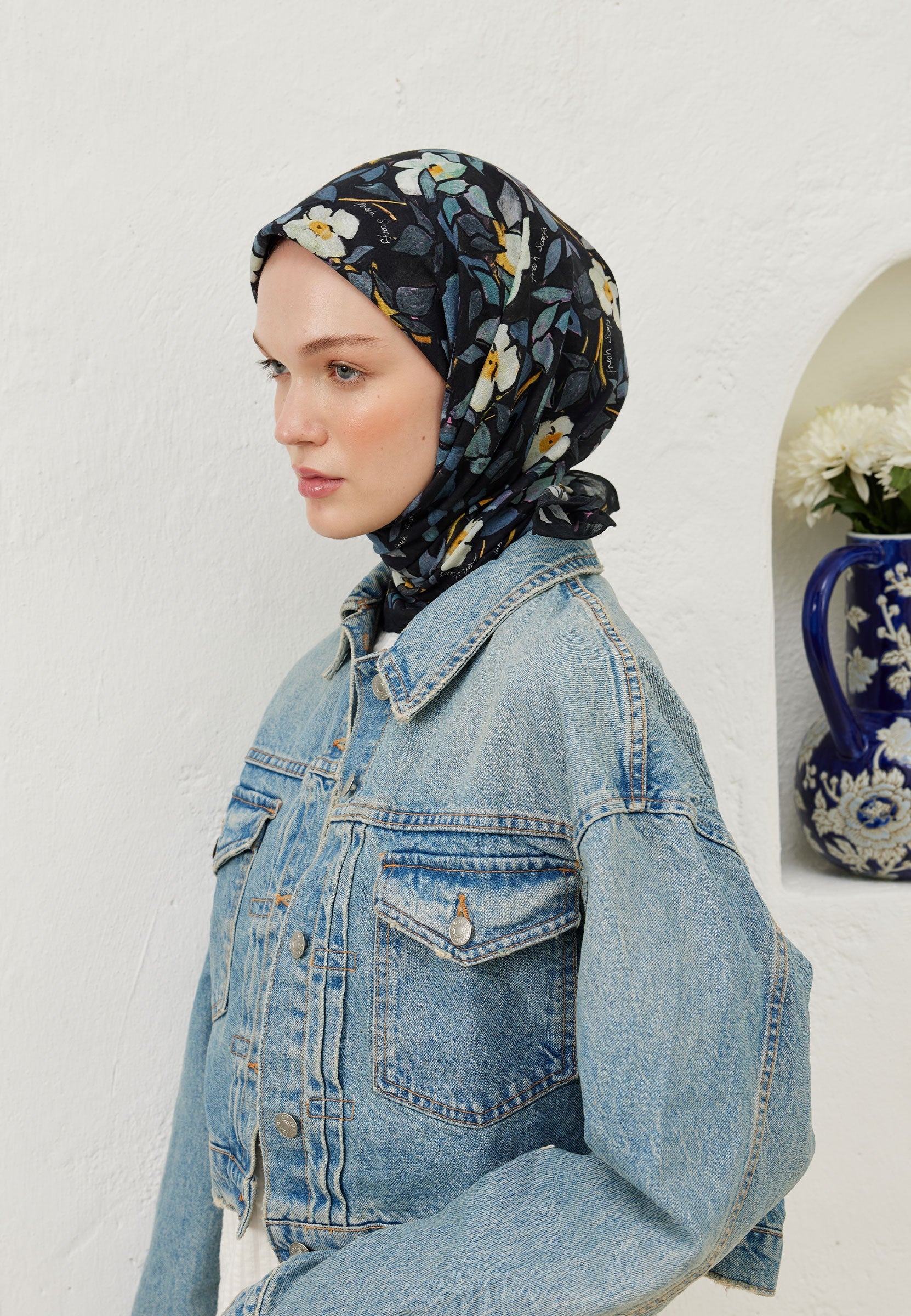 Crafted from 100% breathable cotton voile, this patterned square scarf offers airy comfort without adding weight - perfect for effortless wear in every season.