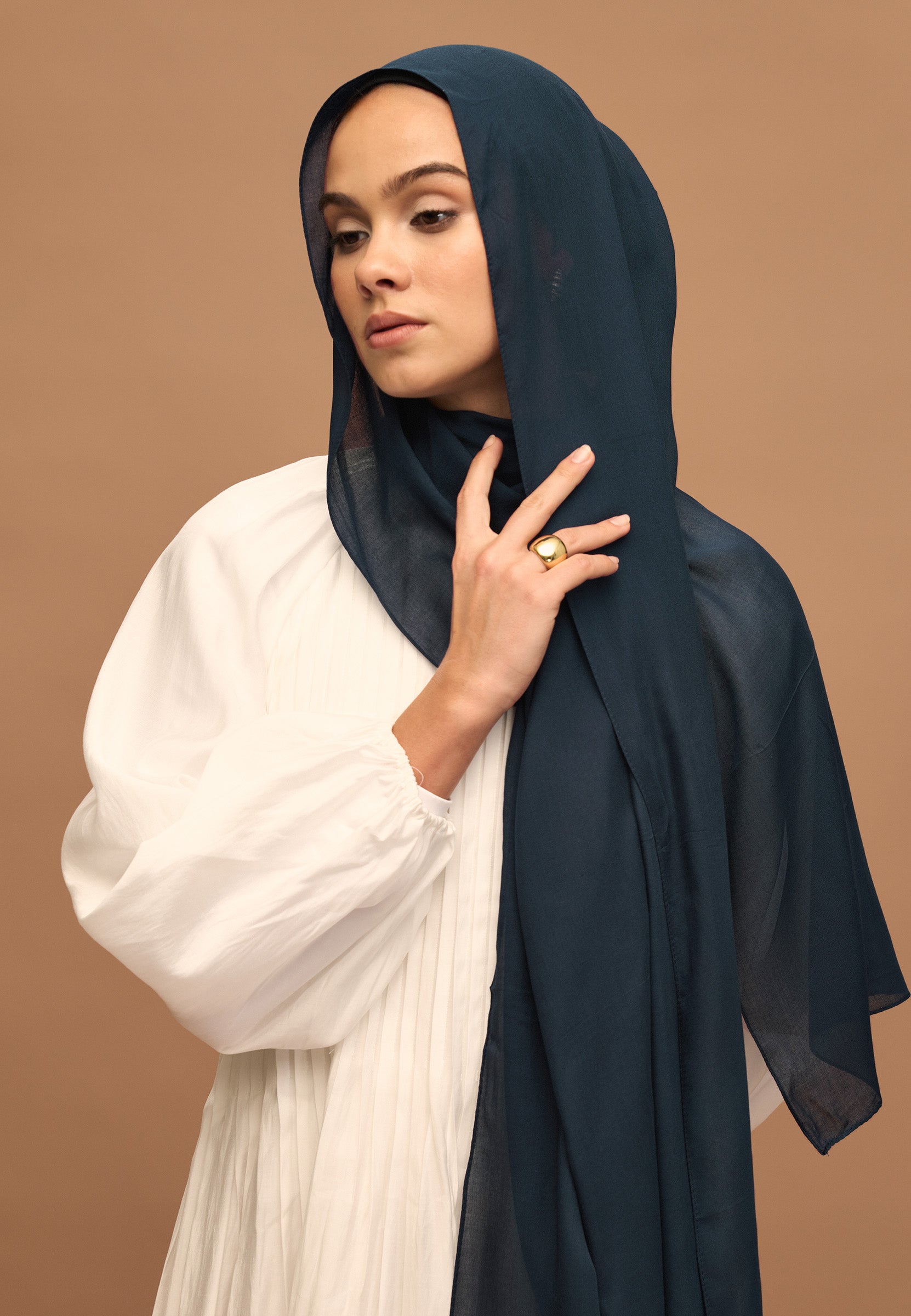 Part of the Rami Hijab Collection, this piece is crafted from a delicate blend of viscose and rami fibers, offering an ultra-lightweight feel - so airy it moves with the breeze.