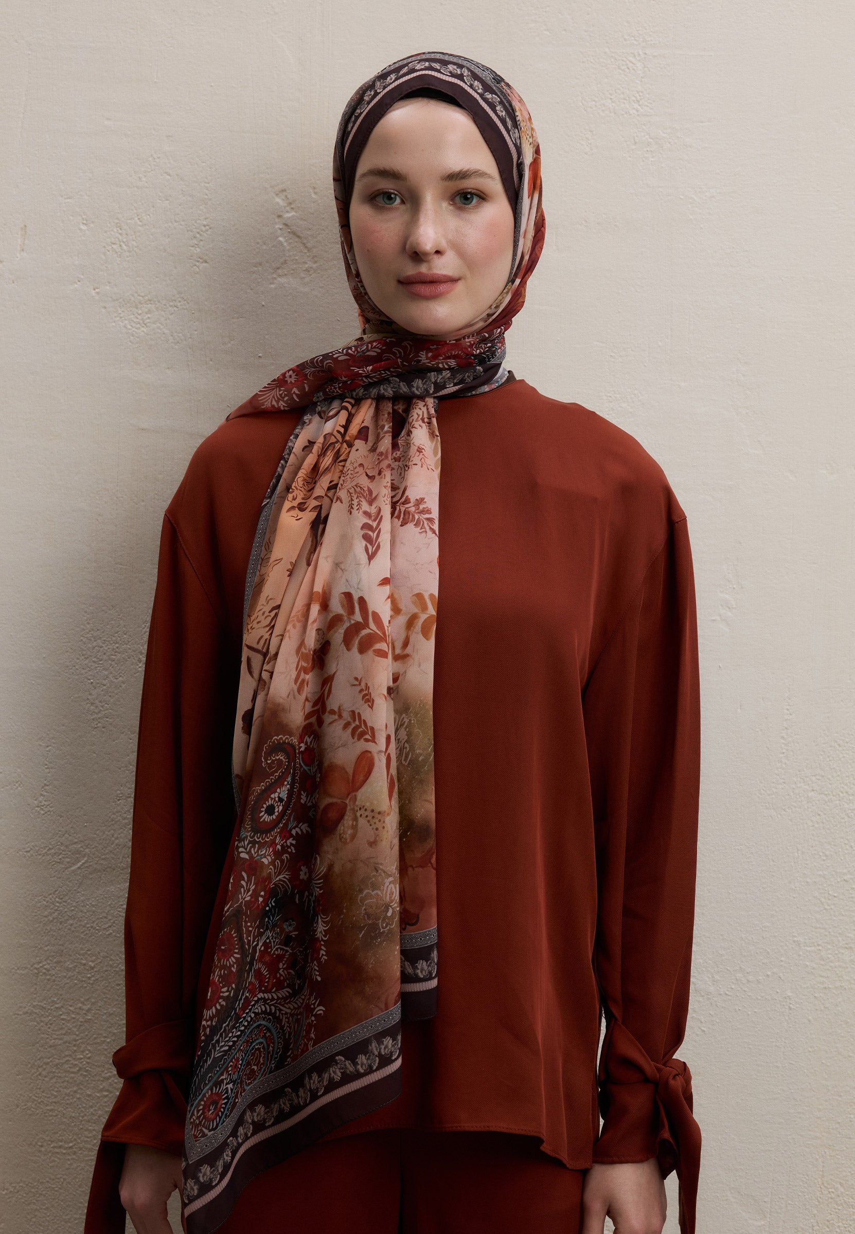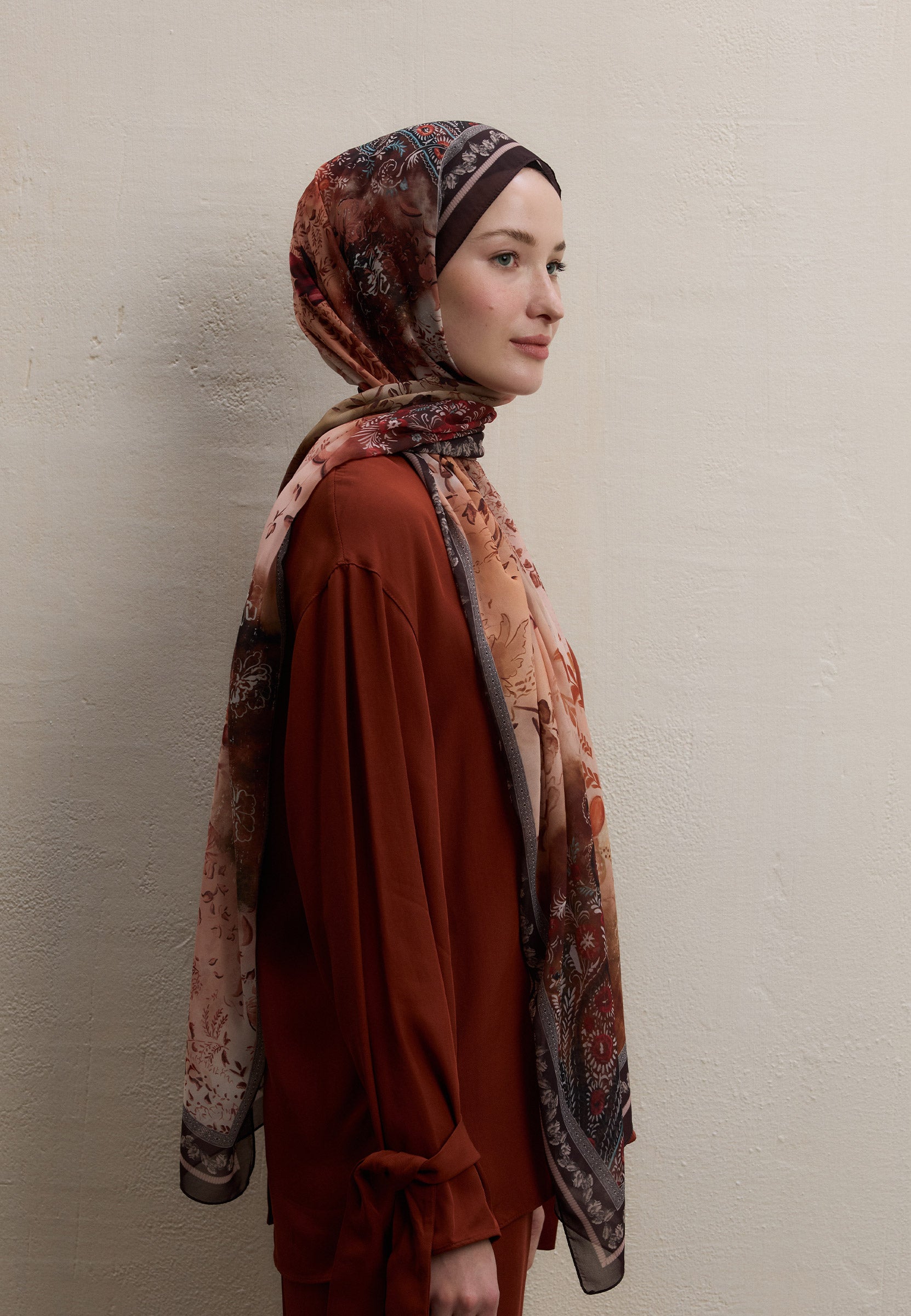 ELLEN DESEN İPEK KREP ŞAL KİREMİT