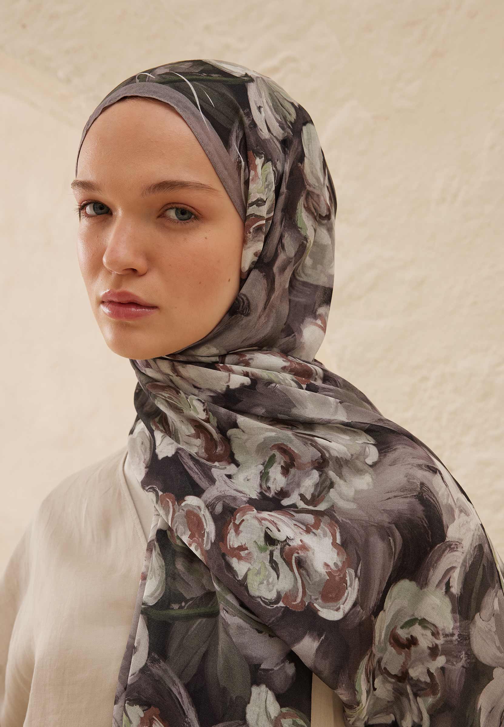 LAVİNİA DESEN RAMİ ŞAL ANTRASİT
