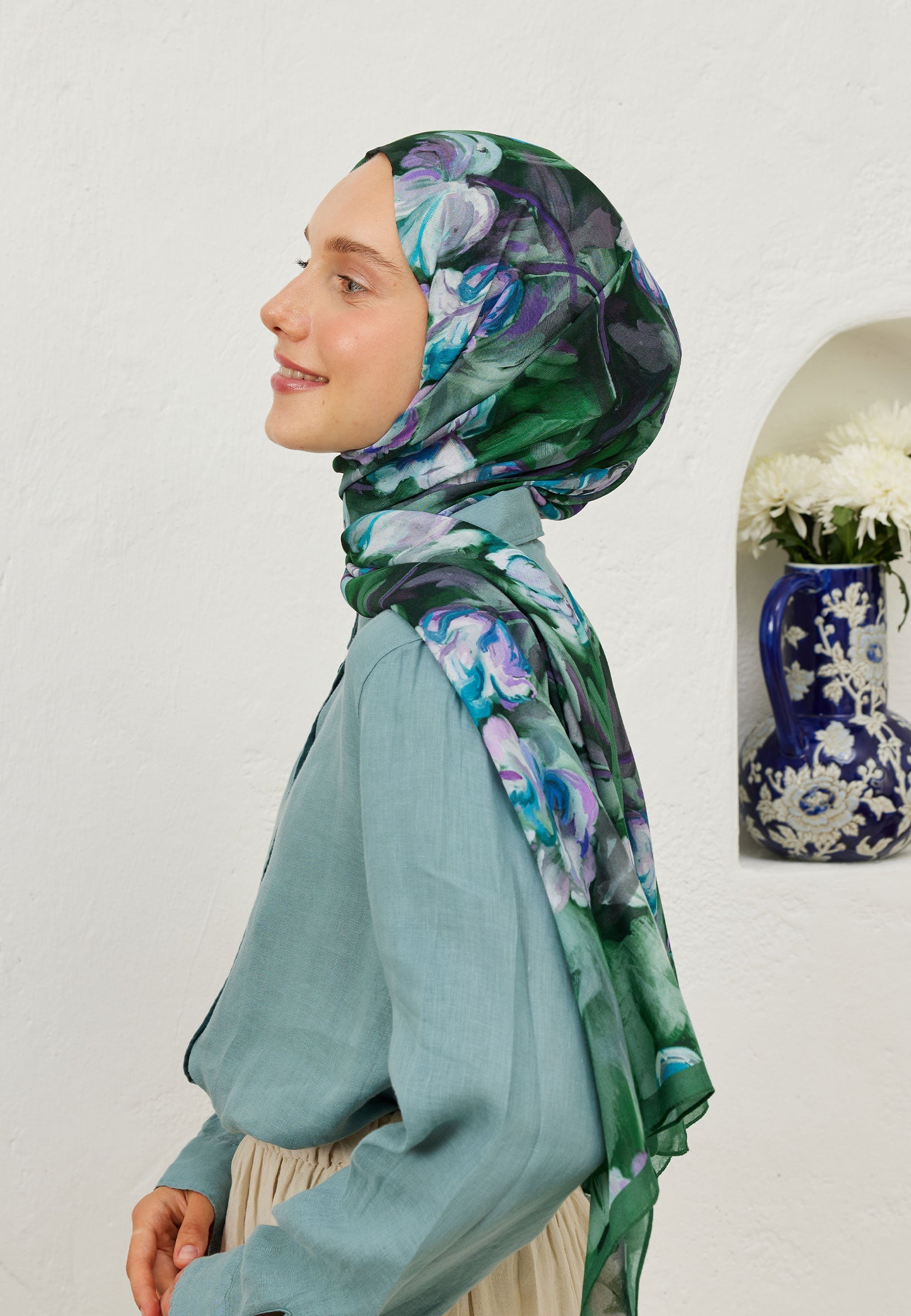 LAVİNİA DESEN RAMİ ŞAL KOYU YEŞİL