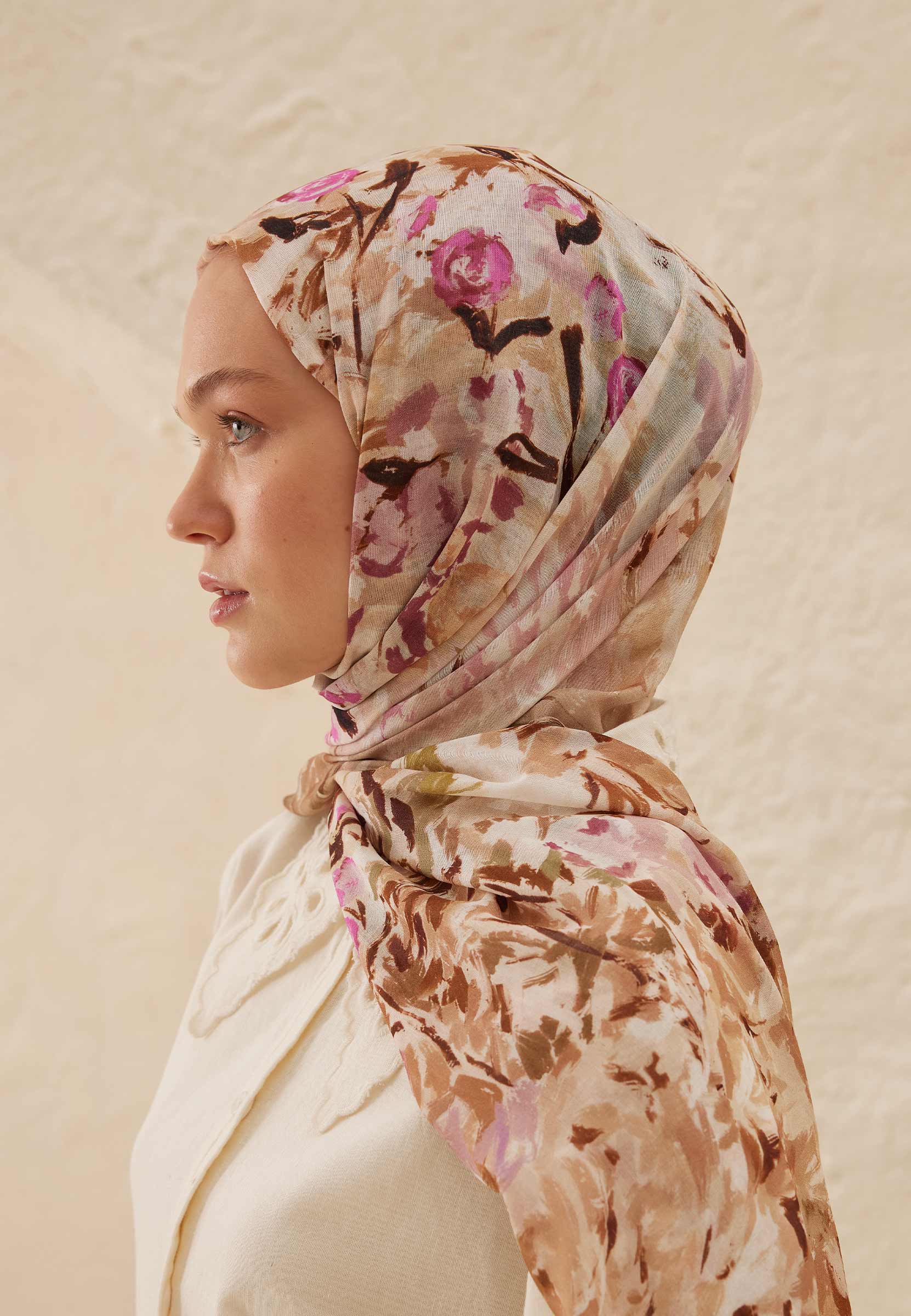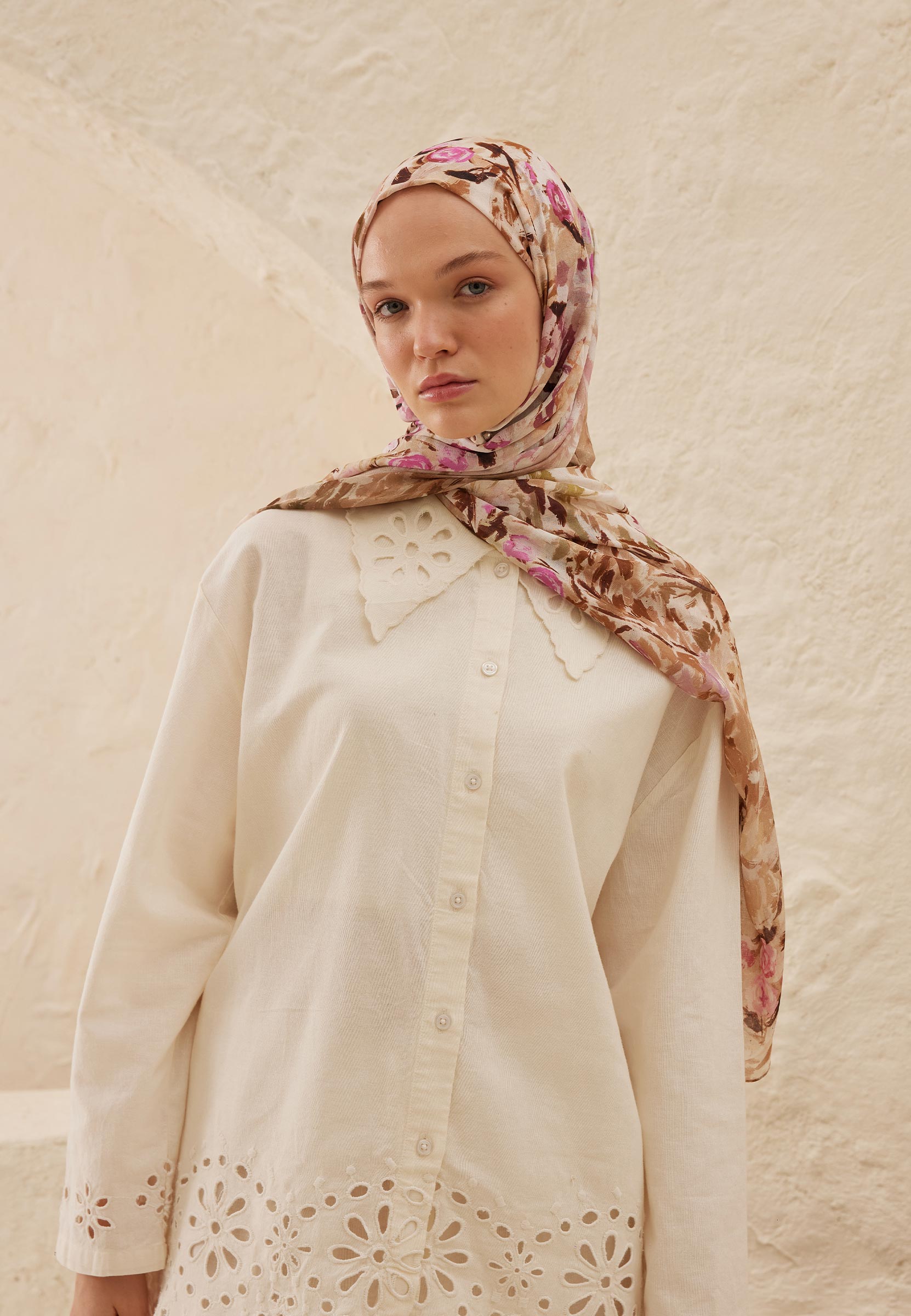 MARGARİT DESEN RAMİ ŞAL SÜTLÜ KAHVE