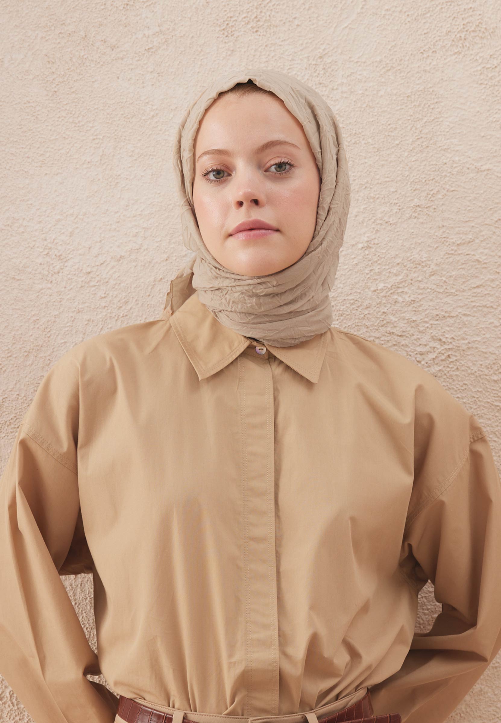 Vual çarpmalı başörtülerimiz organik boyalarla boyanmış olup doğal kırışık bir dokuya sahiptir.
