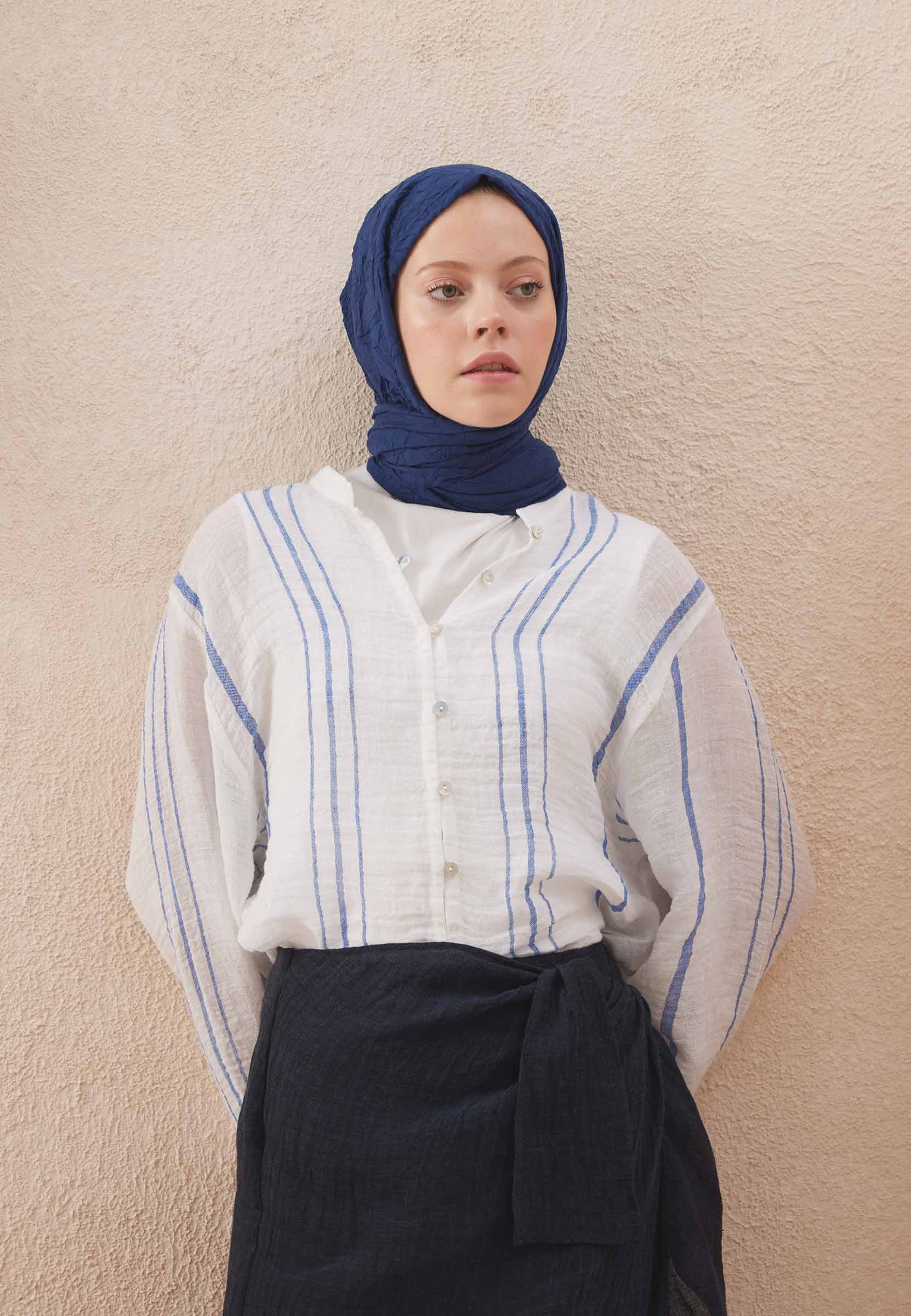 Vual çarpmalı başörtülerimiz organik boyalarla boyanmış olup doğal kırışık bir dokuya sahiptir.