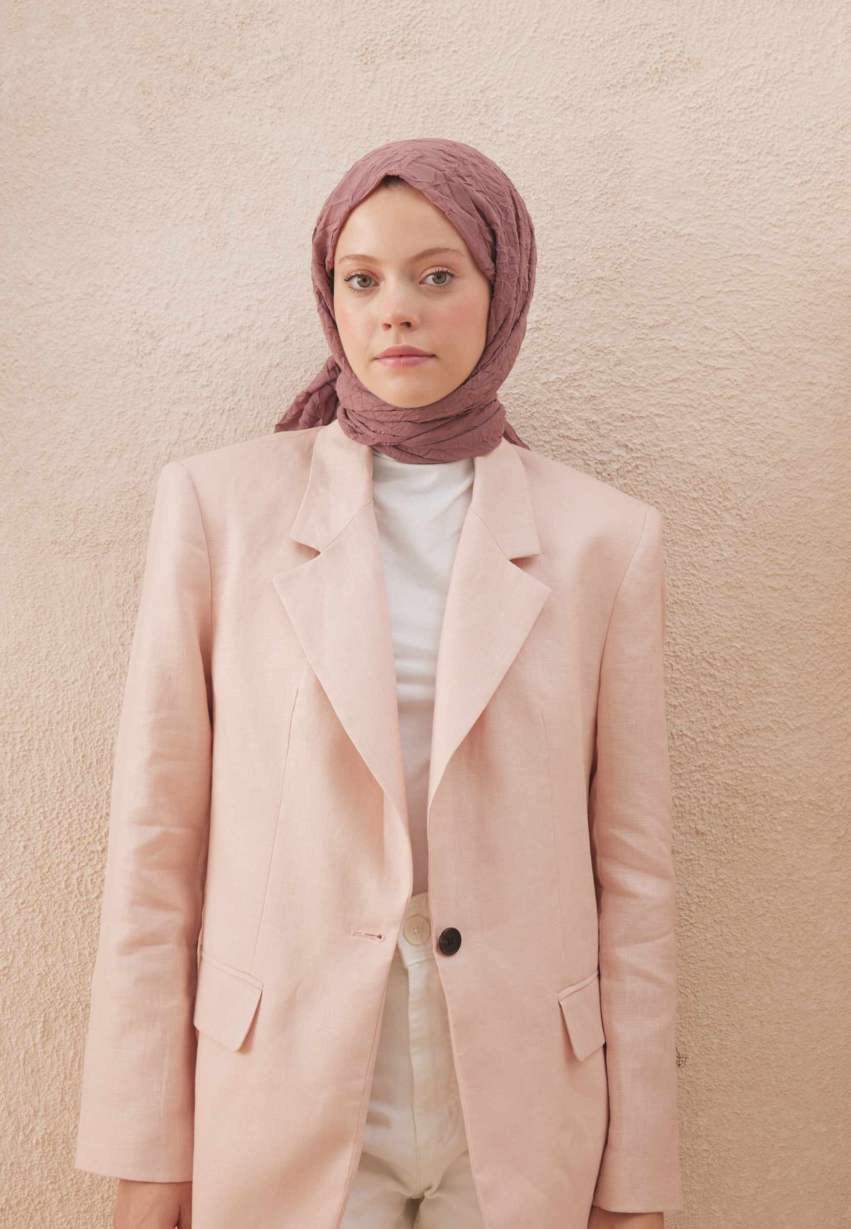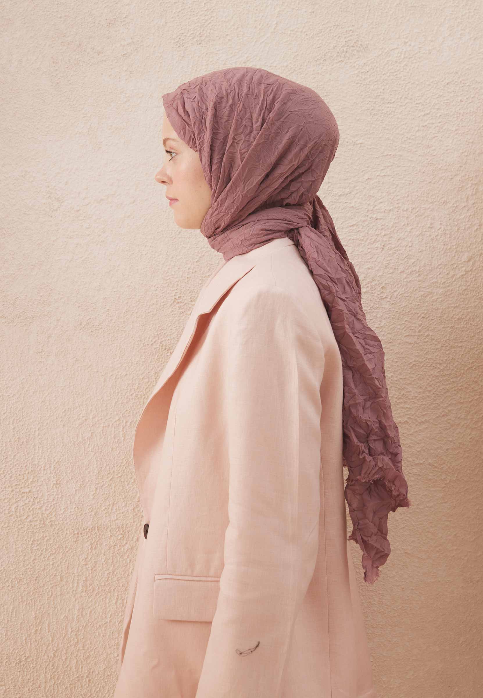 Vual çarpmalı başörtülerimiz organik boyalarla boyanmış olup doğal kırışık bir dokuya sahiptir.