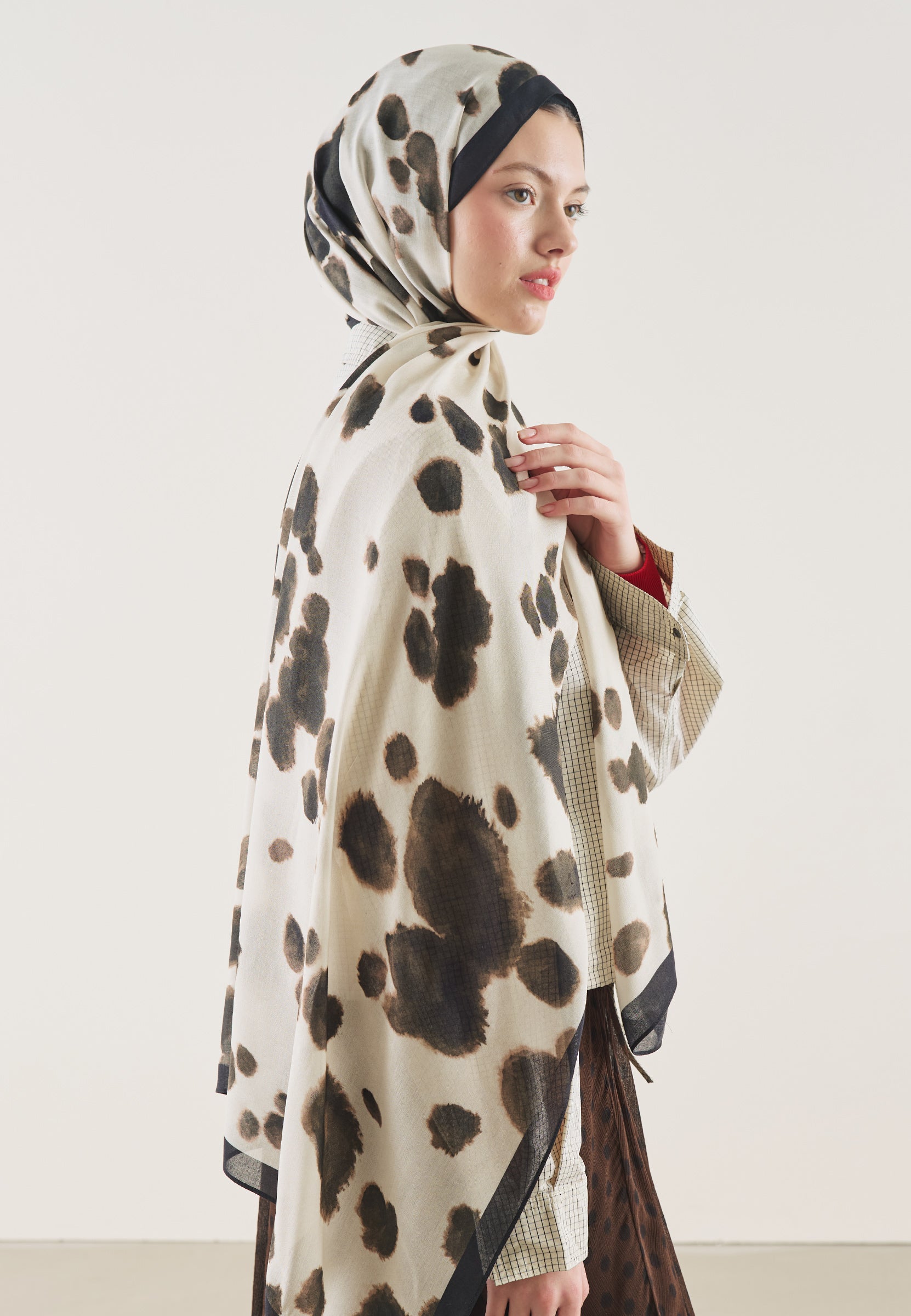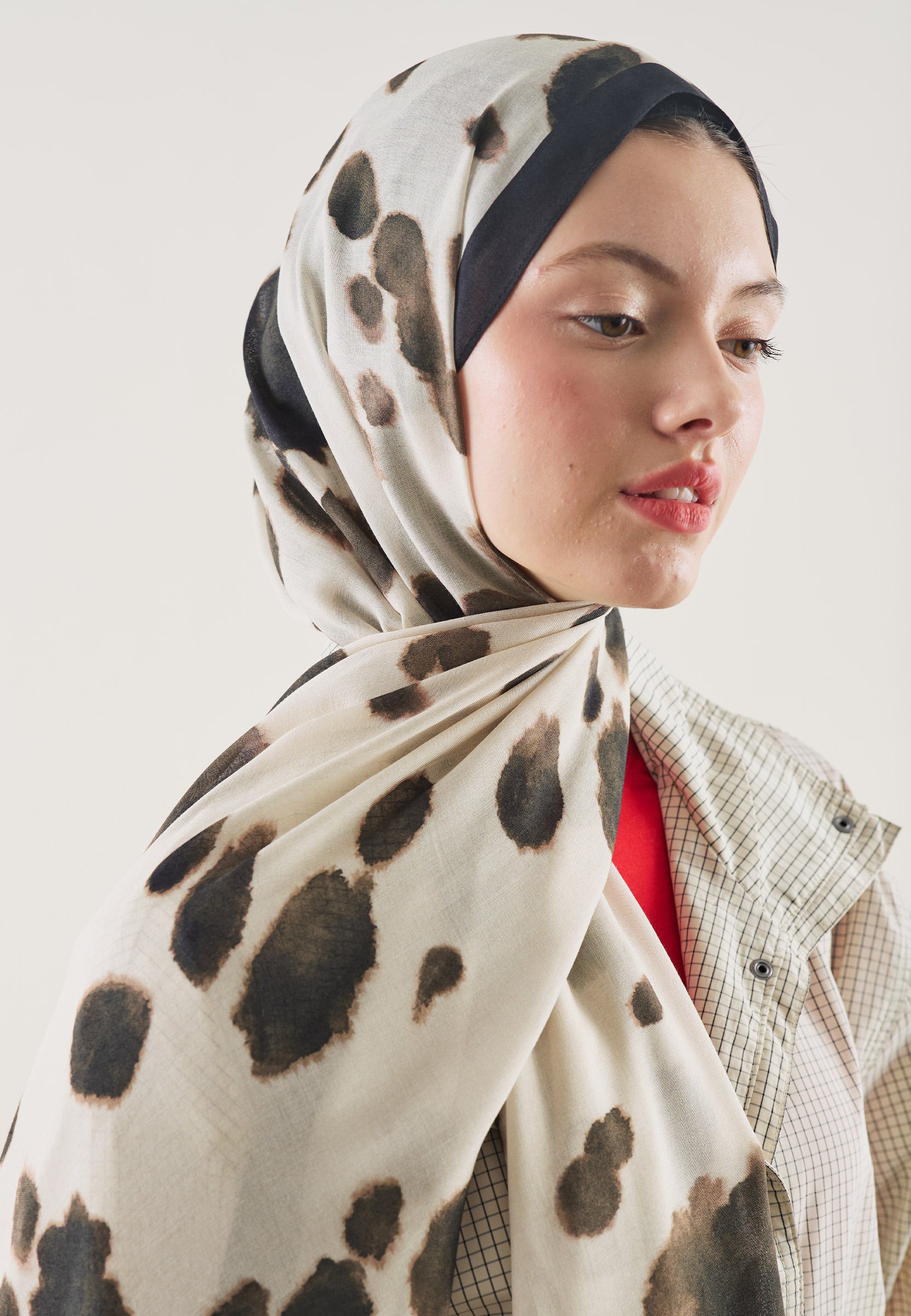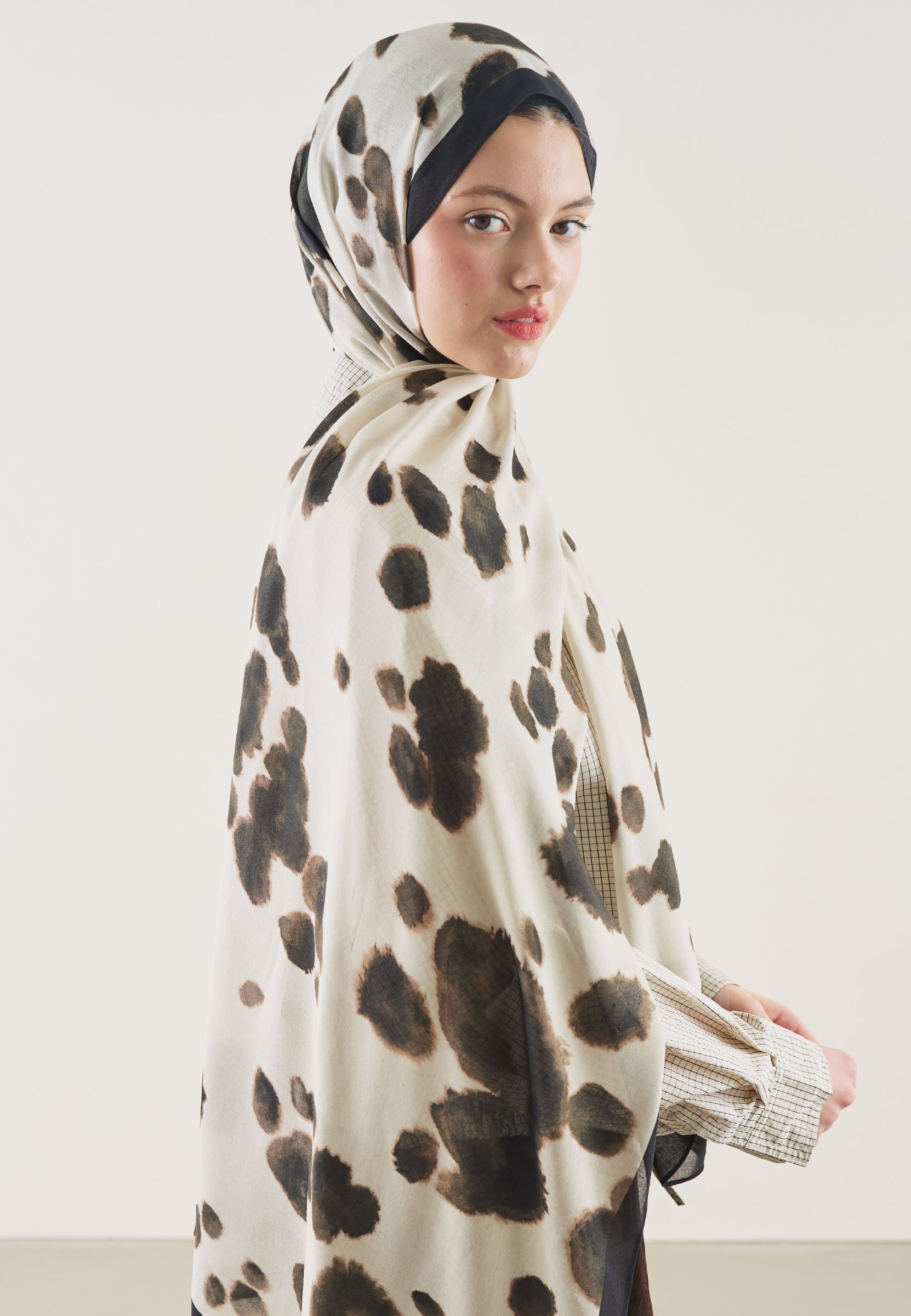 Cow Pattern Rami Hijab Beige