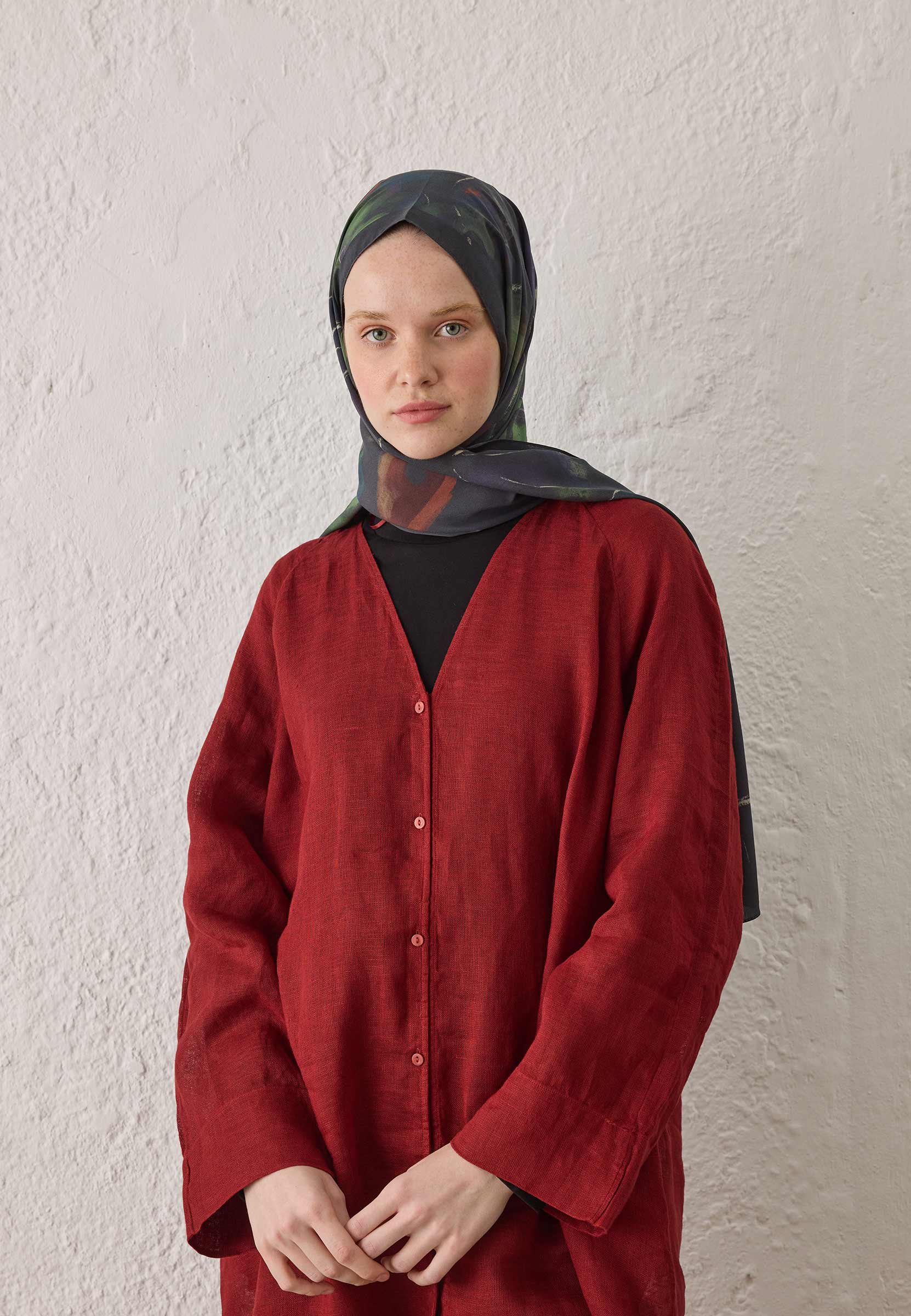 İpeksi modal kumaştan üretilmiştir, her mevsime uygundur. Akışkan ve hafif bir dokuya sahiptir.