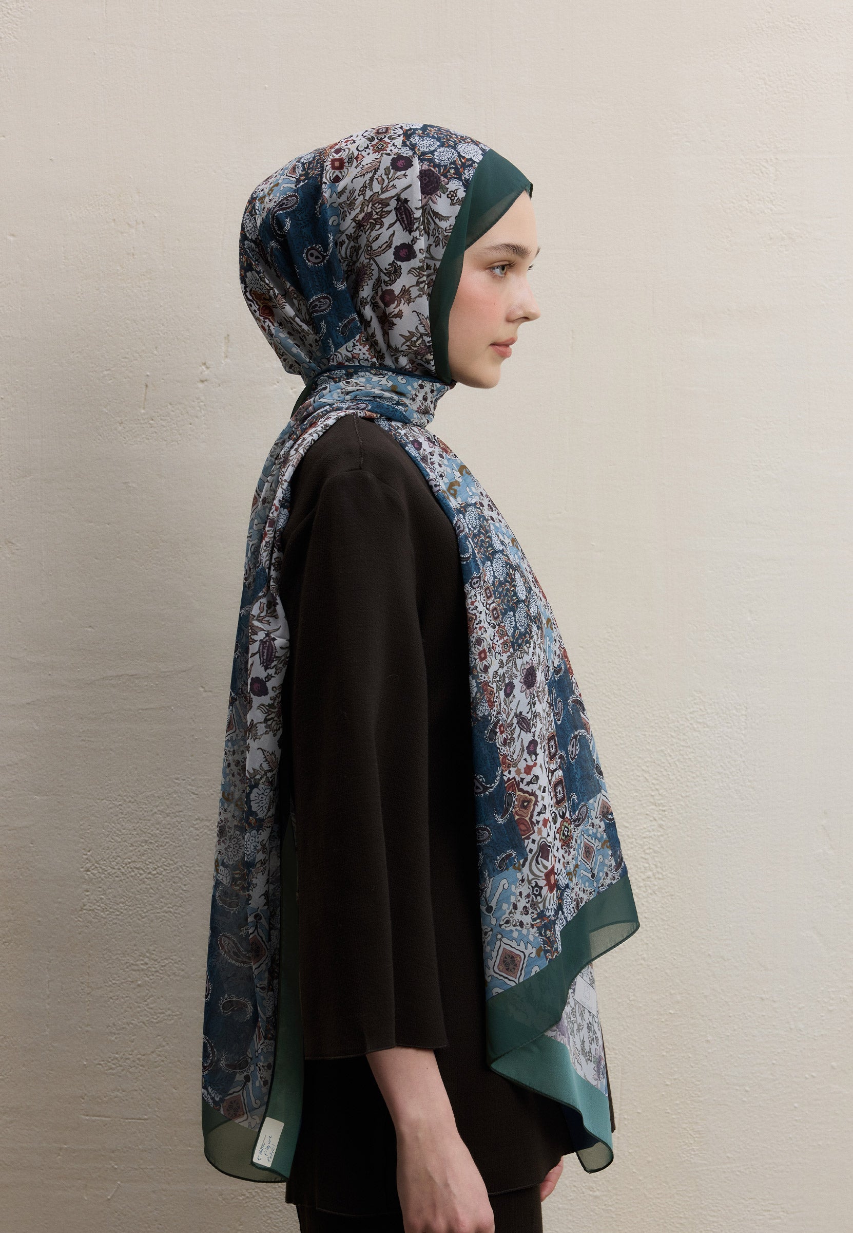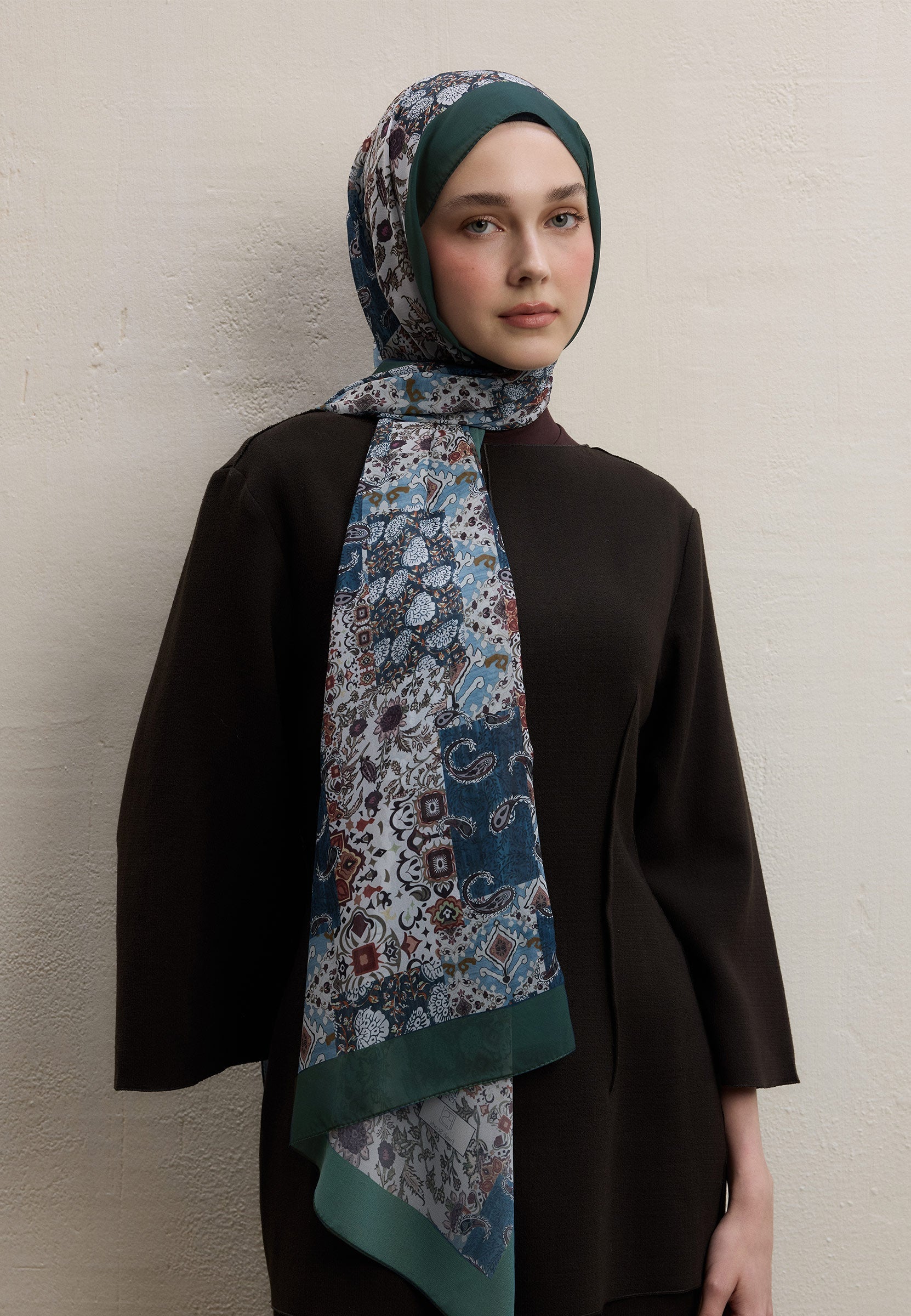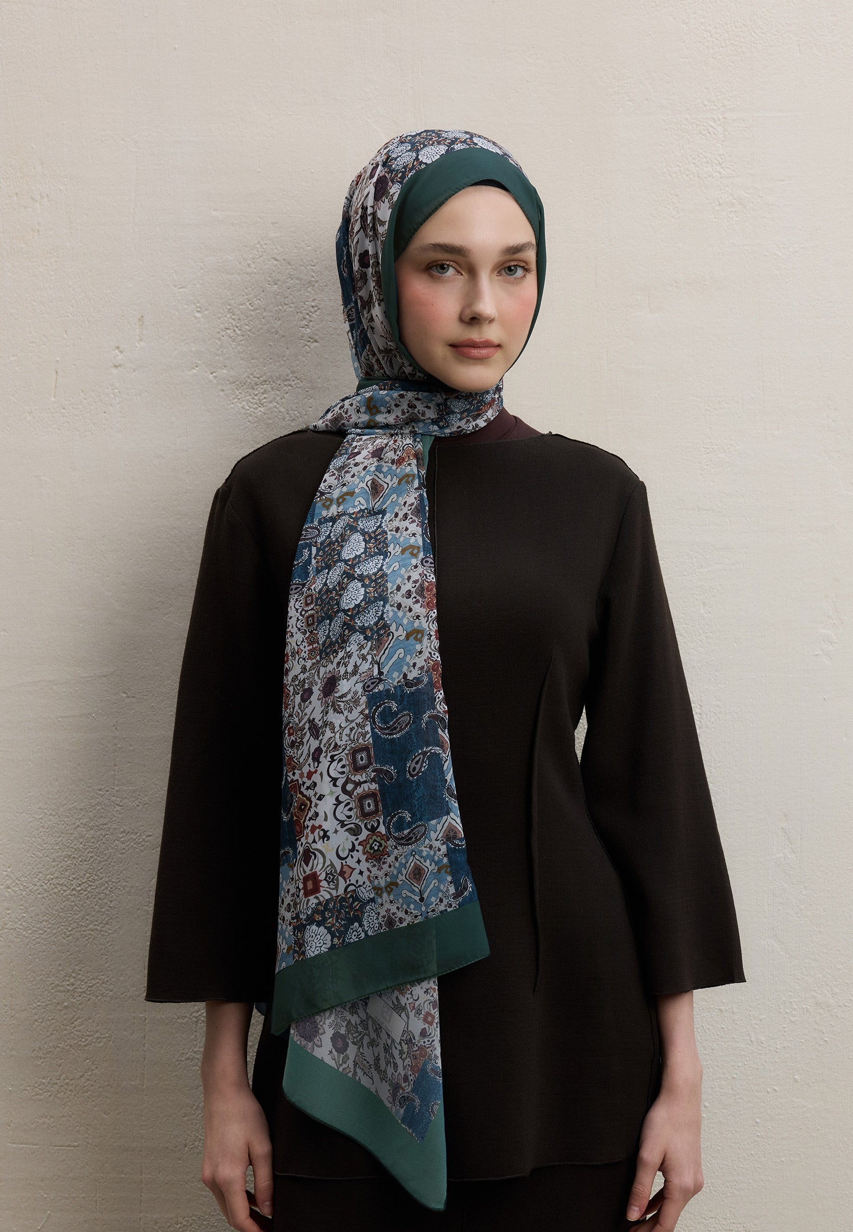 ETHNIC FIGURE DESEN İPEK KREP ŞAL PETROL