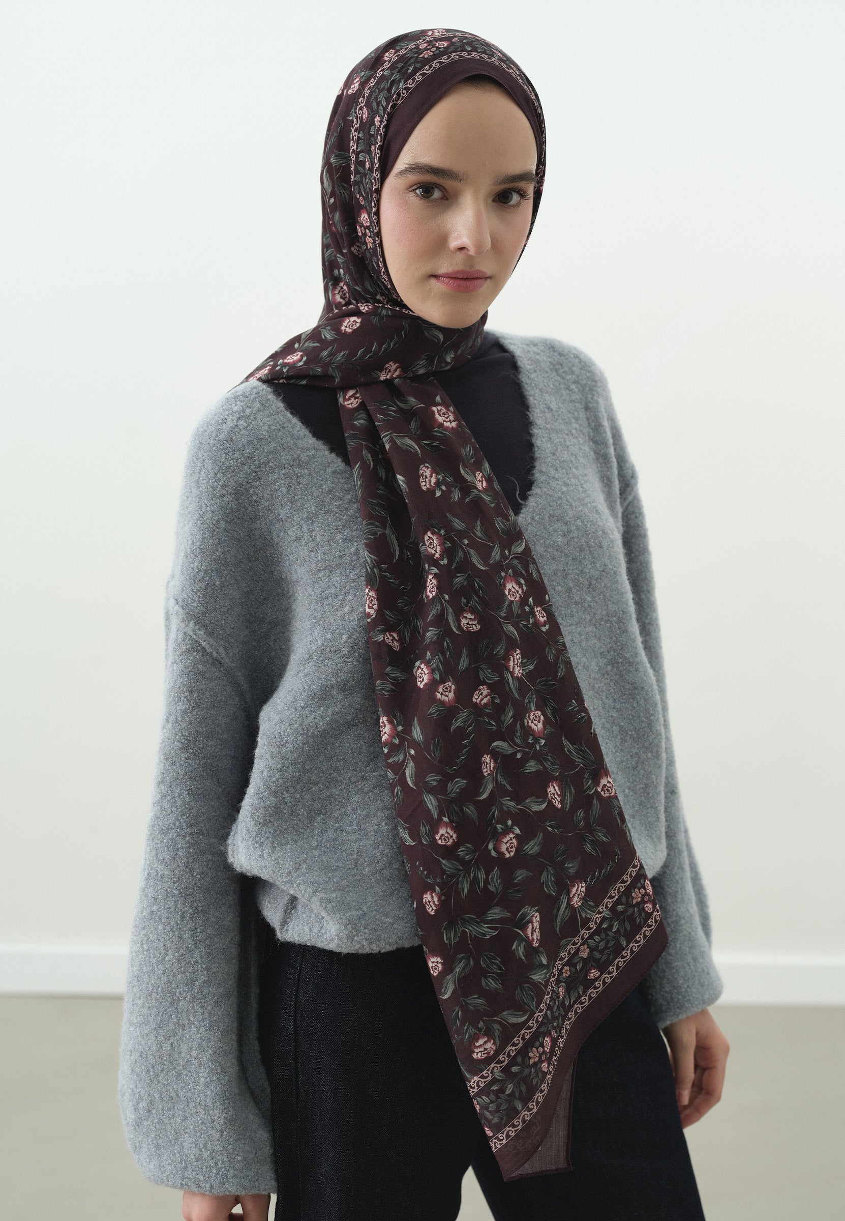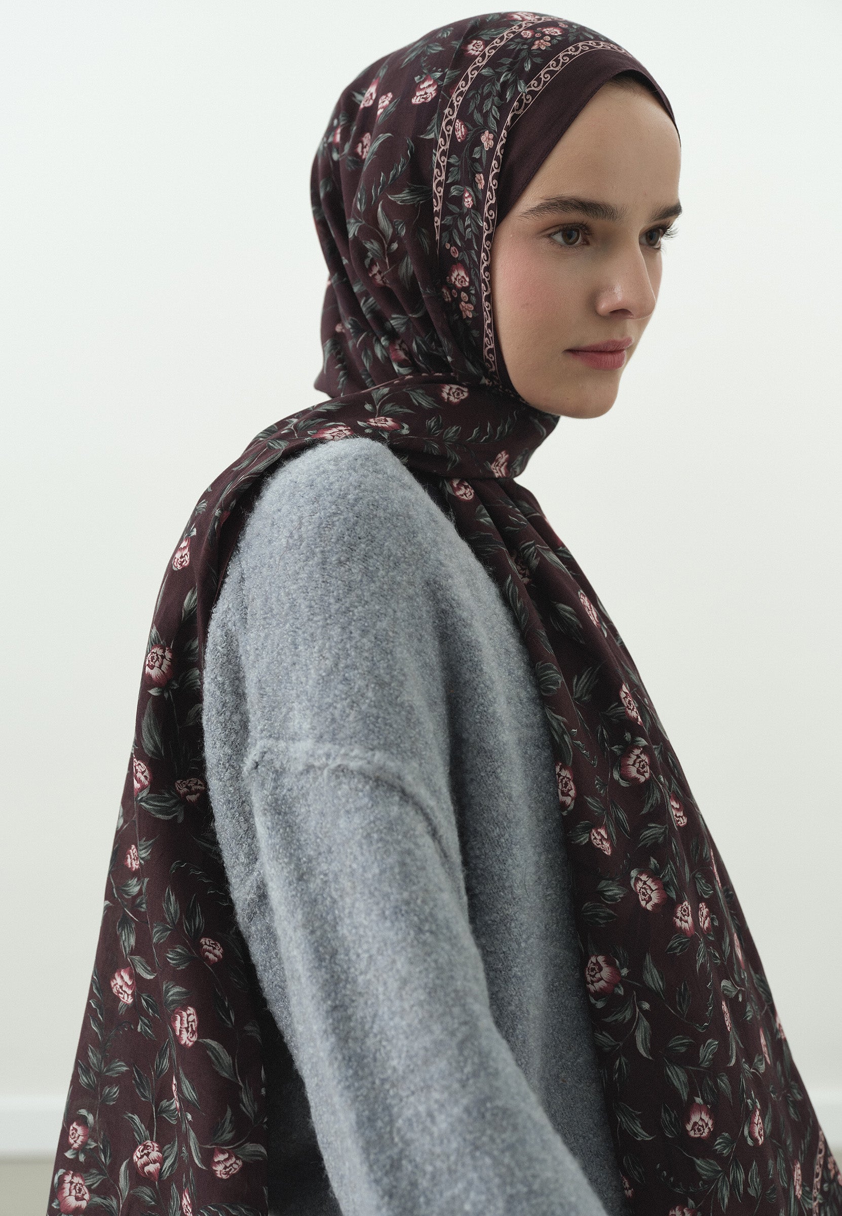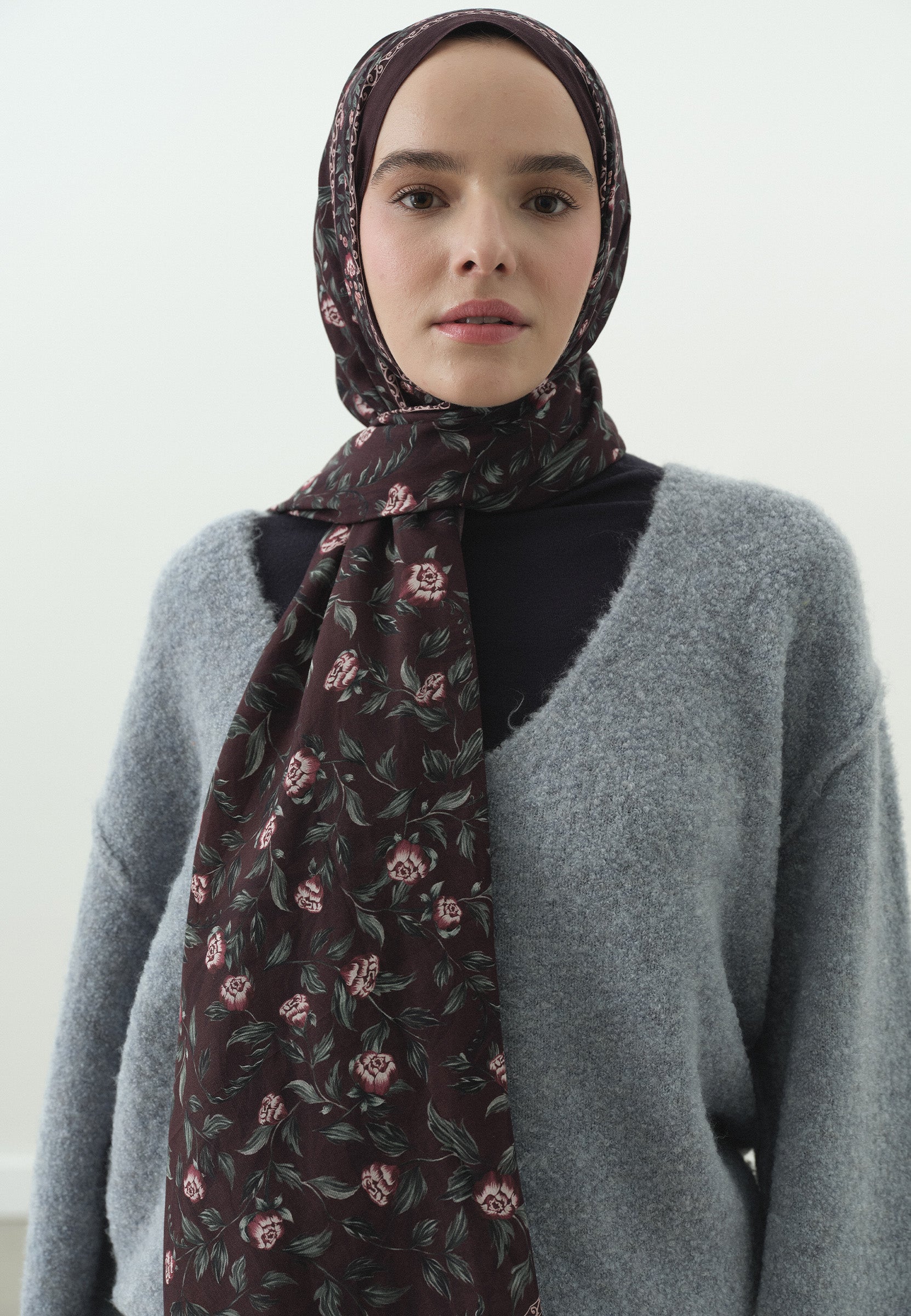 The flowing texture and non-slip fabric provide a secure fit throughout the day—no extra pins needed. Whether styled with a bonnet or worn directly, this regular-fit hijab adapts easily to your routine. Measuring approximately 70x190 cm, it's versatile for both casual and formal looks. The earthy, nature-inspired pattern brings depth and character to even the simplest outfit.