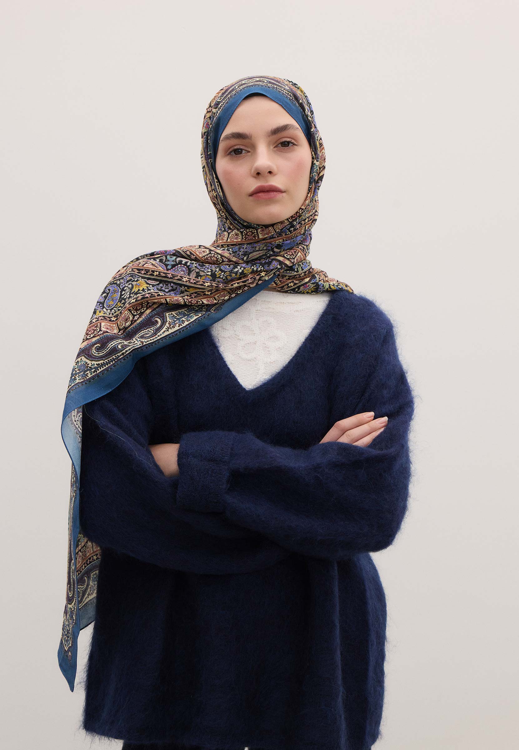 NORDIC PAISLEY DESEN ŞAL MAVİ