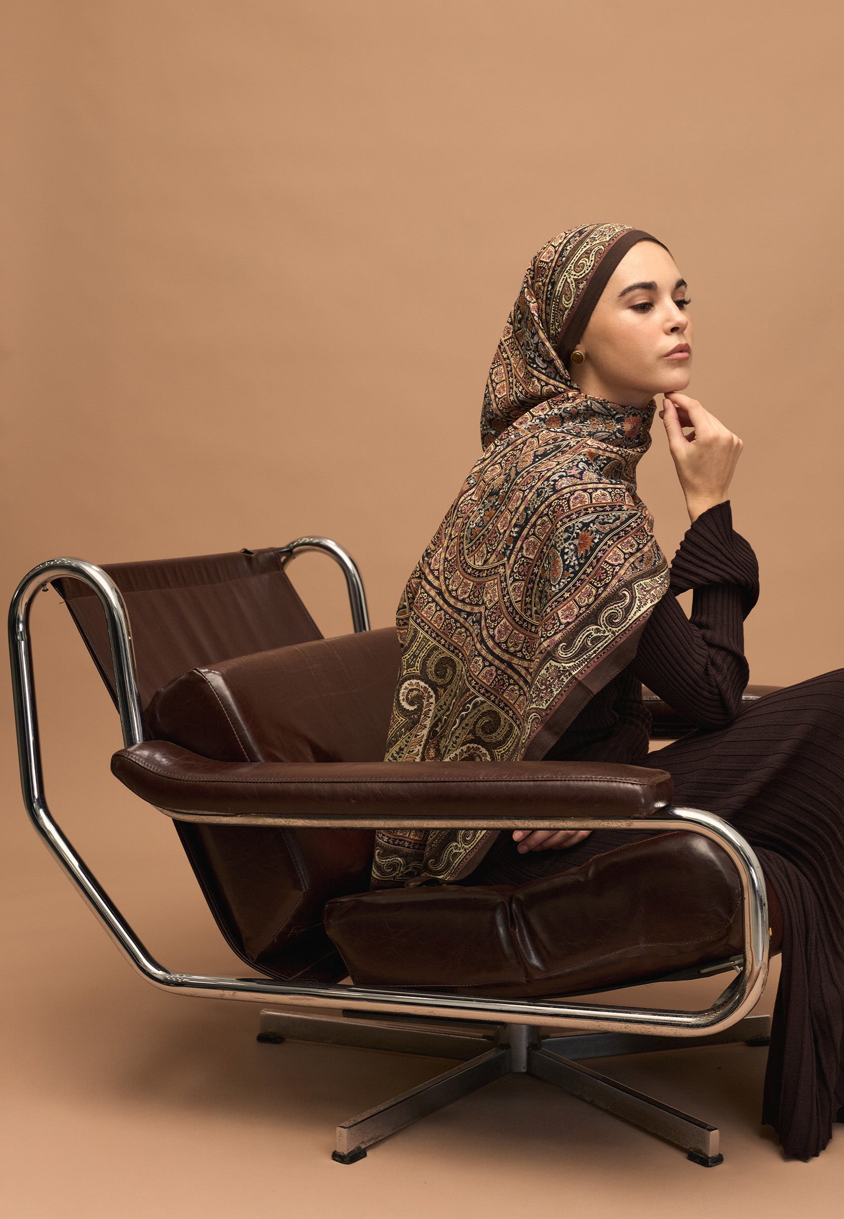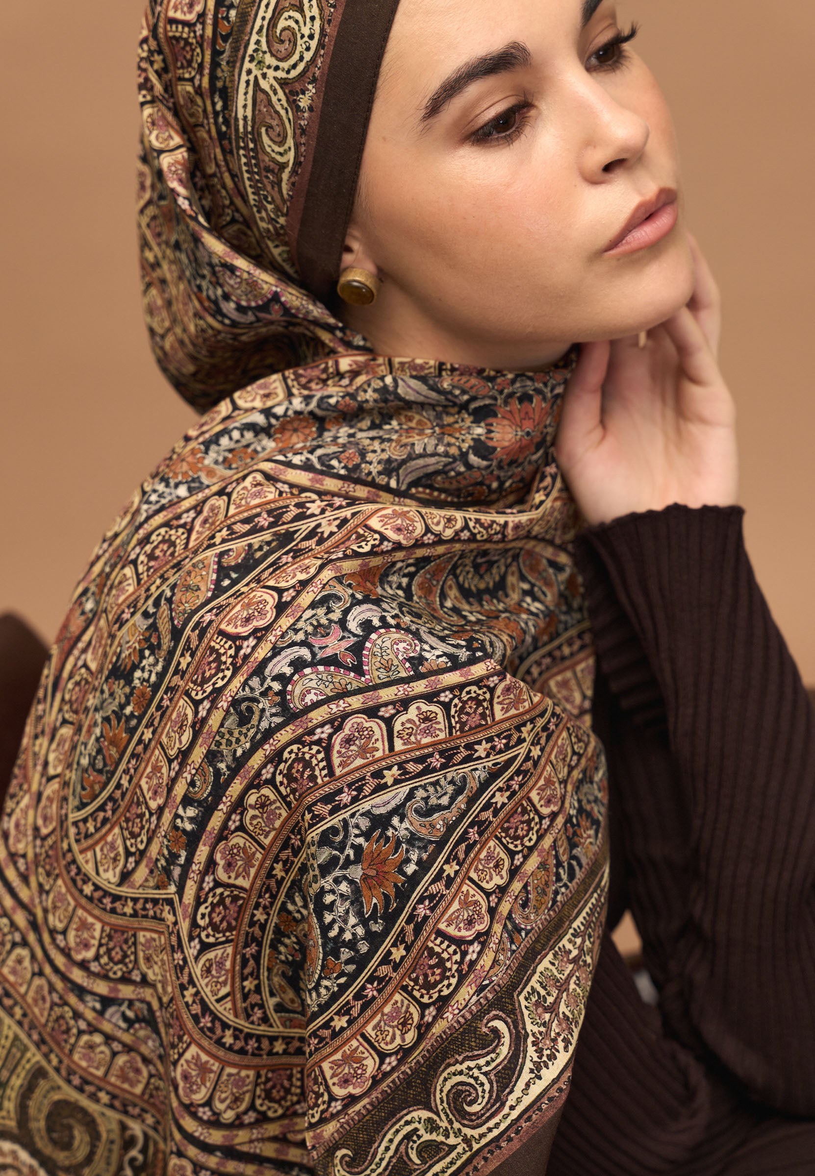 NORDIC PAISLEY DESEN ŞAL KAHVE