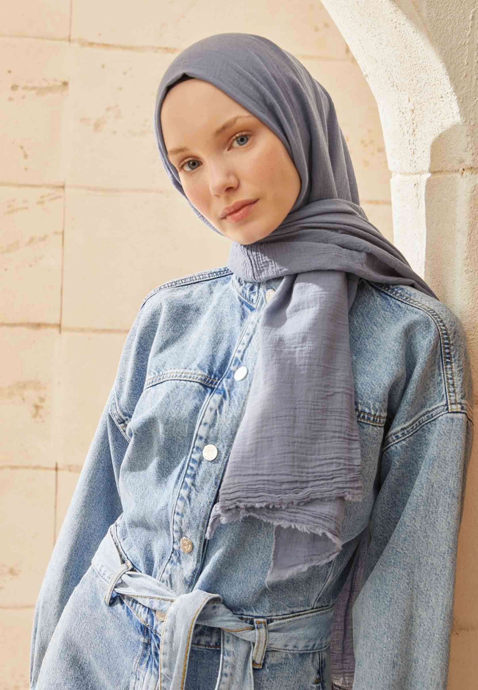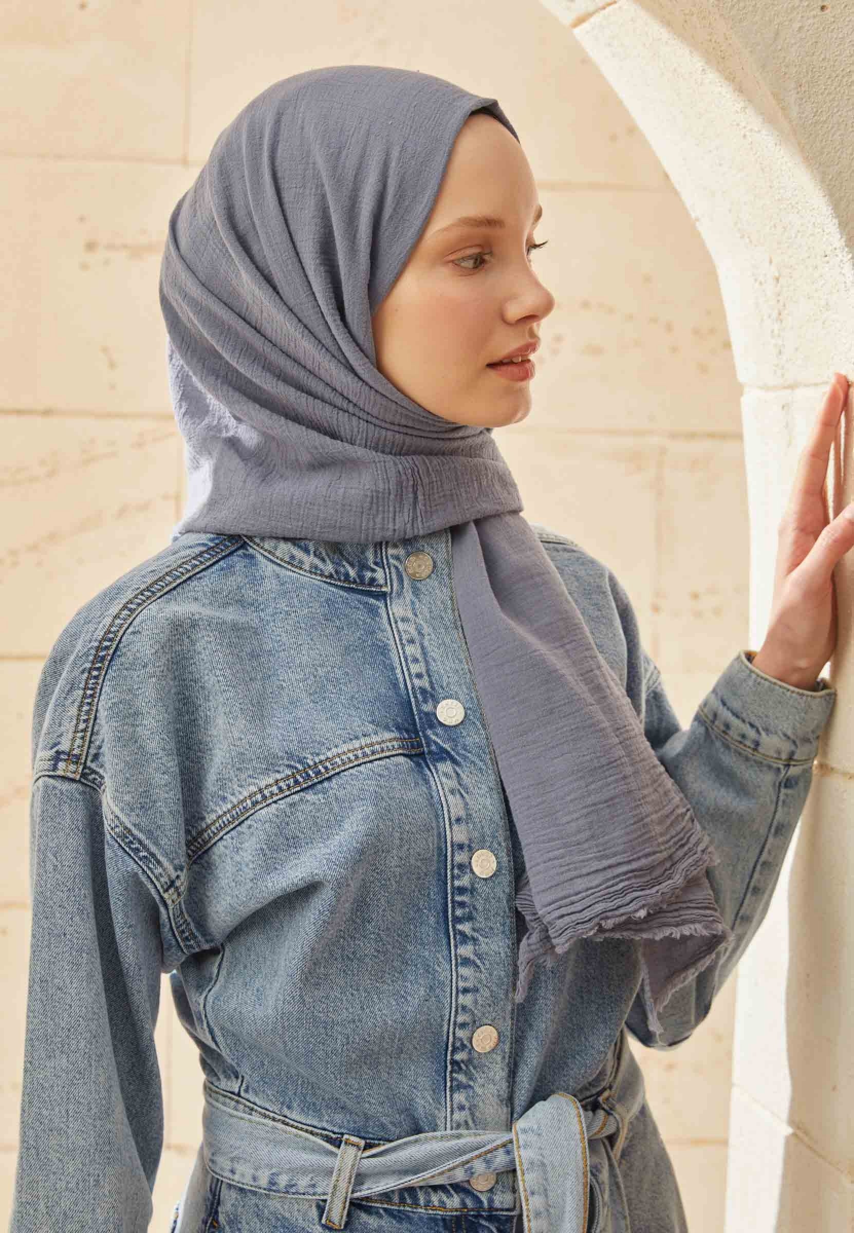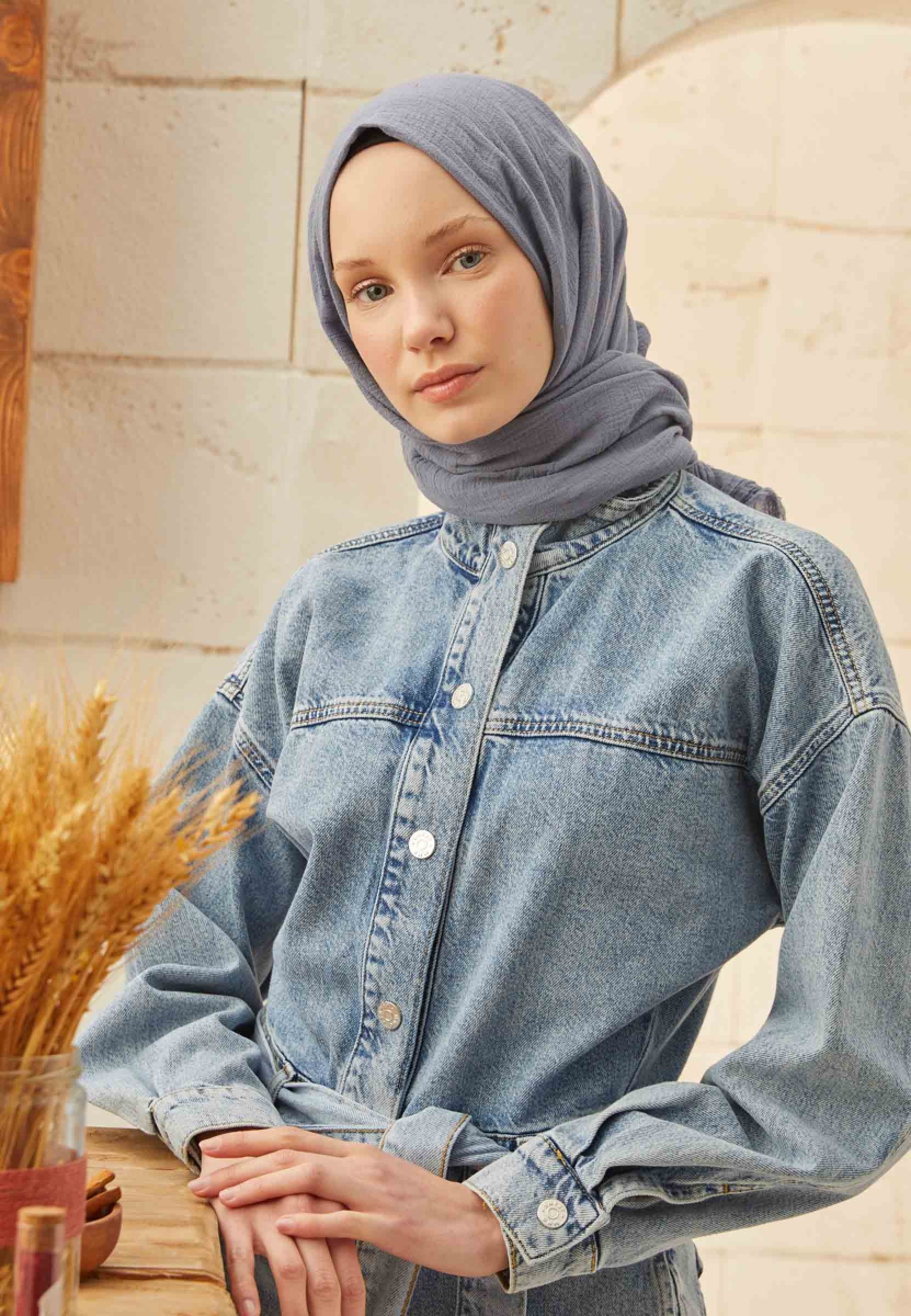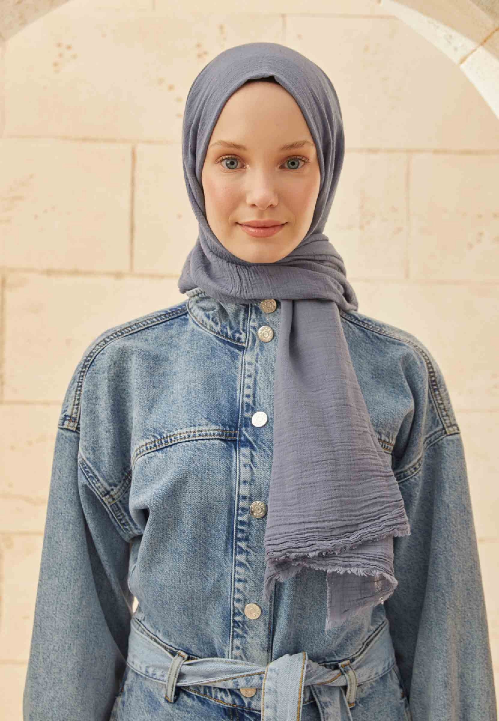 ORGANİK PAMUK ŞAL METALİK MAVİ
