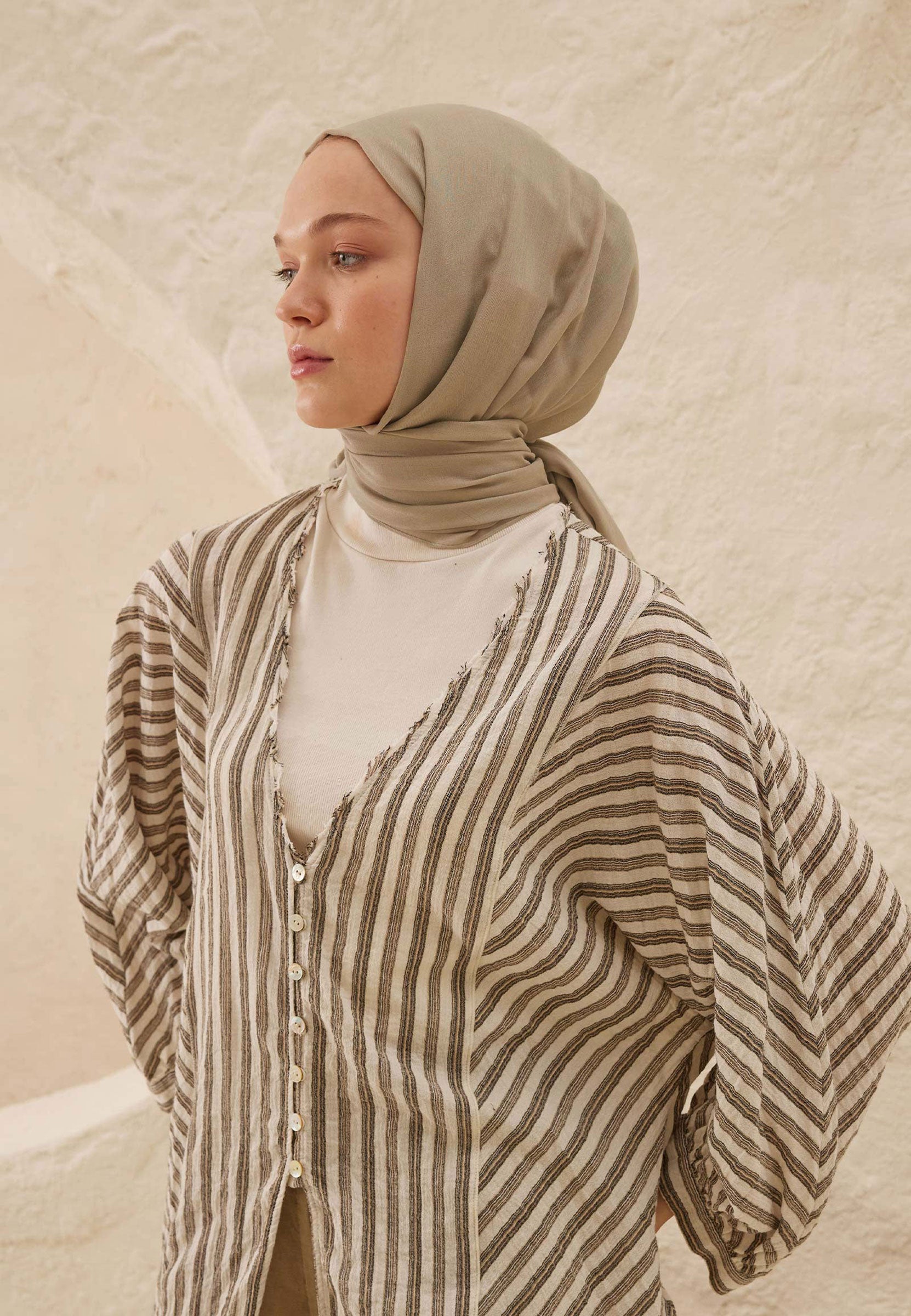 Viskon ve rami ipliklerinin bir karışımından özenle hazırlanmış Ramie Hicab Koleksiyonumuzu tanıtıyoruz. Bu hijablar olağanüstü nefes alabilirlik ve tüy kadar hafif ağırlıkla öne çıkar ve onları giydiğinizde saçlarınızda hafif esintiyi hissetmenizi sağlar. Yaz için mükemmel, ancak yıl boyunca giyilebilecek kadar çok yönlü olan Ramie Hicablarımız, tüm yıl boyunca benzersiz konfor ve stil sunarak sizin için vazgeçilmez bir seçim olacak şekilde tasarlanmıştır.